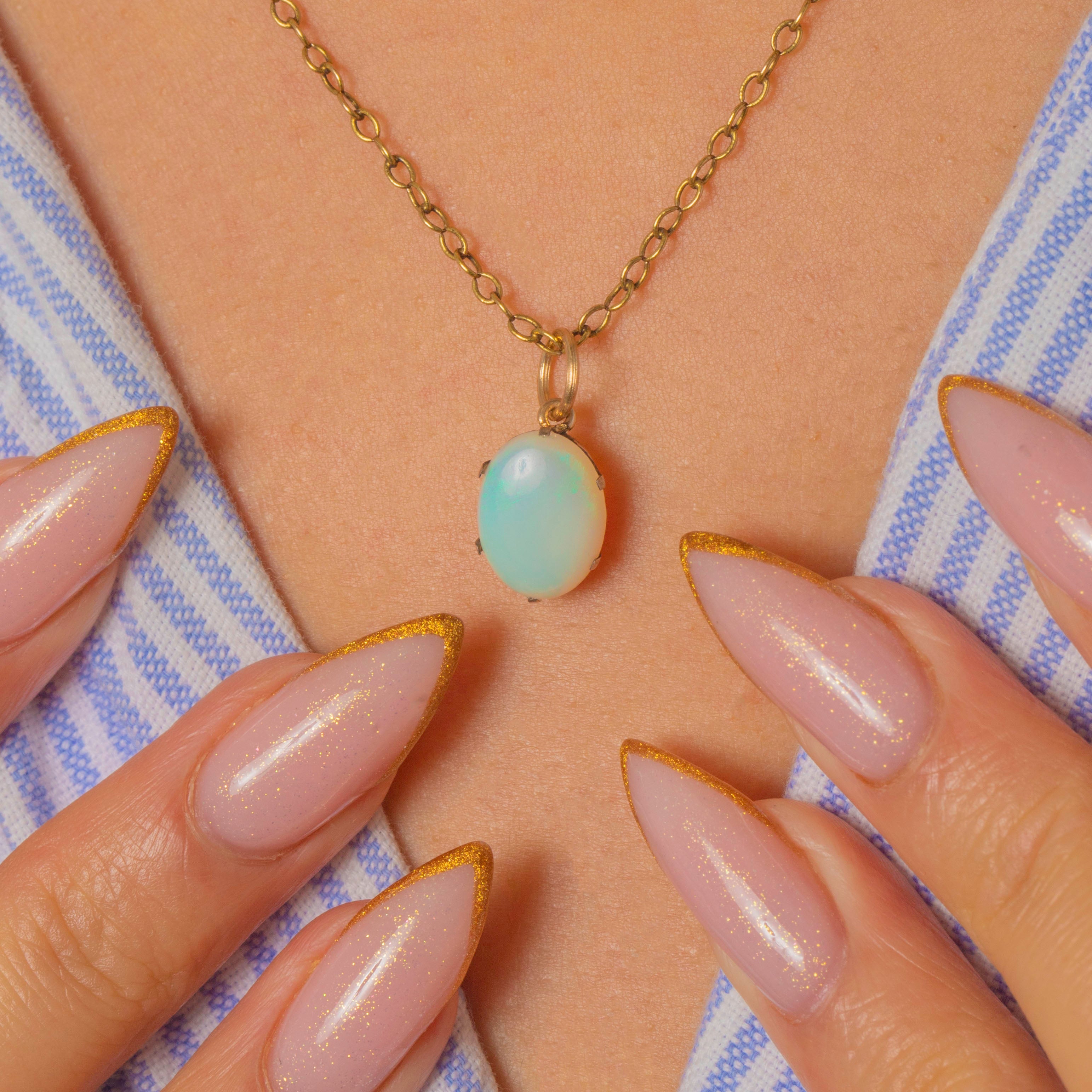 EXCELLENT: The Opal is bright and lively with strong play-of-colour and no chips or cracks. The Gold bezel and jump ring are smooth, secure, and in superb condition for age.
