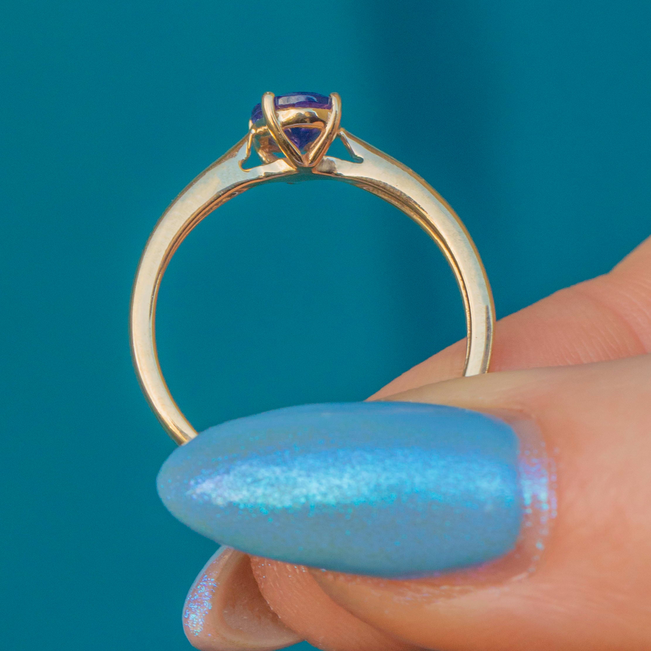 At her centre sits a beautiful 0.50ct oval Tanzanite, radiating gorgeous lavender and lilac hues as she catches the light, complimented effortlessly by the warmth of her 9ct Gold band.