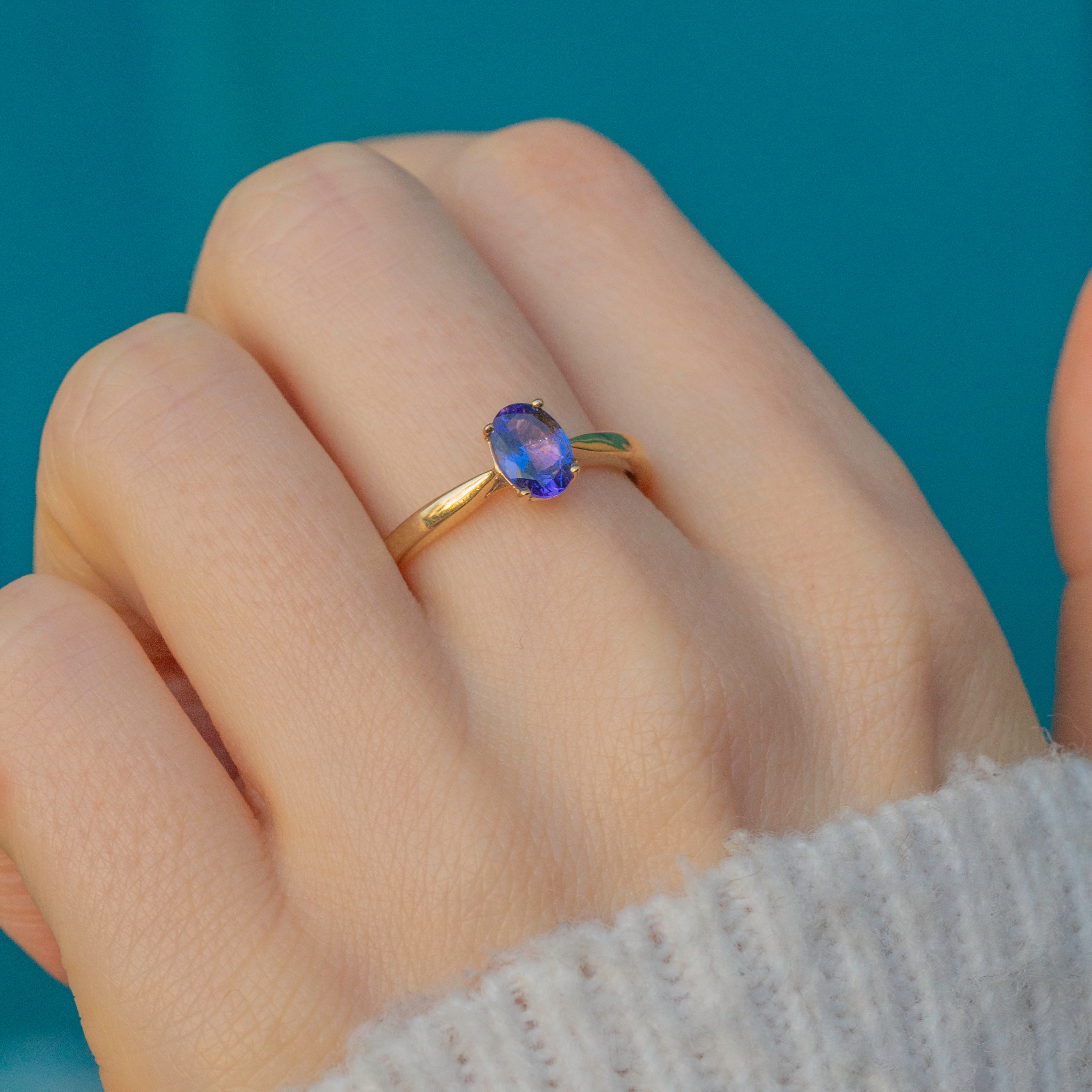 A delicate 14ct Gold Tanzanite solitaire ring to add to your ring stack!