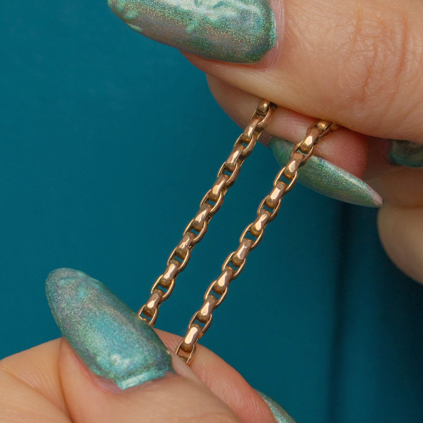 This splendid antique 9ct Gold belcher chain will become a staple within your collection! Crafted from solid 9ct Gold, the 16.5" length is made up of rectangular belcher links that will bring both splendour and texture to your neck stack.
