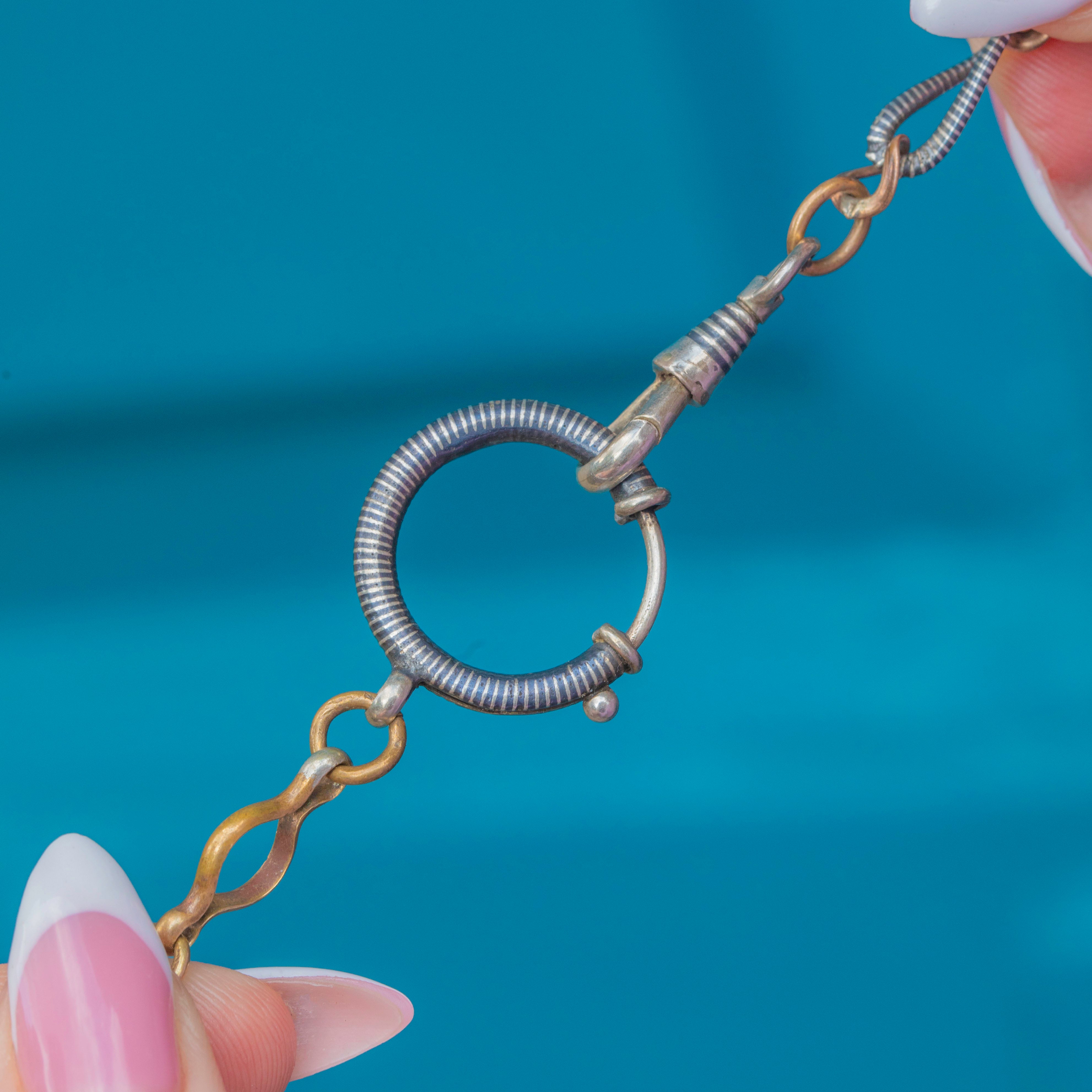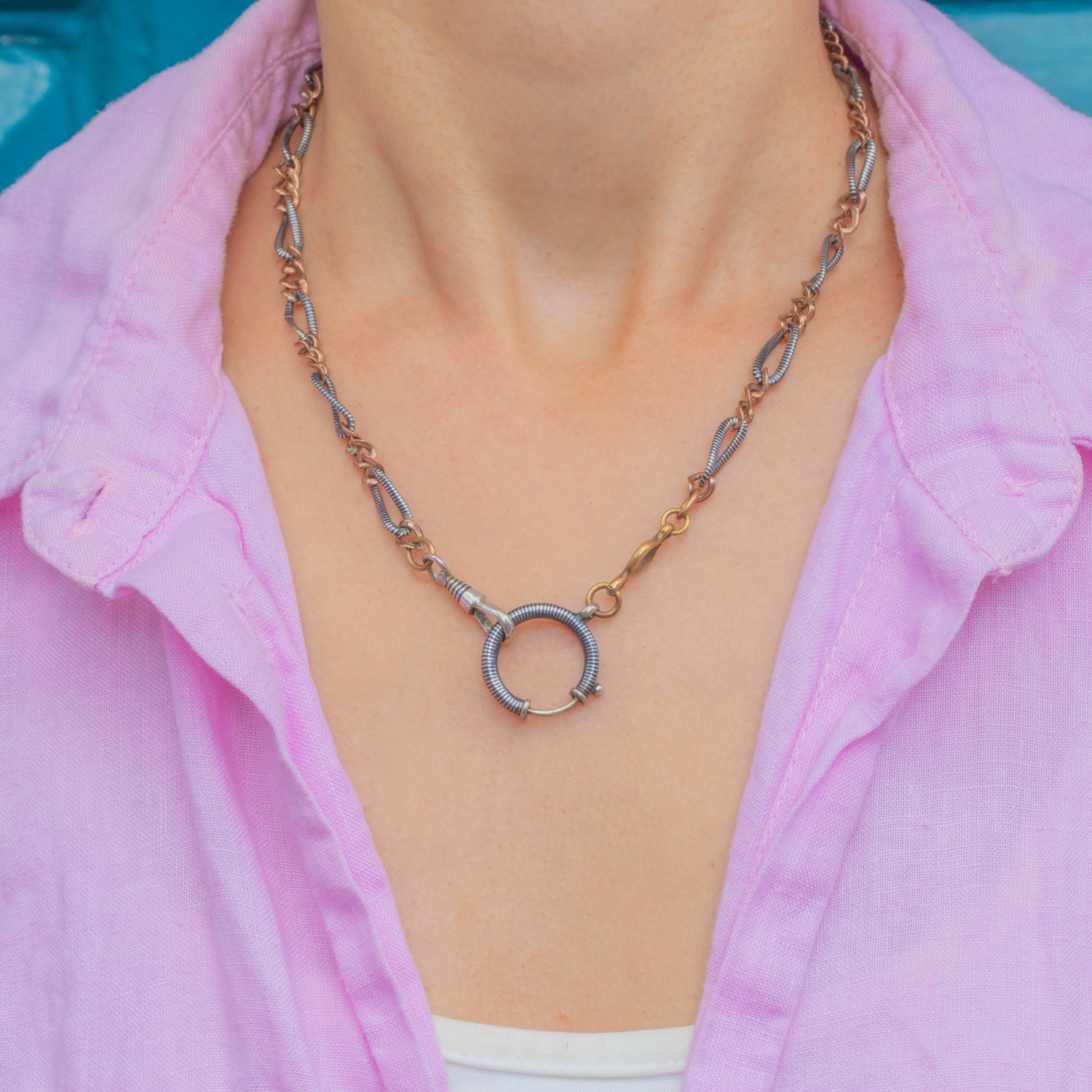 16" Antique Silver Niello Chain, Large Bolt-Ring Charm Holder