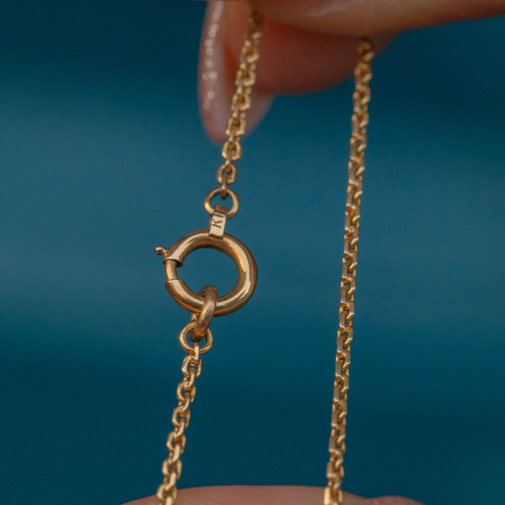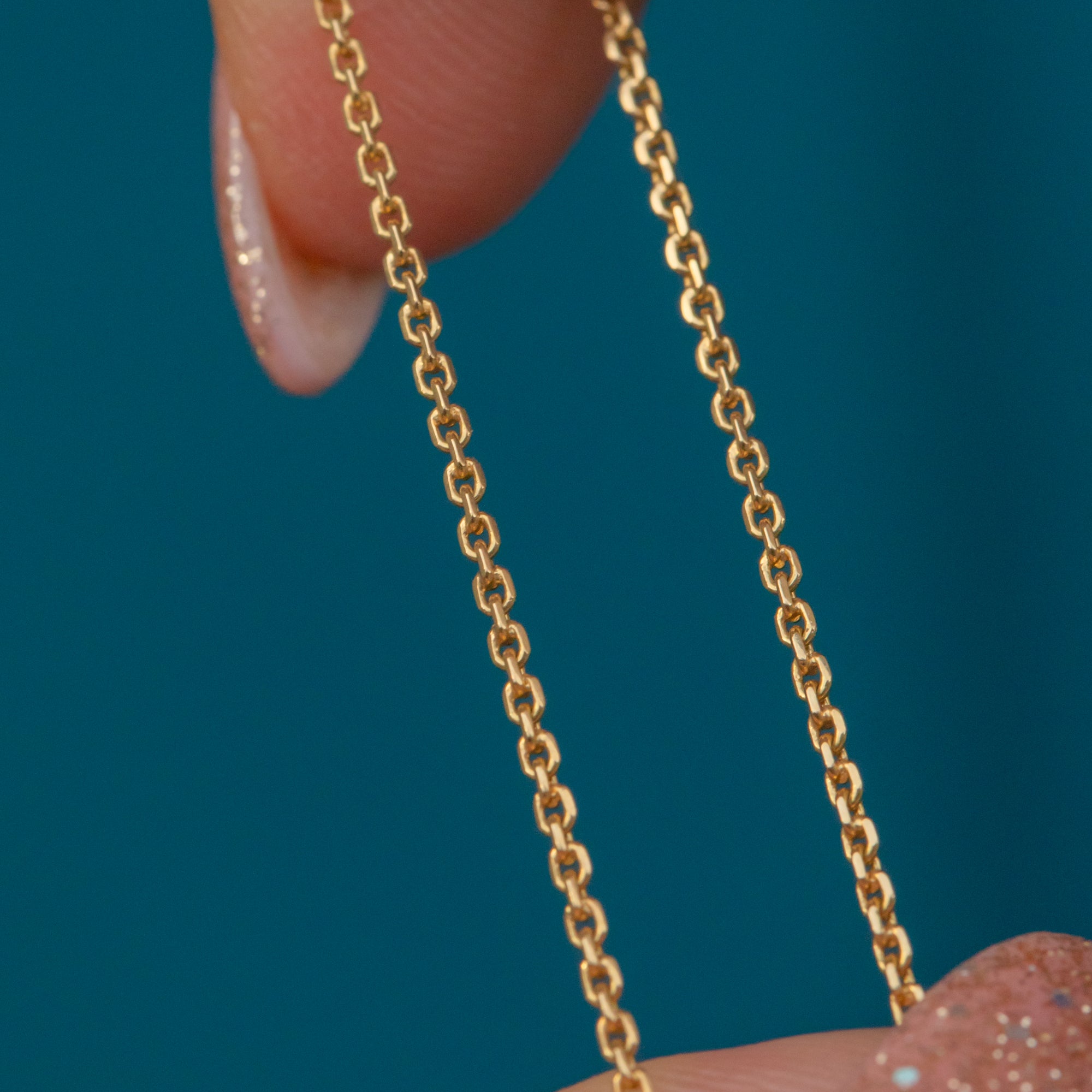 This 18.5" 18ct Gold skinny pendant chain is a great go-to piece to add to your collection. Perfect for layering amongst your other antique favourites, she is great for suspending small charms.
