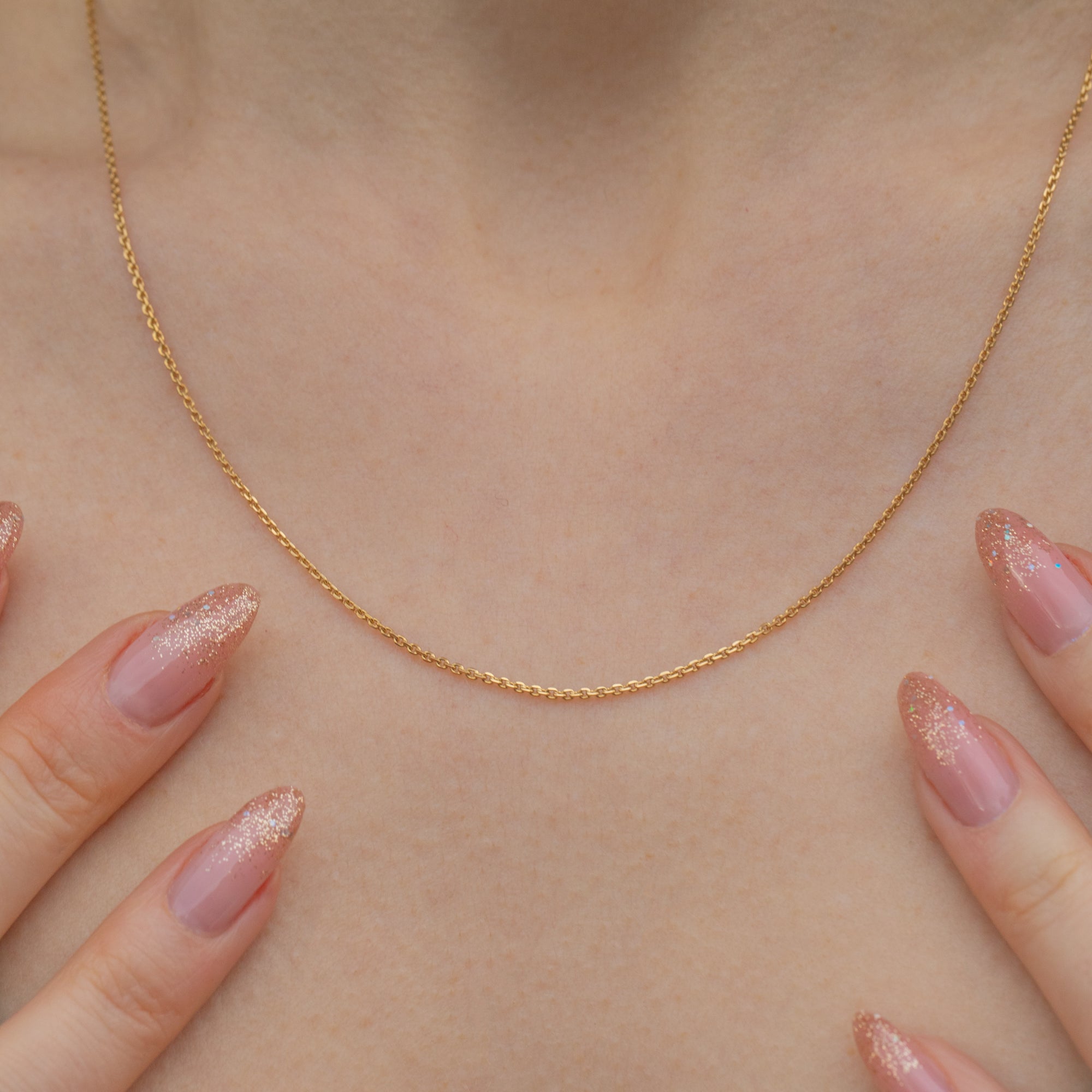 EXCELLENT: This 18ct Gold skinny pendant chain is in excellent condition! Each of the links are securely connected, and the necklace is complete with a bolt ring so you can wear her with confidence. The Gold has a rich intensity and is ideal for everyday wear.