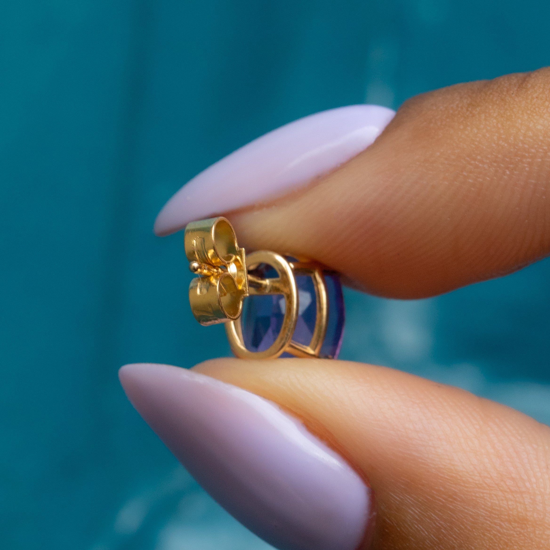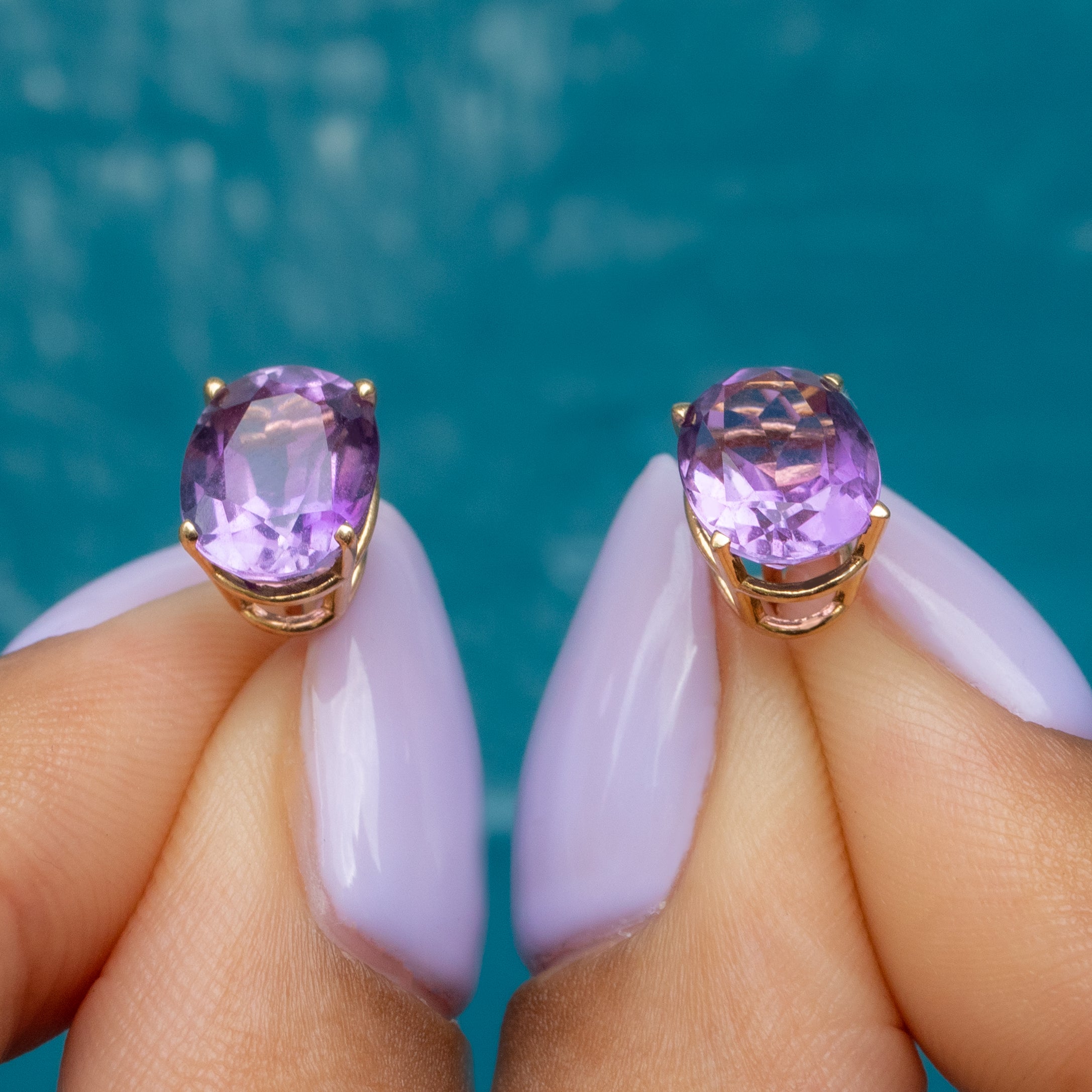 Elevate your ear stack with these 18ct Gold Amethyst stud earrings! 3.40cts of glistening grape hues dance between the Amethyst facets, adding understated beauty to your lobe.