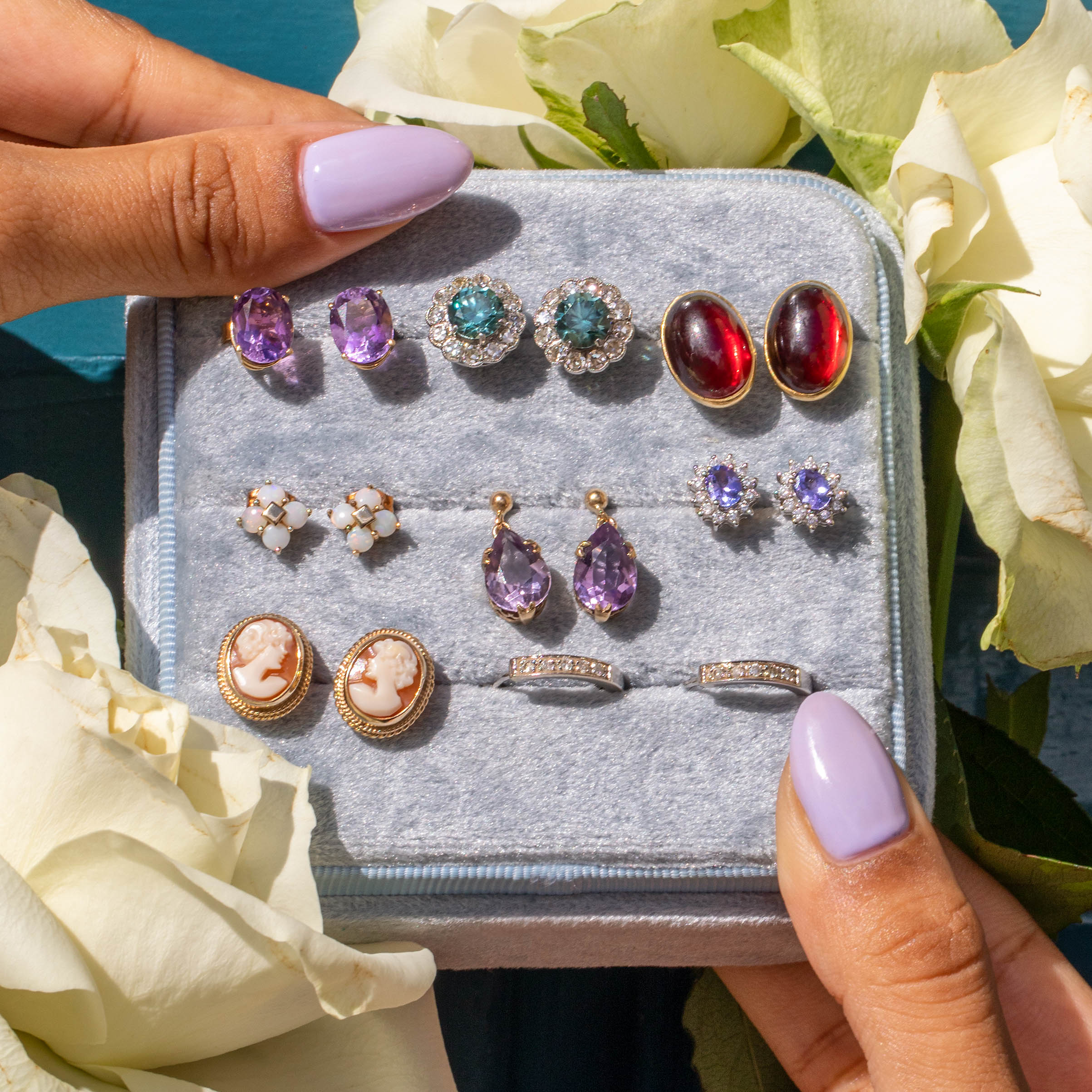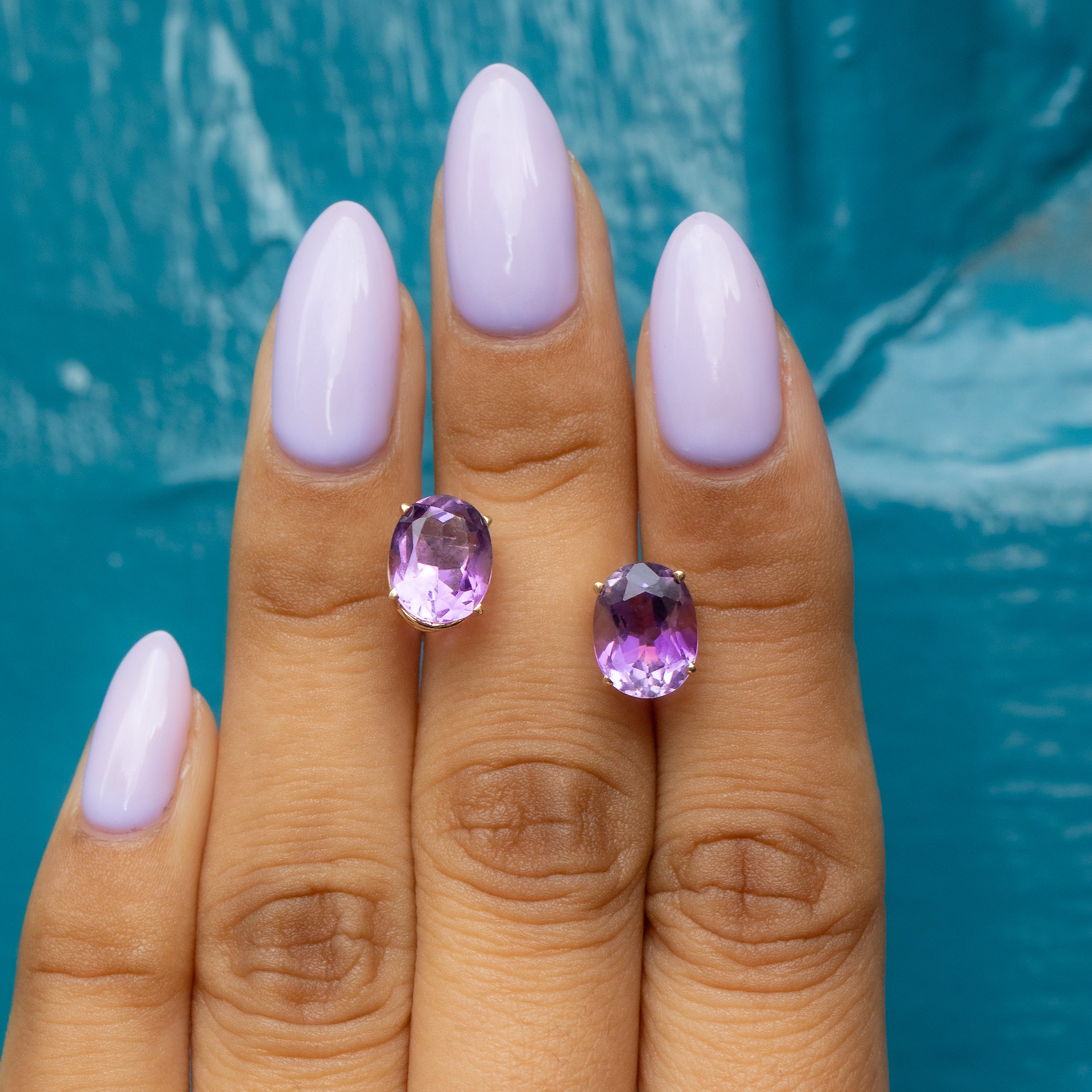 The combination of Amethyst hugged by buttery 18ct Gold makes for quite the regal pairing; they are the perfect stand-alone earrings but would make a fun addition to a stacking set!