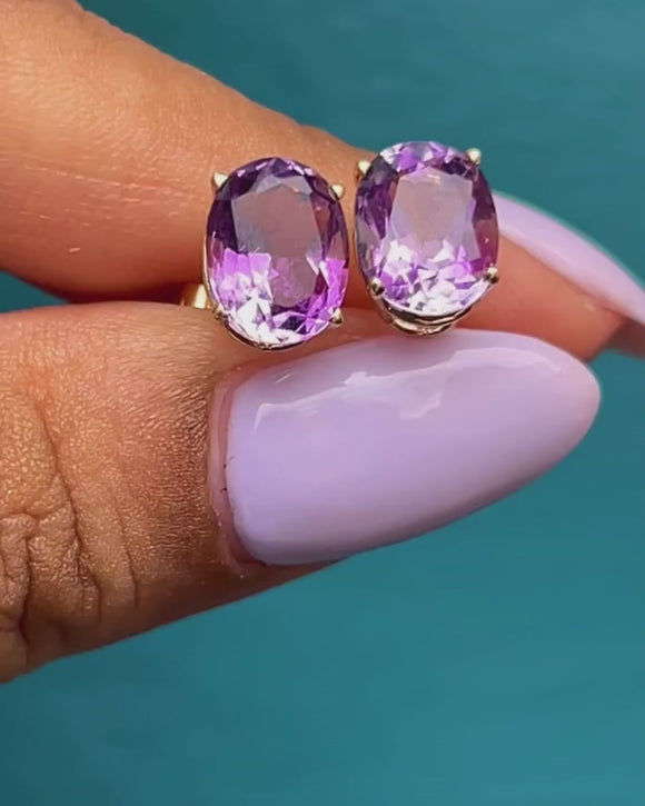 18ct Gold Amethyst Stud Earrings, 3.40ct