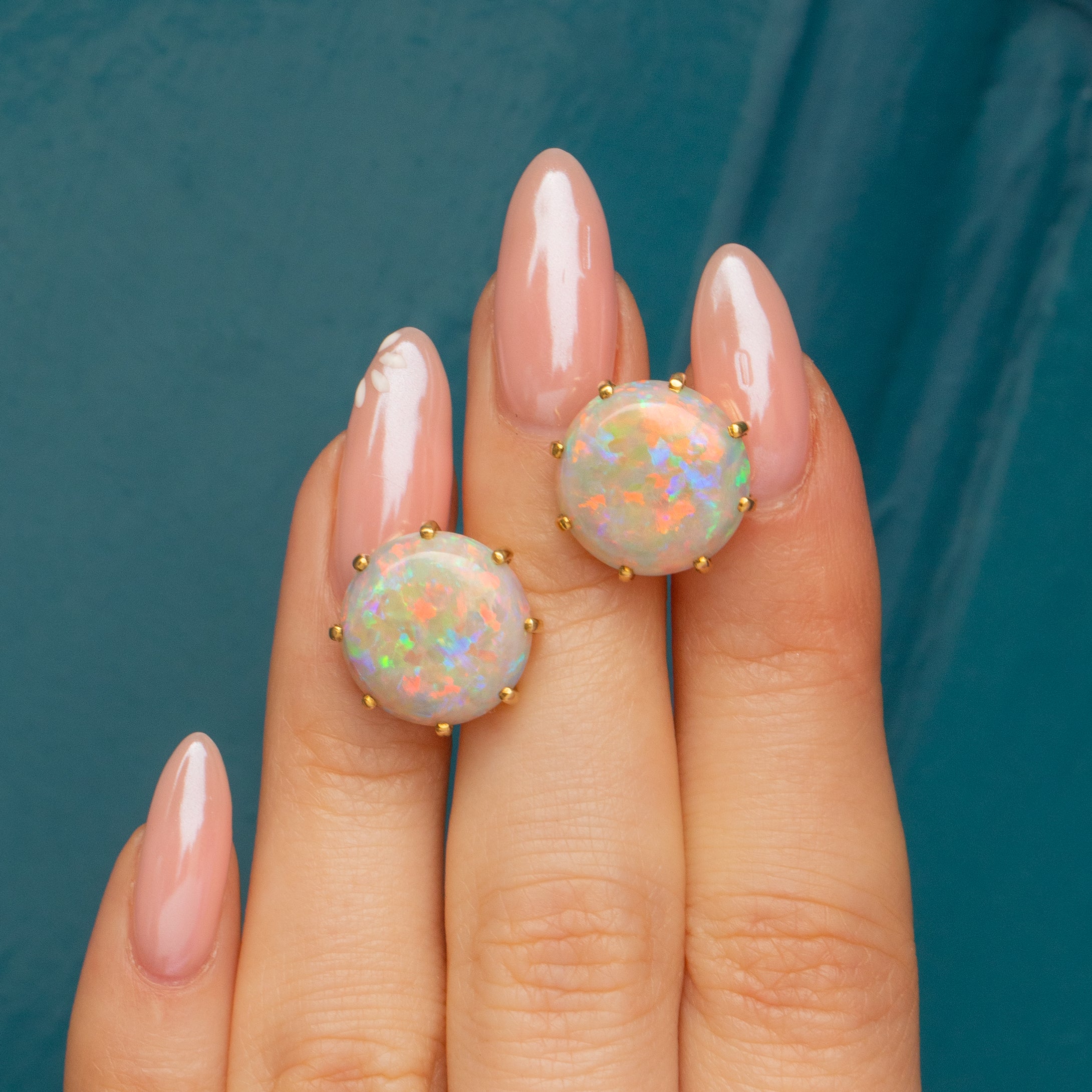 MEASUREMENTS: Opals are 13.5mm in diameter, approx 7.20ct total.