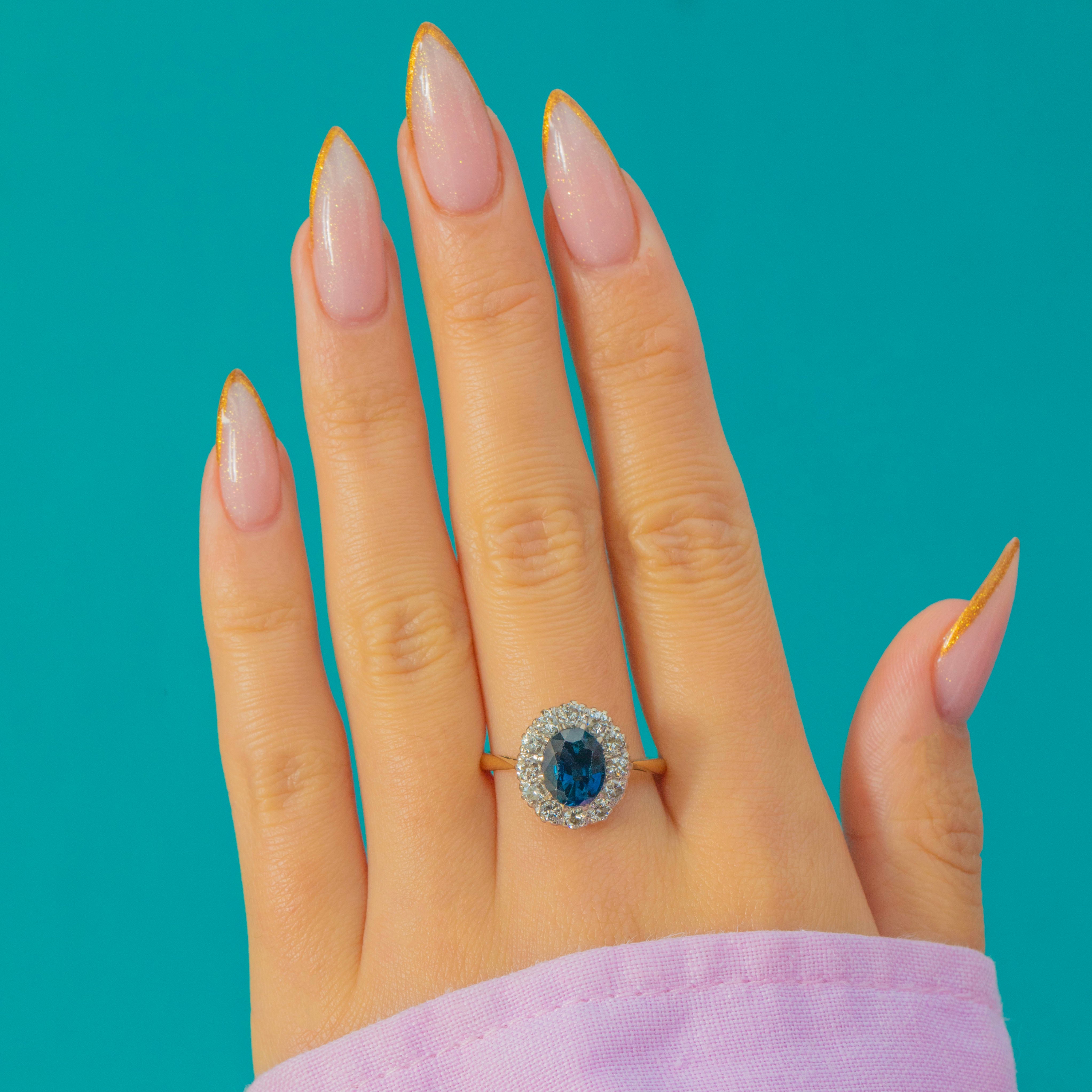 18ct Gold Sapphire Diamond Cluster Ring 2.00ct Natural Sapphire