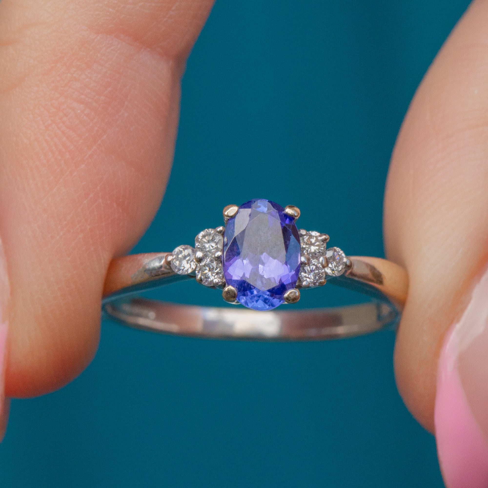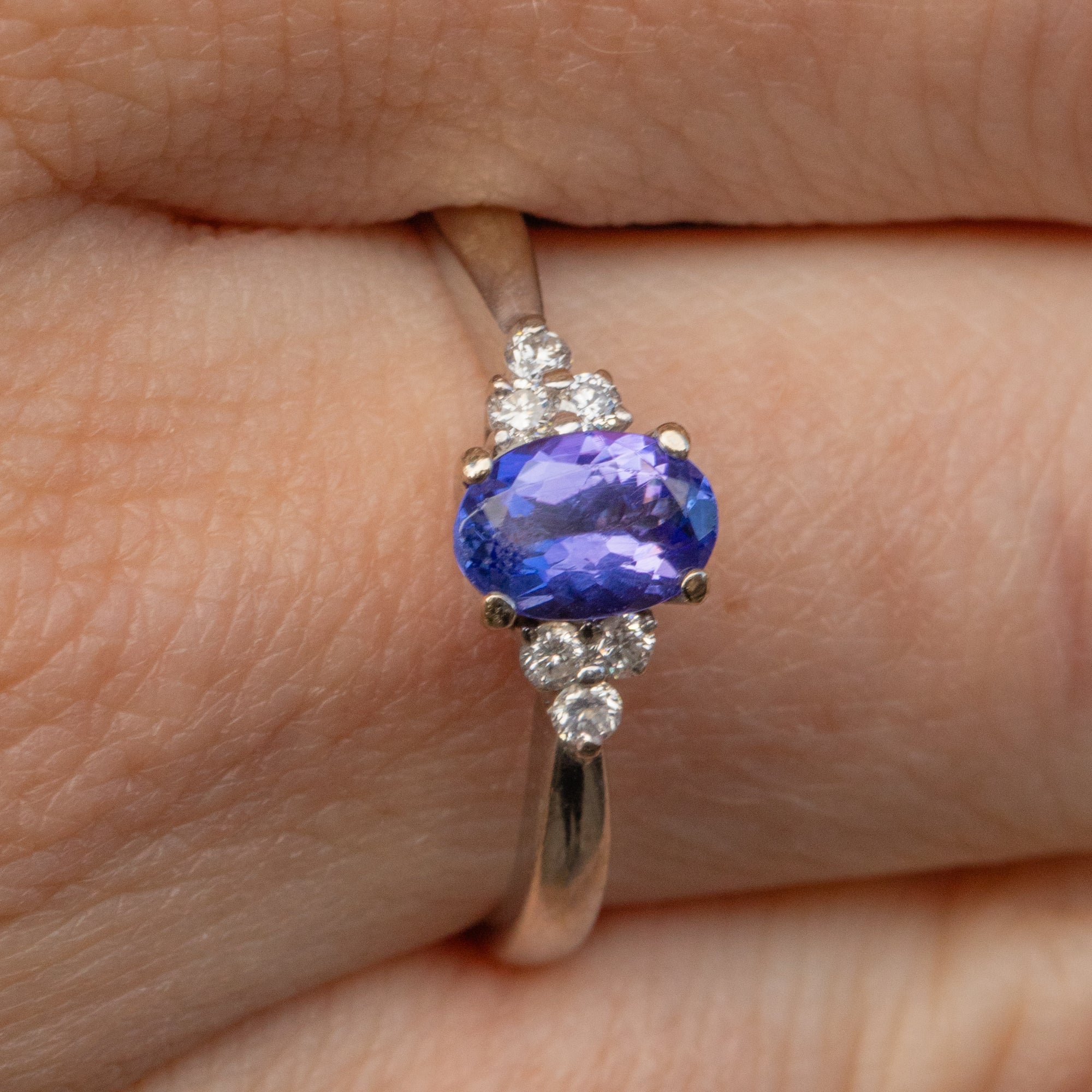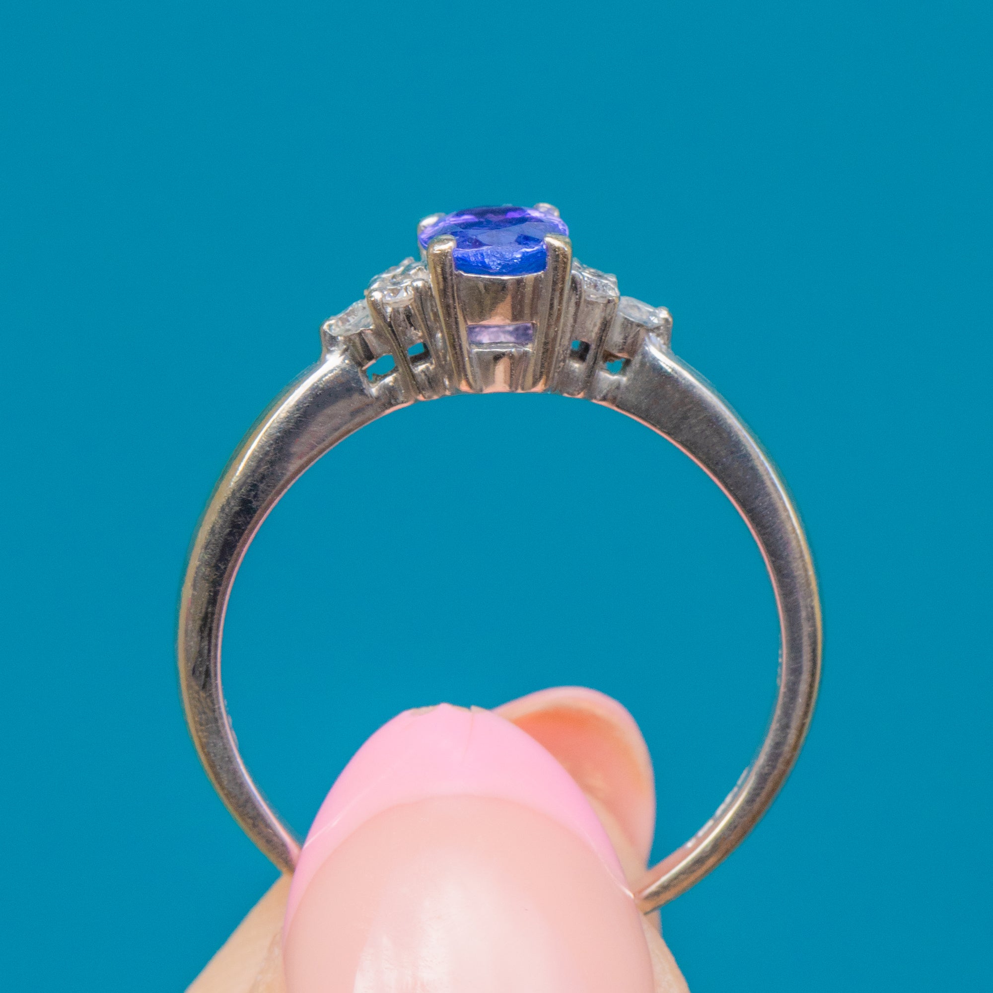 EXCELLENT. This 18ct Gold Tanzanite Diamond cluster ring is in excellent condition. The Tanzanite and Diamonds are all securely set and free from chips or abrasions. The 18ct White Gold shank is lustrous and has retained its form well, allowing you to wear it confidently and comfortably.