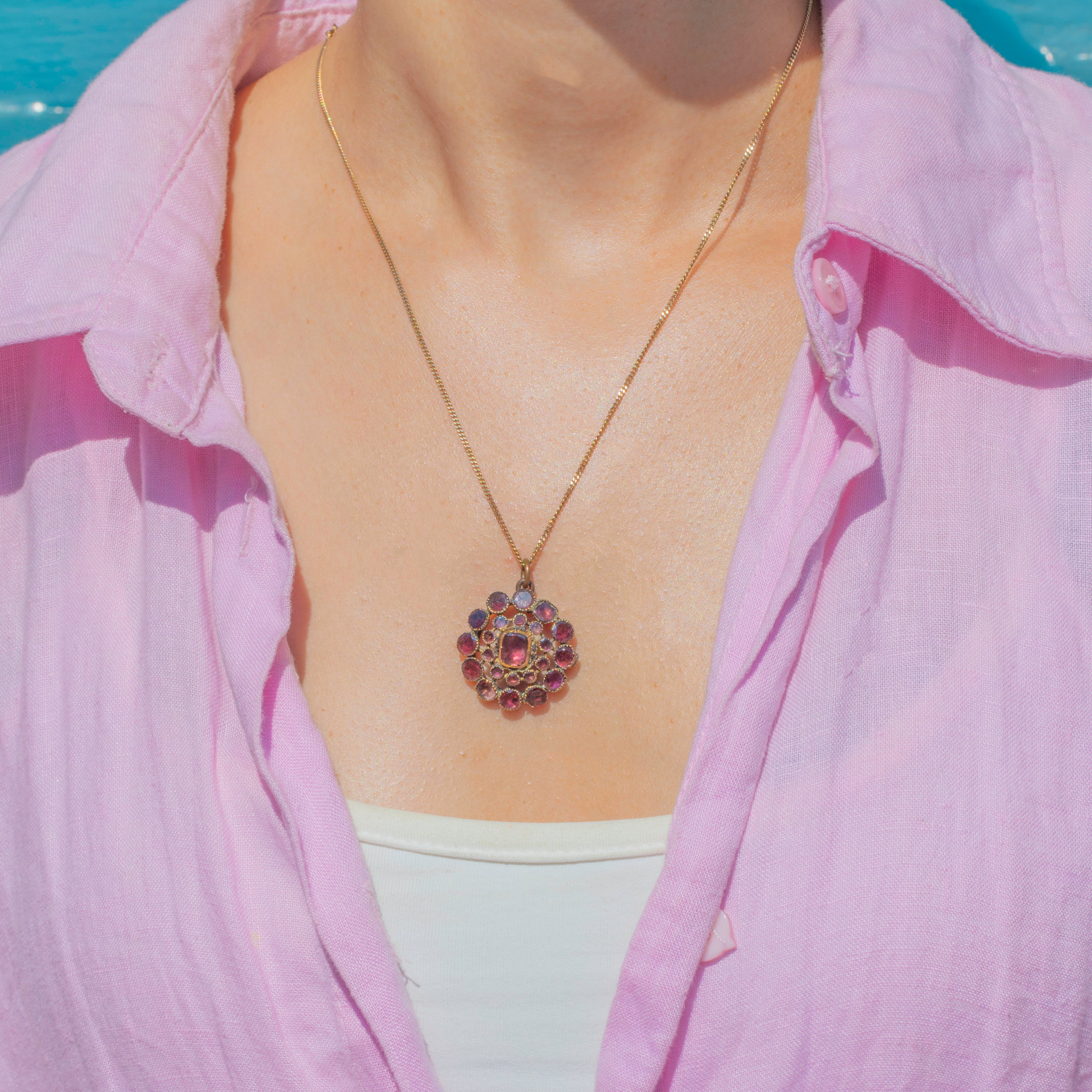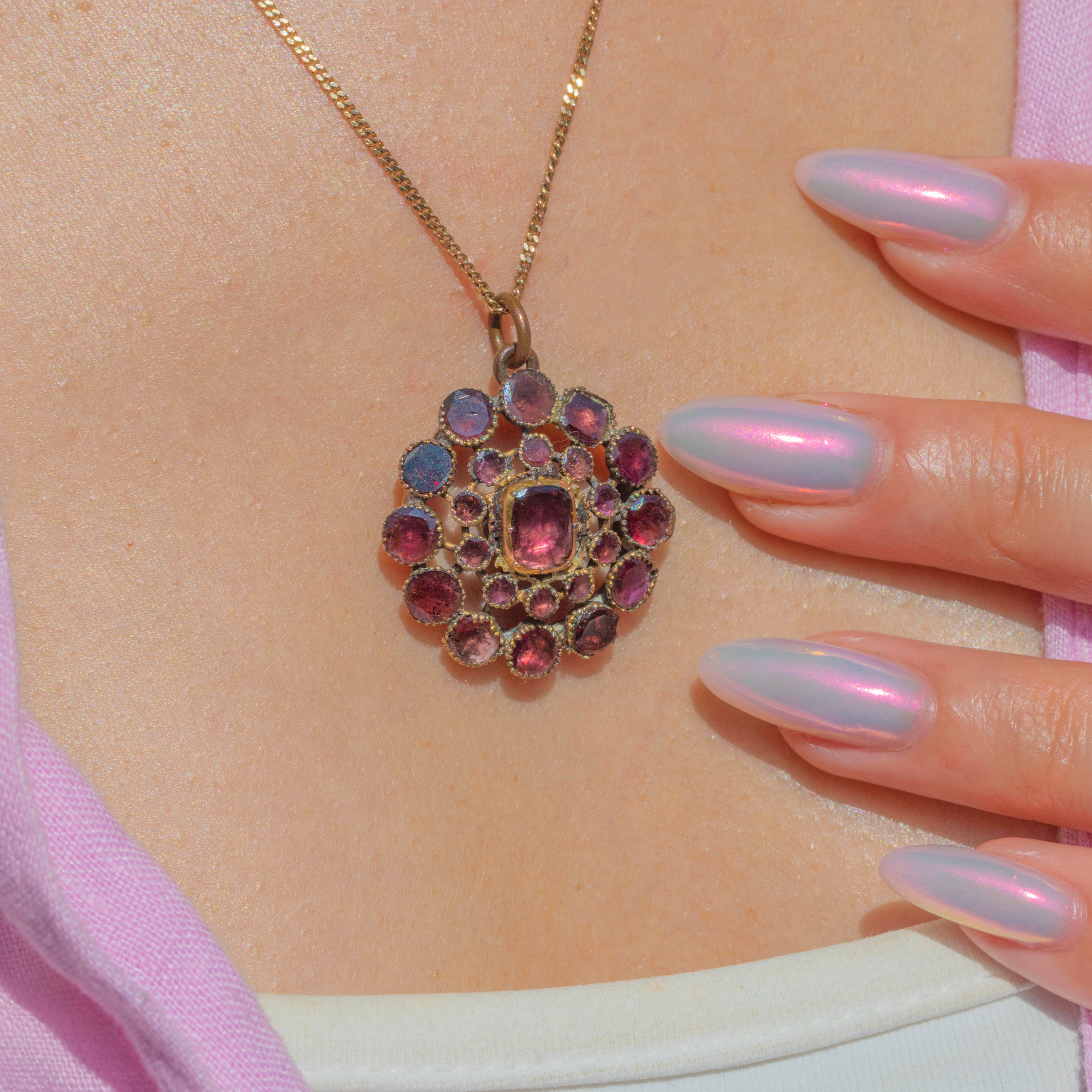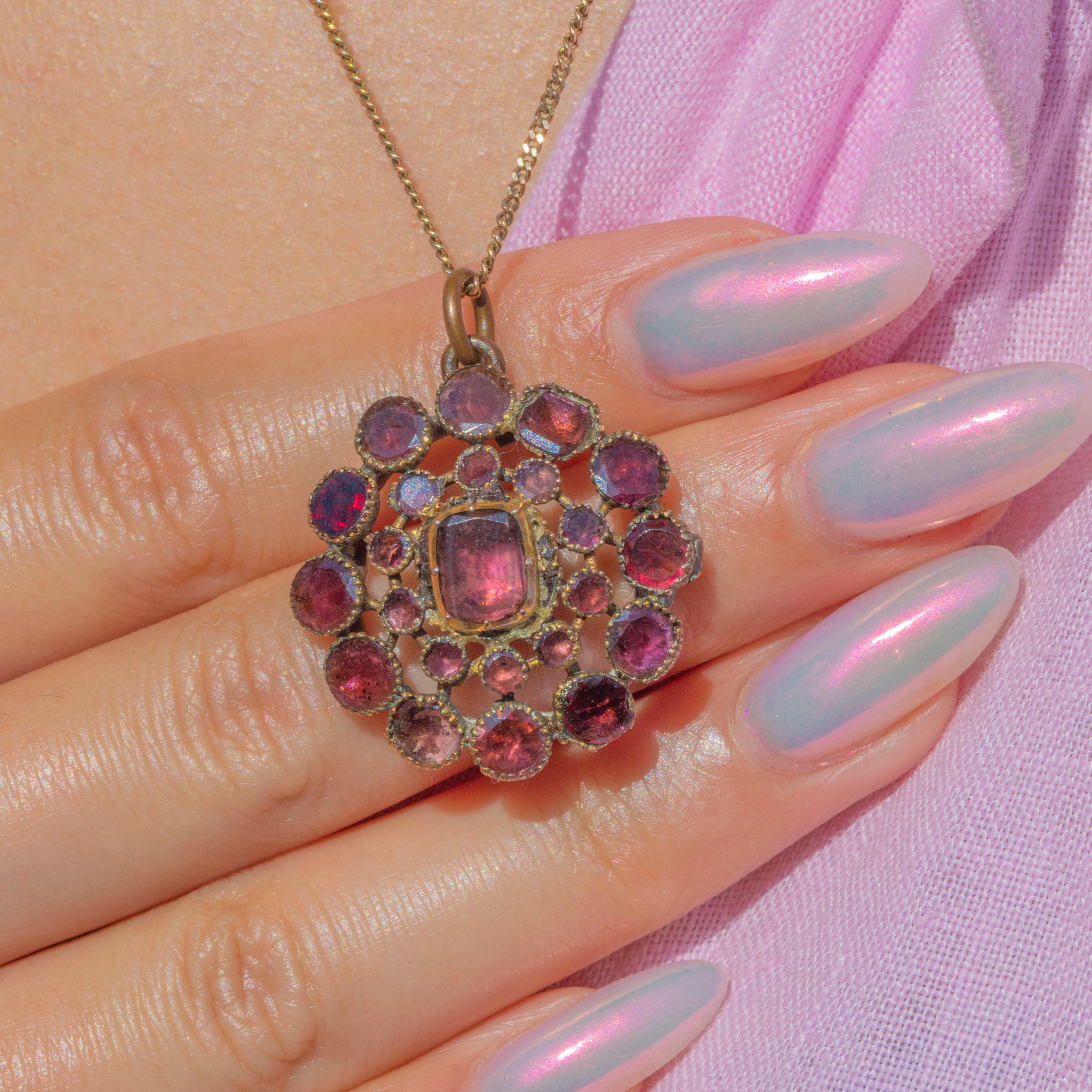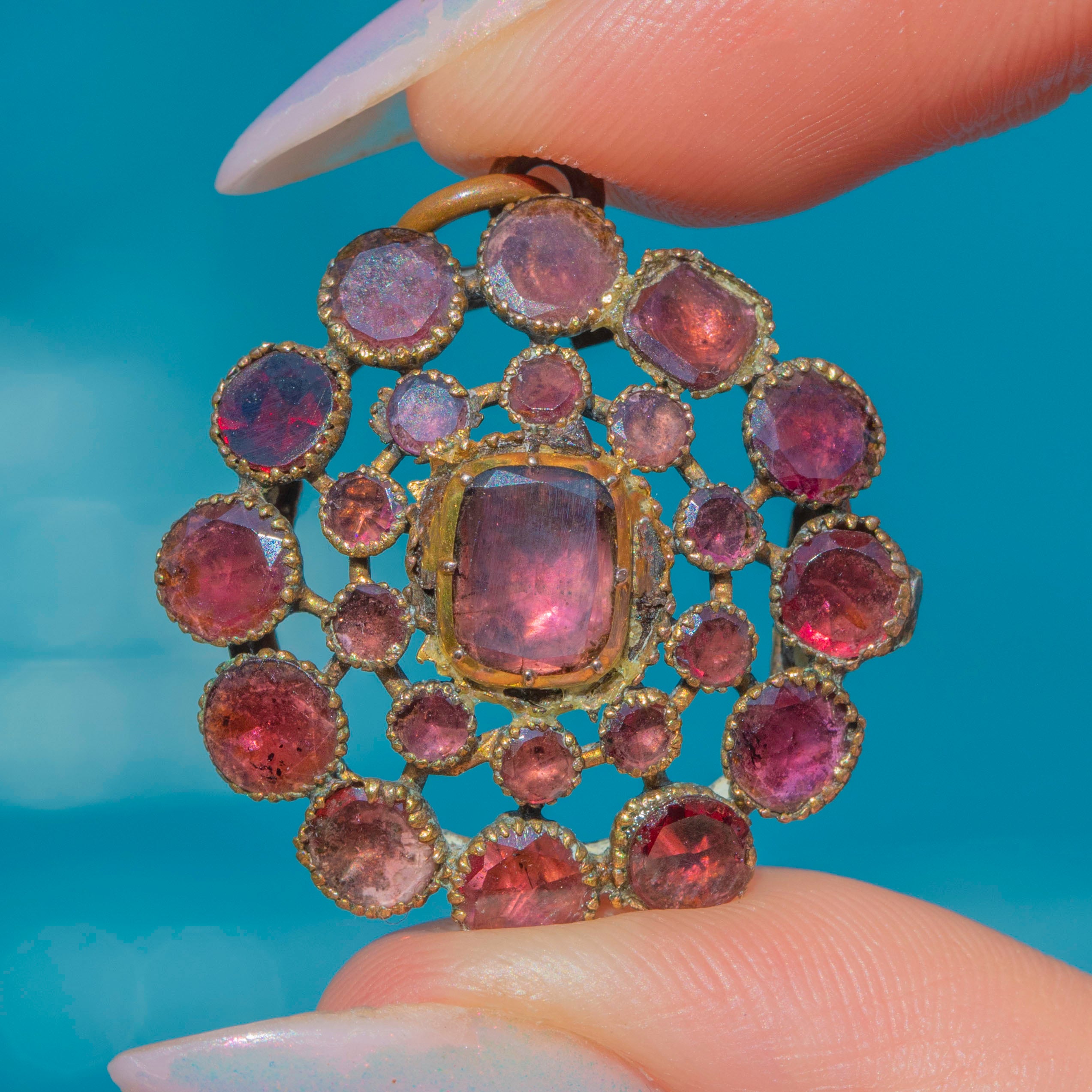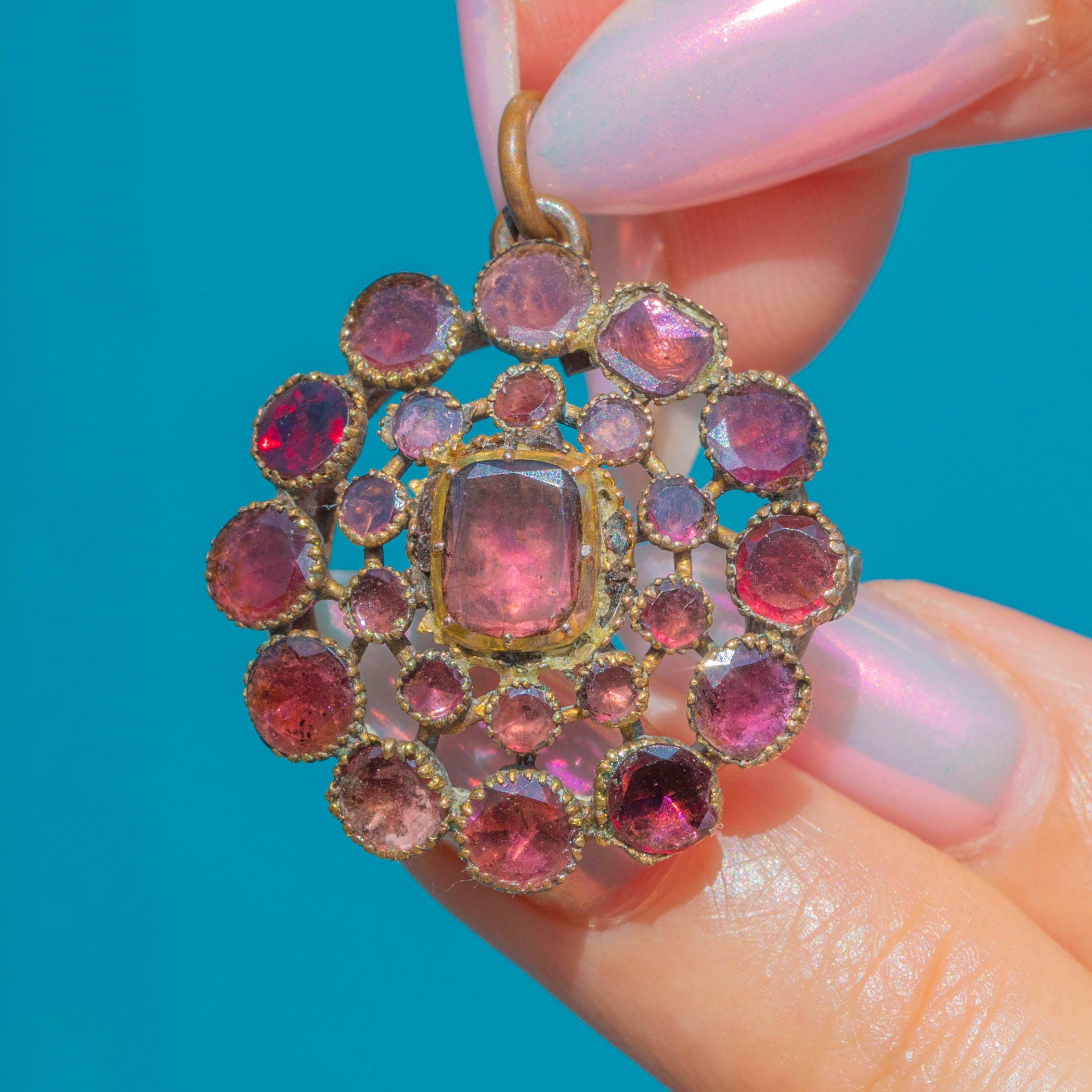 18th Century Georgian Era Queen Anne Garnet Cluster Pendant, c.1710
