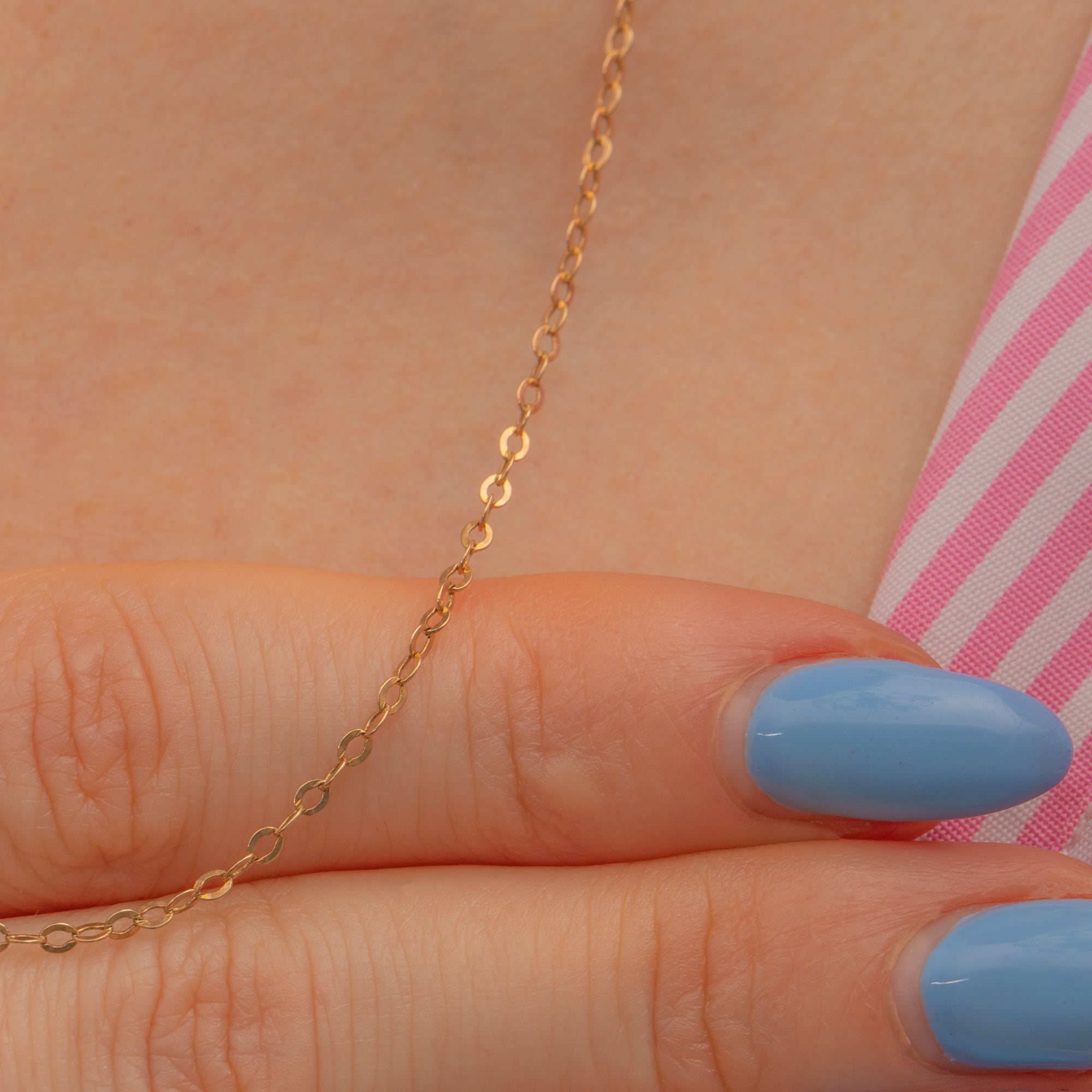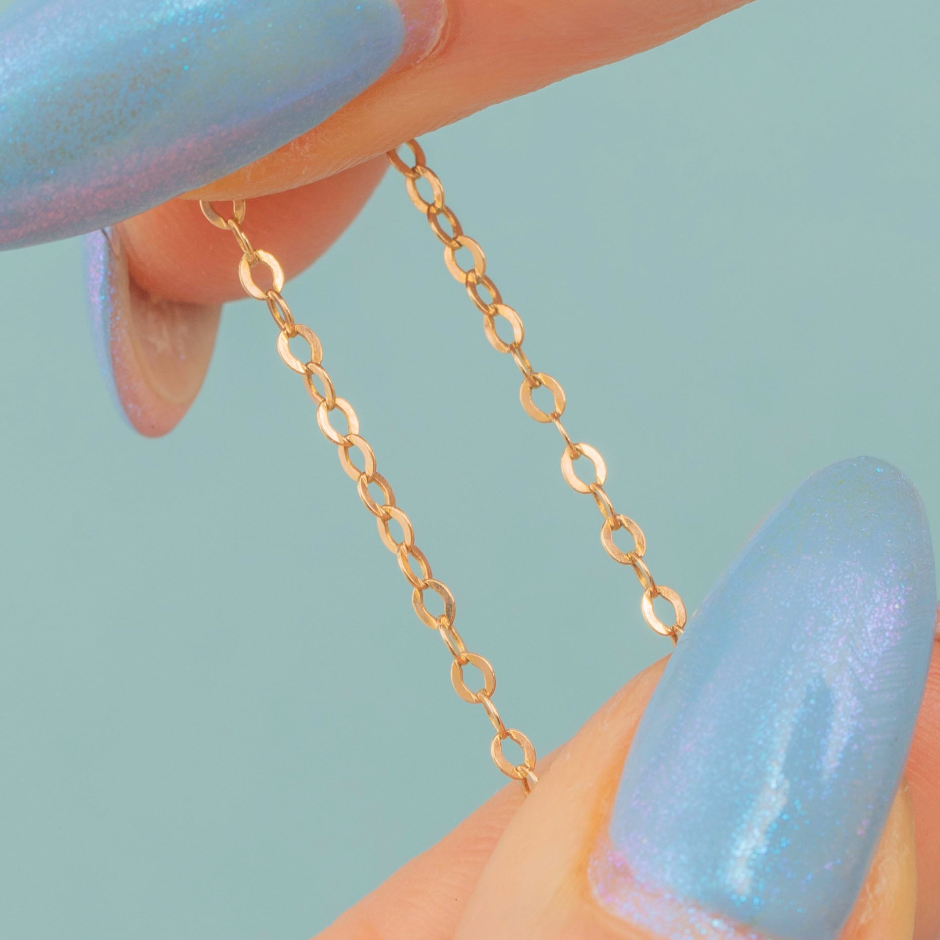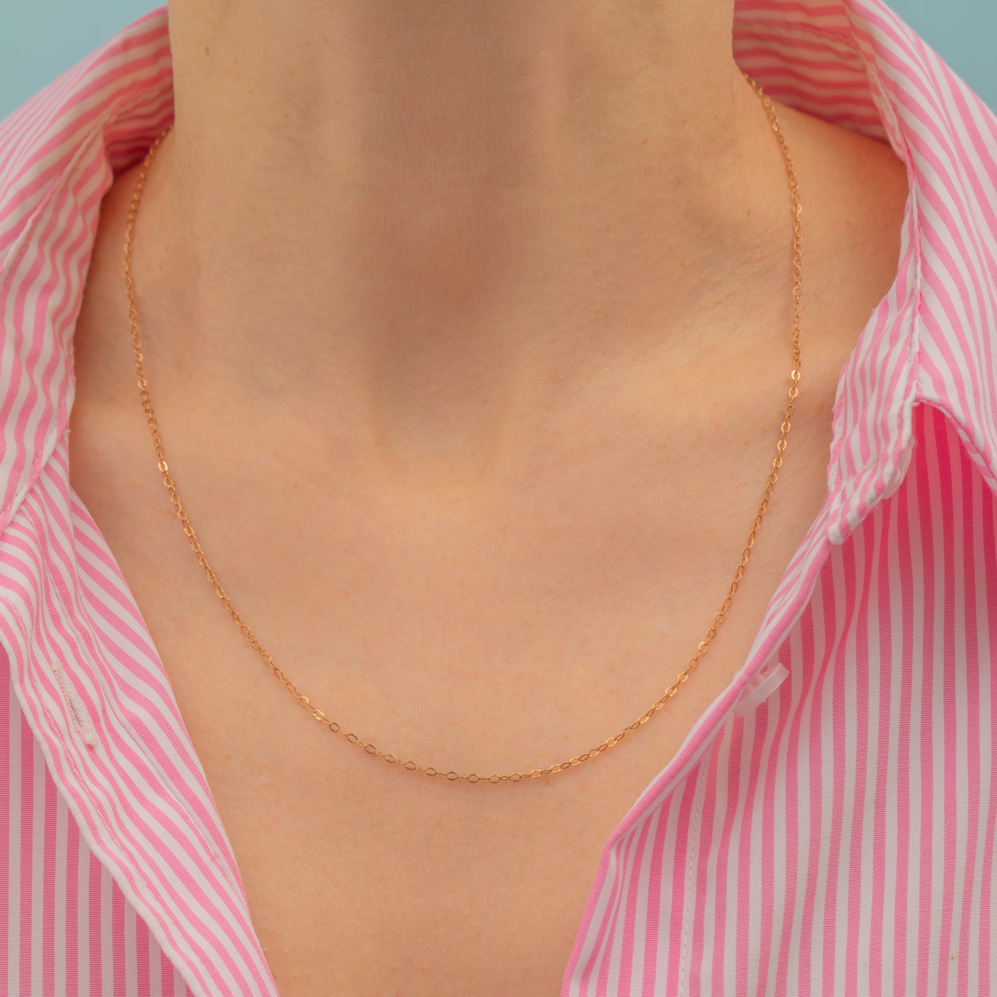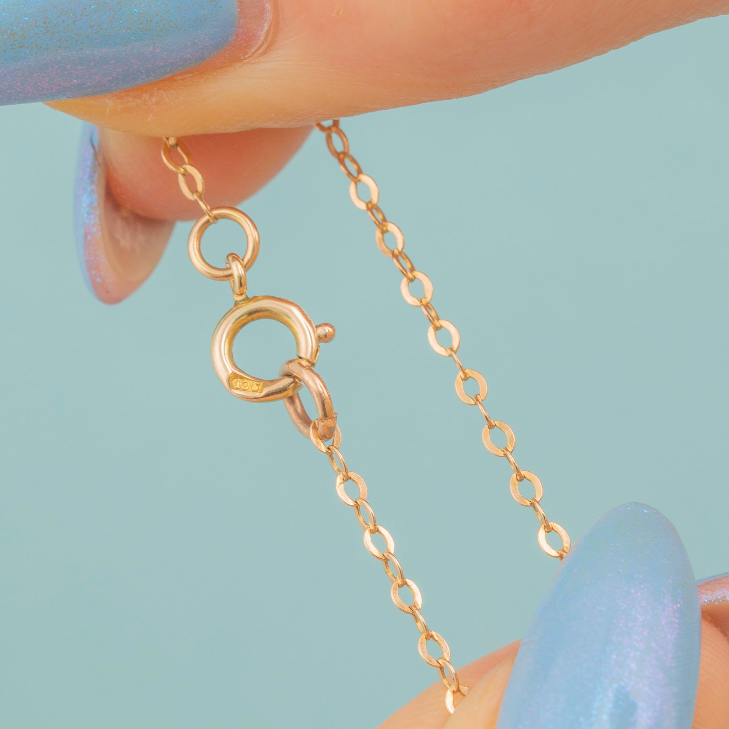 This antique 9ct Gold skinny pendant chain will make a lovely addition to your collection! The flat oval sumptuous 9ct Gold links glisten in the light, giving this chain an expensive feel.