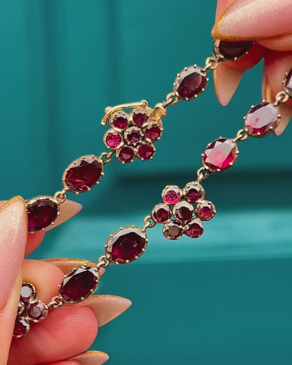 19th Century Georgian 9ct Gold Garnet Flower Bracelet