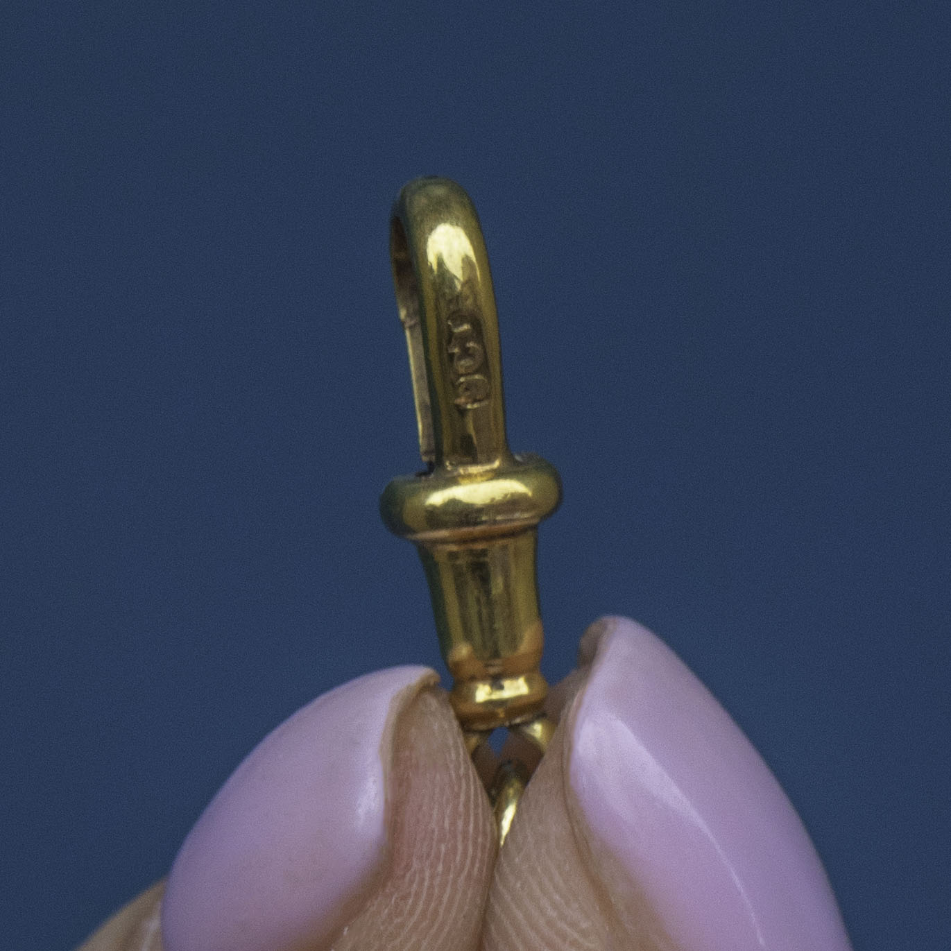 We are in love with this deep yellow antique 9ct Gold Hayseed longuard chain! Crafted from 9ct Gold, her sleek honey-hued Hayseed links rest effortlessly across your décolletage, clasped with a highly coveted dog clip to give it that classic Victorian flare.