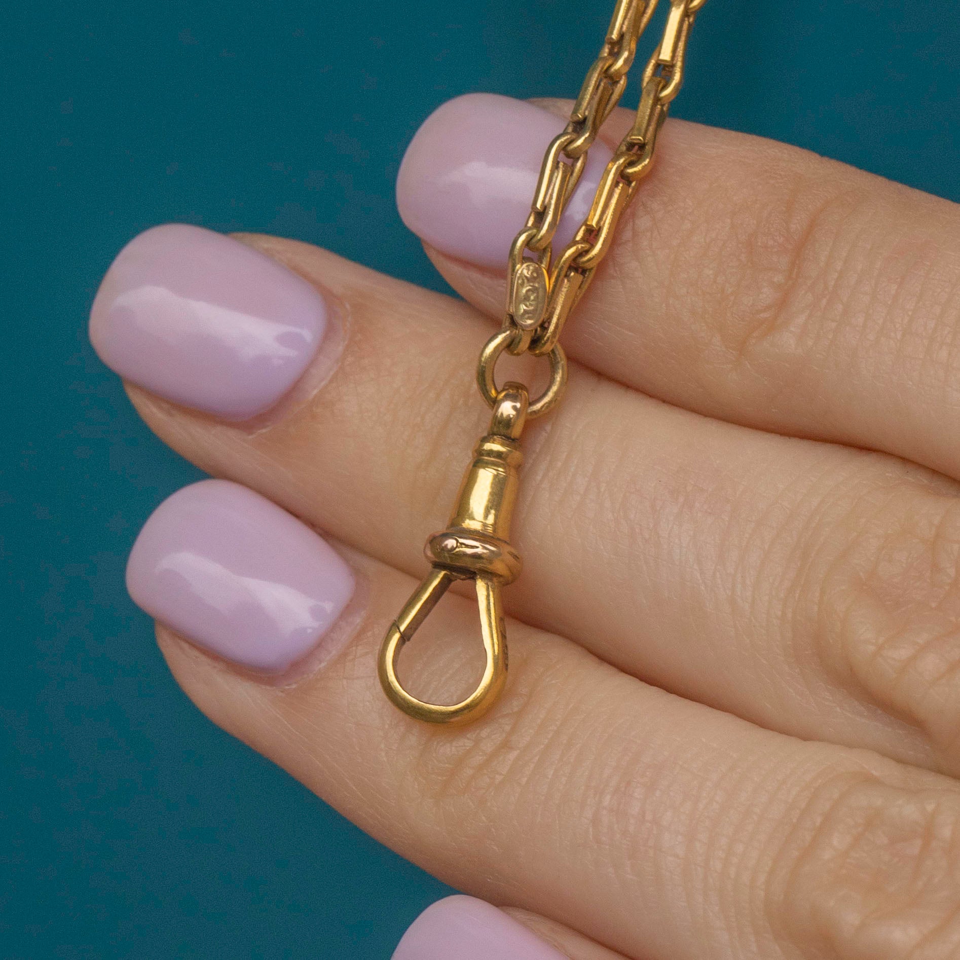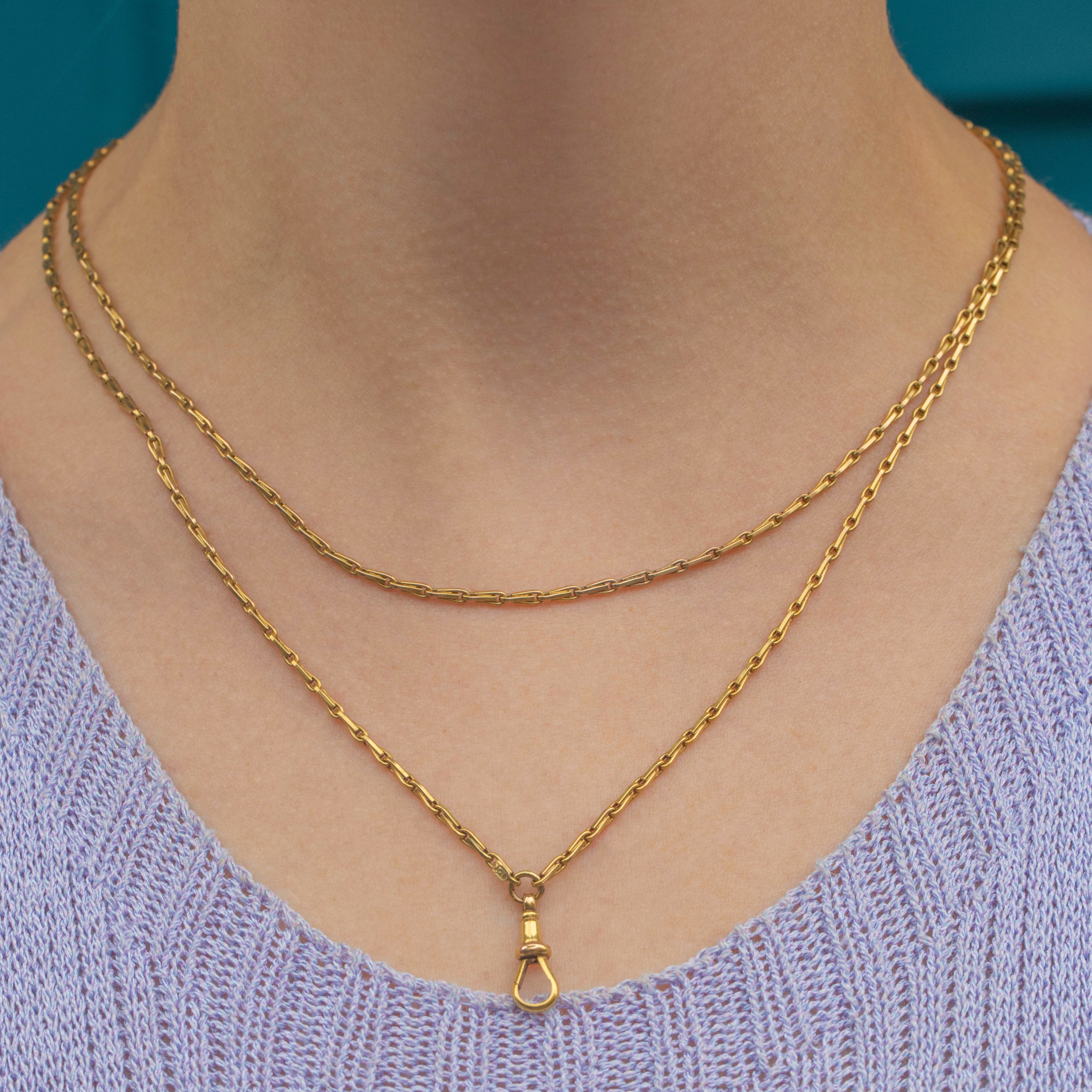 Originally a longuard chain, she can be worn at two different lengths giving you versatility in how you style her; you could even attach a delicate pendant from the dog clip to finish! With her versatility and charm, this sumptuous Victorian Gold chain will quickly become part of your every day wear, you won't want to take her off!