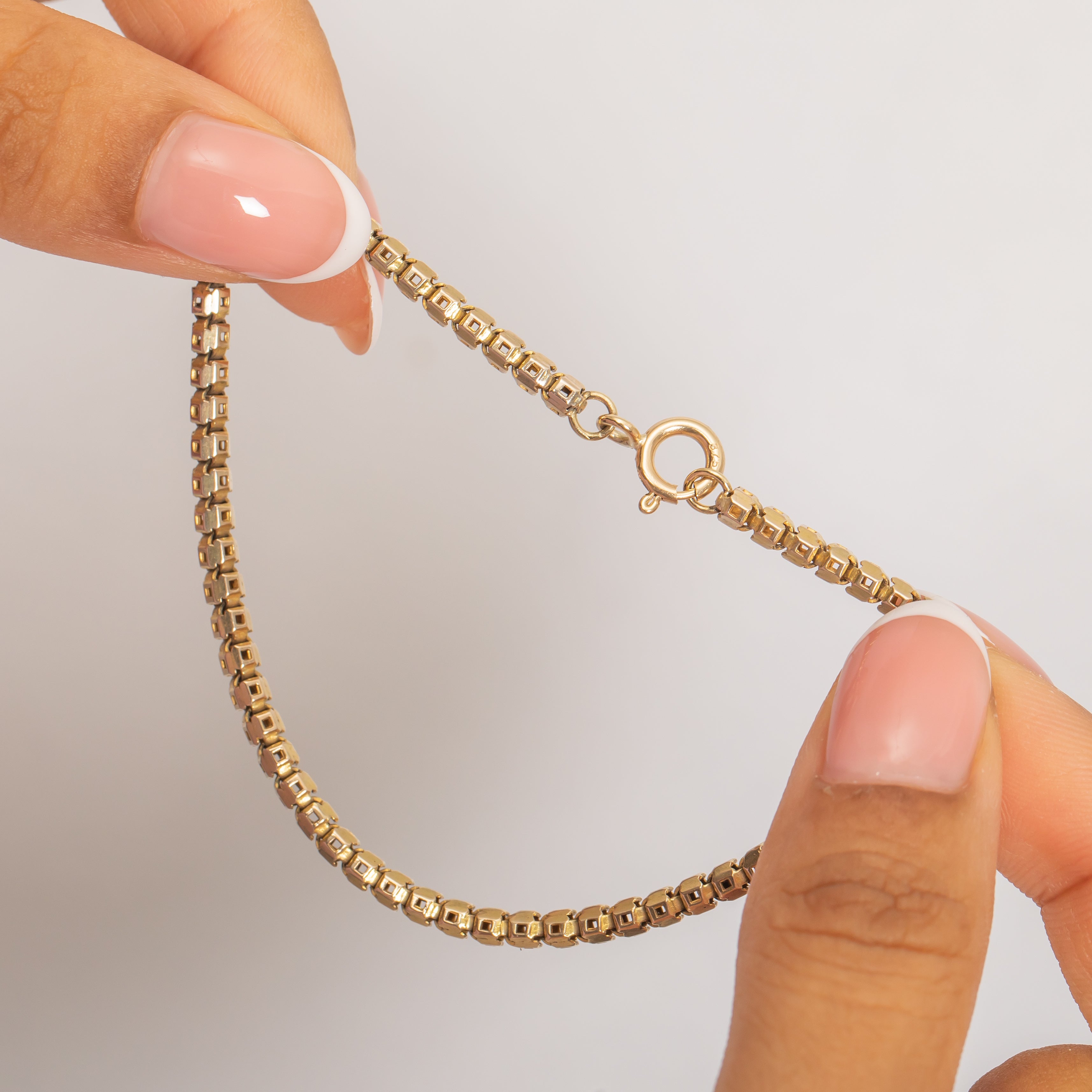 EXCELLENT. This antique 9ct Gold pierced chain bracelet is in excellent condition! Her box links are uniform and securely interlinked, making for comfortable wear. The bolt ring is a later addition and in perfect working order allowing you to wear this magnificent antique Gold bracelet with confidence. Overall, this is a wonderful piece that would make a fantastic addition to any antique collection!