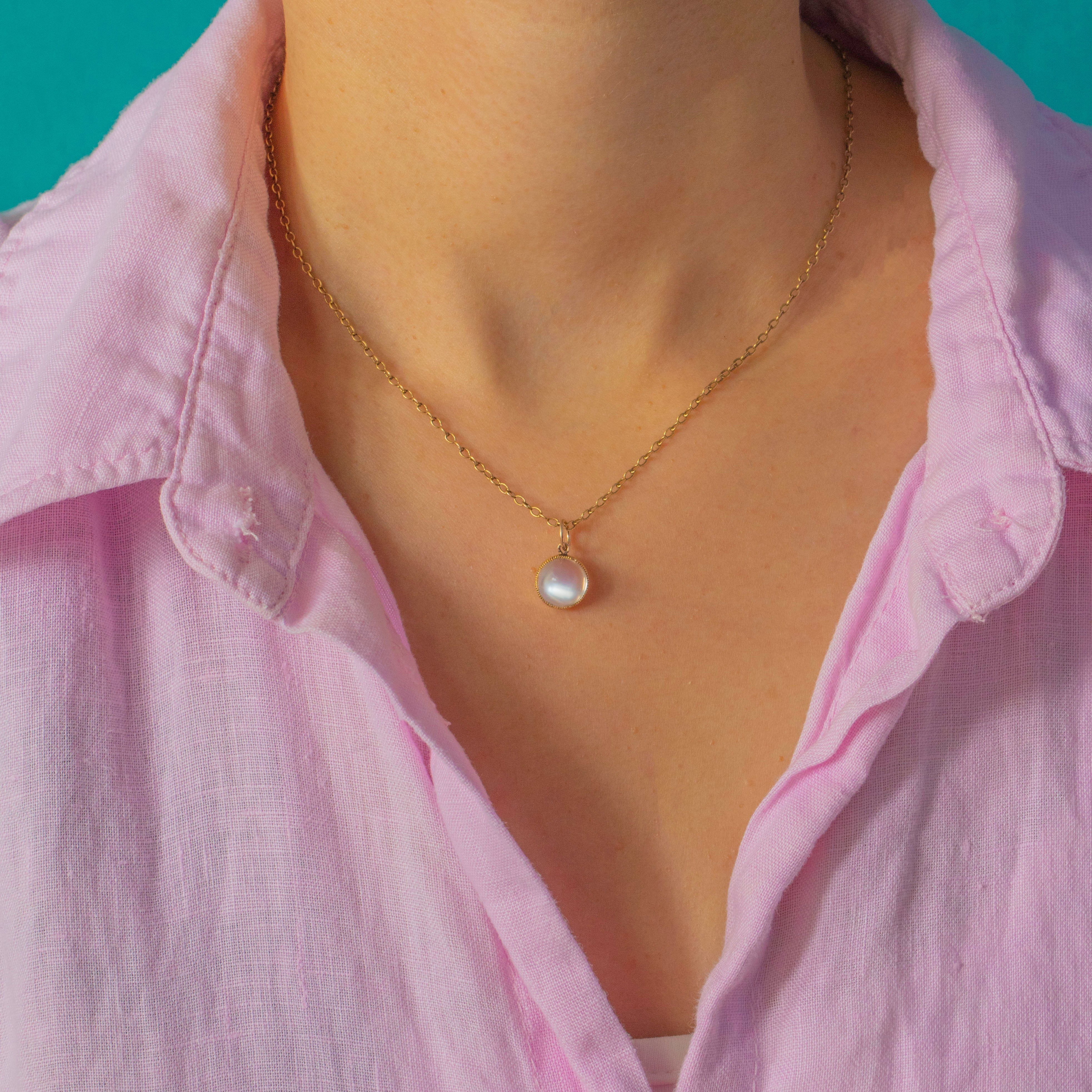 Set in a neat Gold bezel with a millegrain edge and simple jump ring, it’s the perfect pendant for everyday wear or layering with your favourite chains. Understated yet magical, this little Moonstone charm will become a go-to piece in any collection.