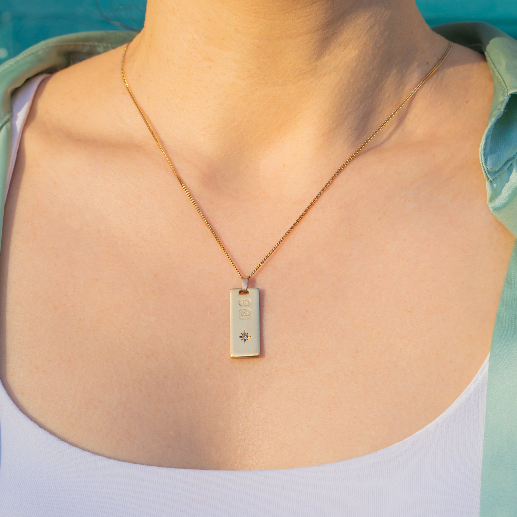 The beauty of this 9ct Gold star-set Diamond pendant is in the simplicity of its design, its ability to marry with your other Golden goodies, and its timeless charm! An adorable piece, this vintage Gold ingot pendant is set to become your new everyday essential.