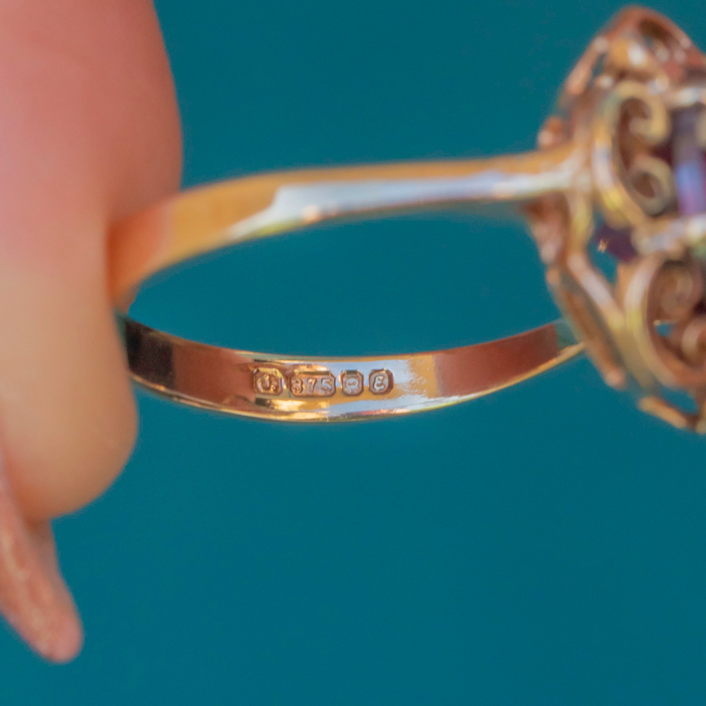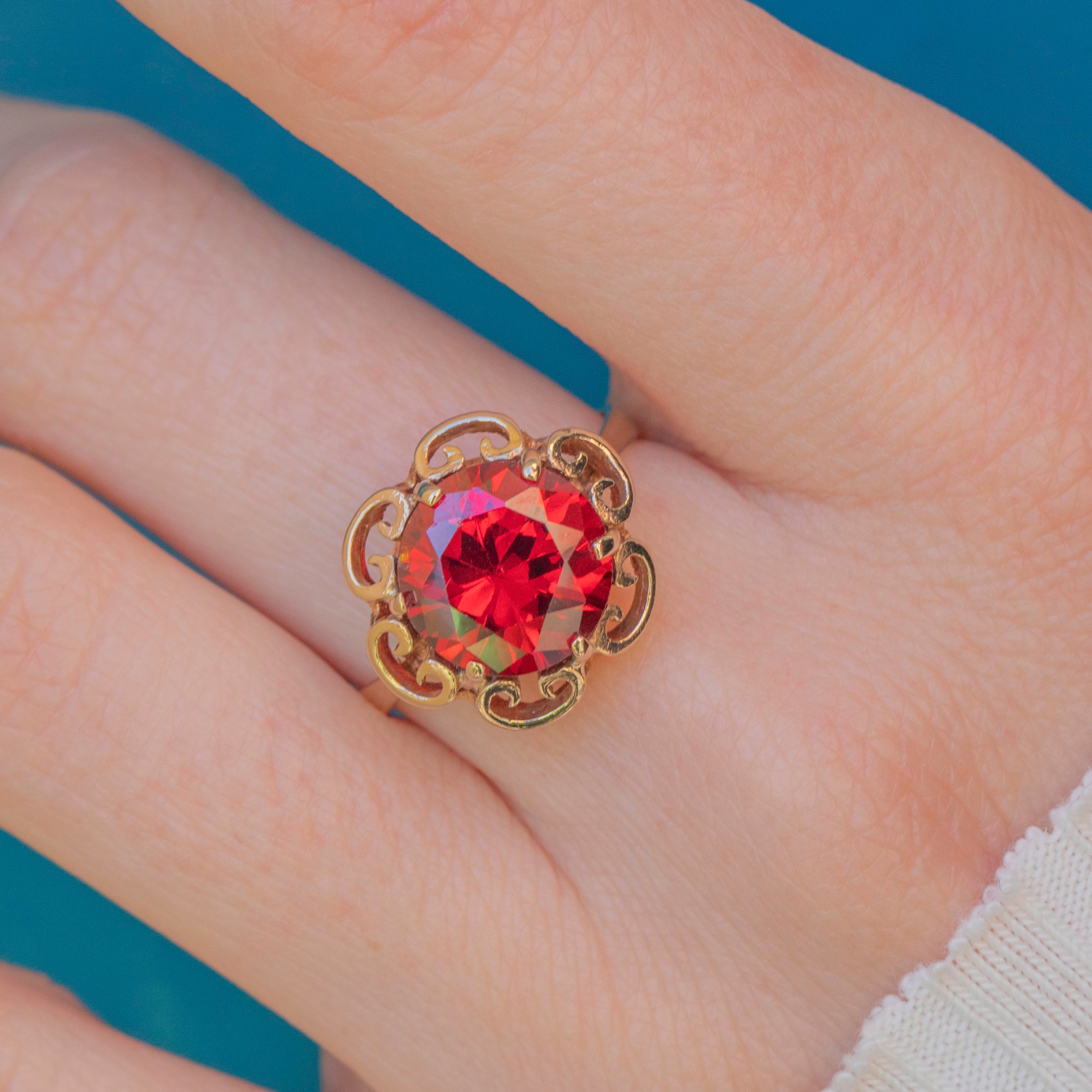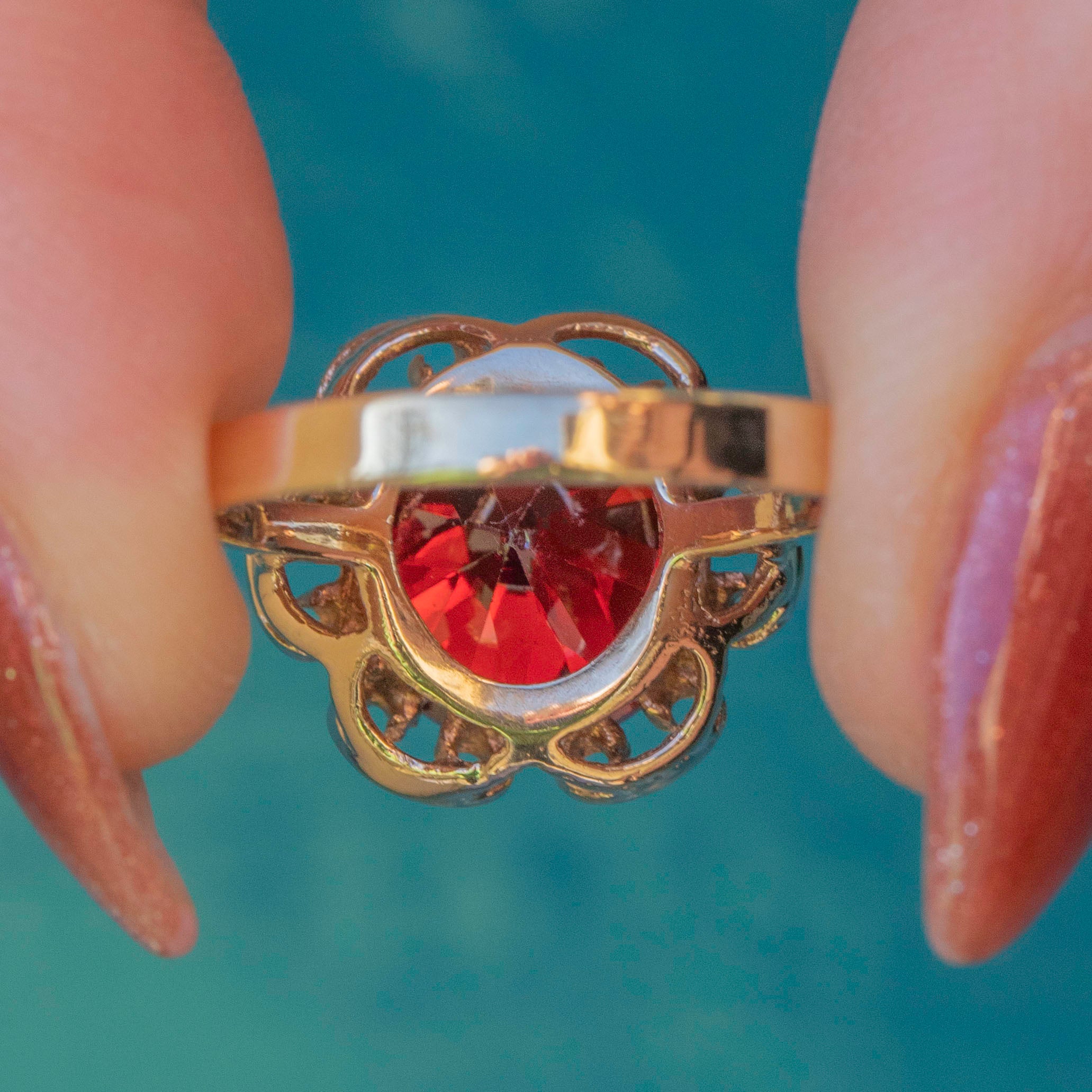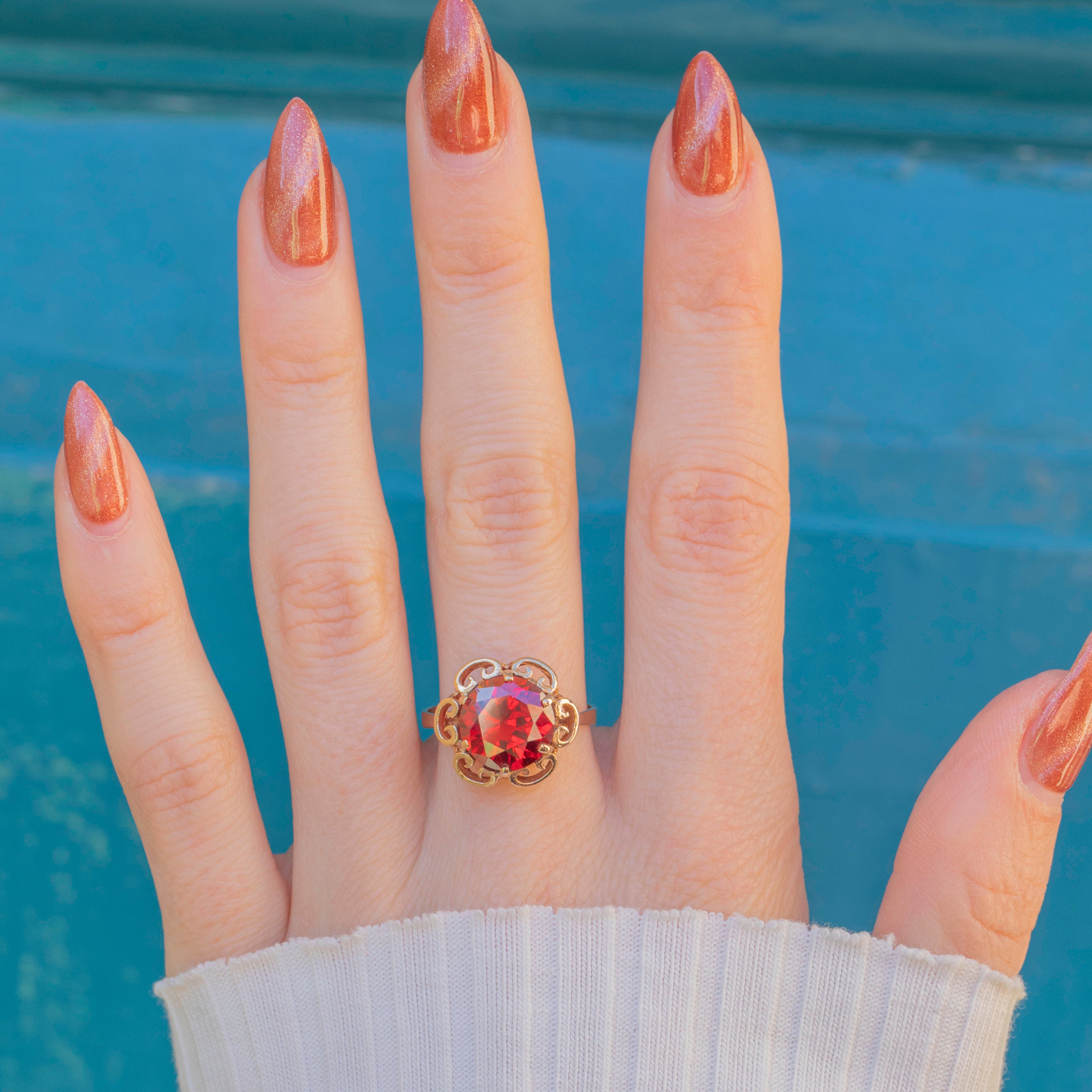 This 9ct Gold Garnet flower ring is a glamorous vintage piece for your attire!