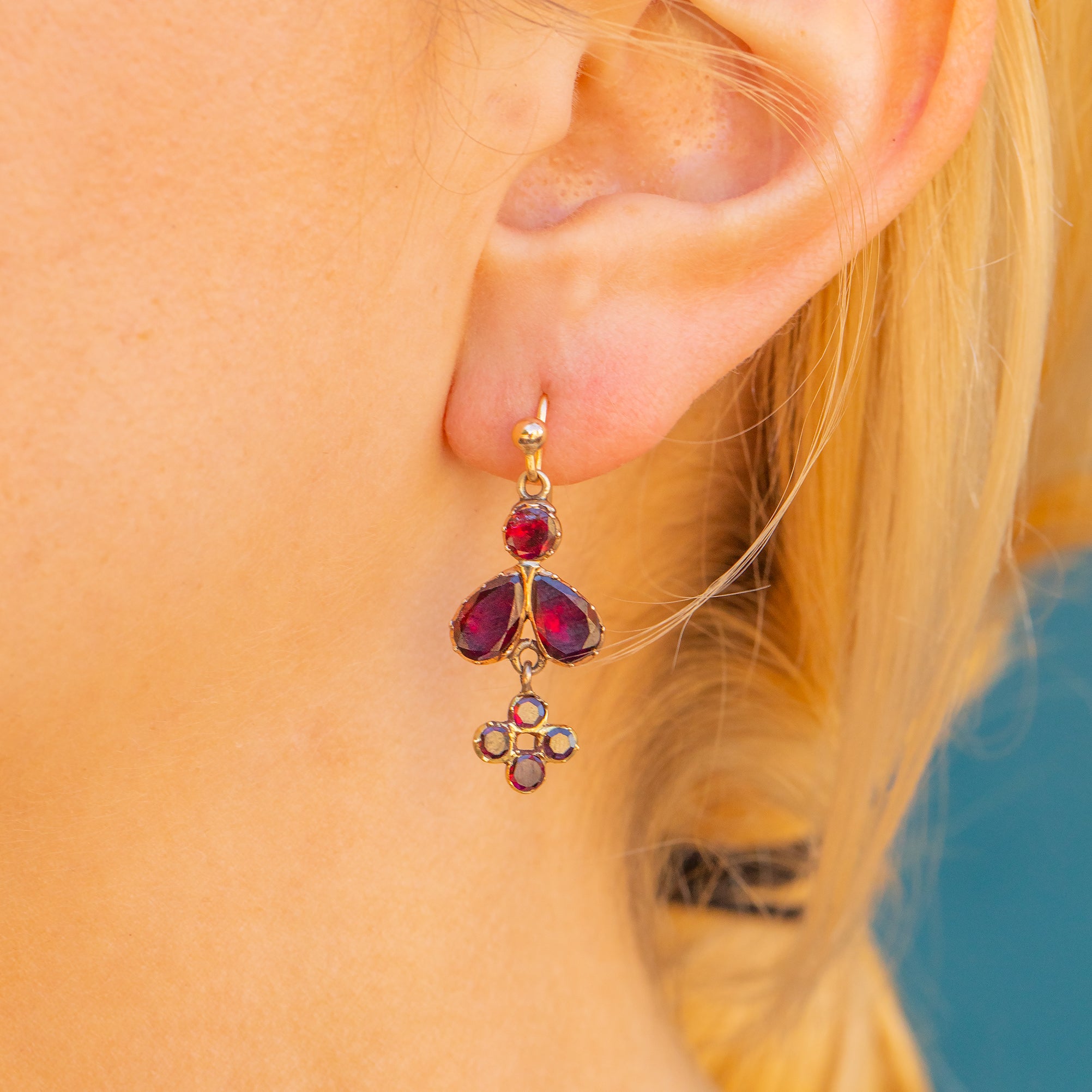 9ct Gold Georgian Flat-Cut Garnet Drop Earrings