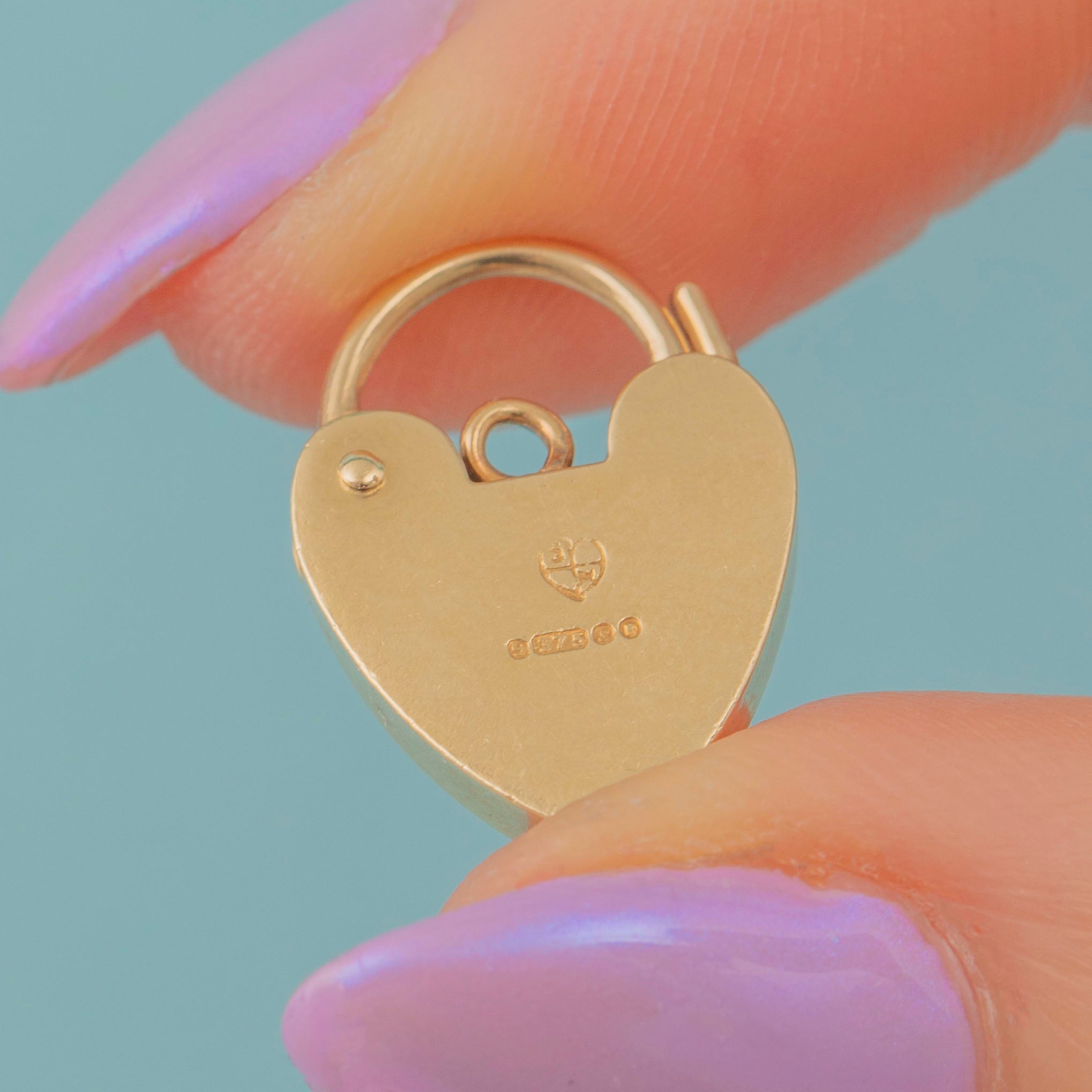 A symbol of lasting love, heart padlock pendants are a great option to add a romantic flare to your neck stack or bracelets. This vintage pendant is crafted from buttery 9ct Gold and is fully hallmarked, dated to 1973.