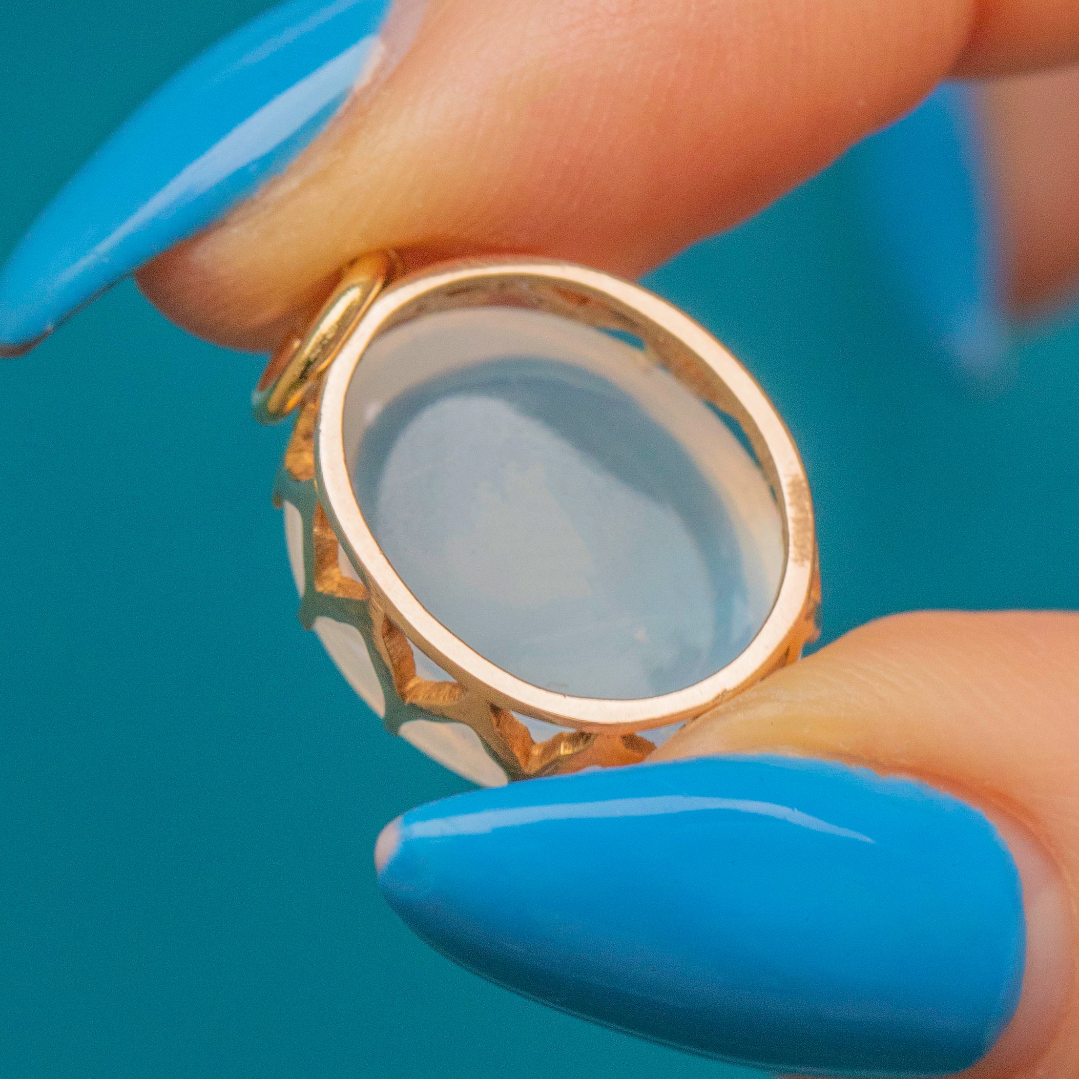 This Victorian 14ct Gold Moonstone cabochon pendant is an exquisite piece. Crafted from 14ct Gold and set with a spectacular iridescent Moonstone cabochon, this antique charm radiates dreamy hues and is sure to bring a little magic to your jewellery box.