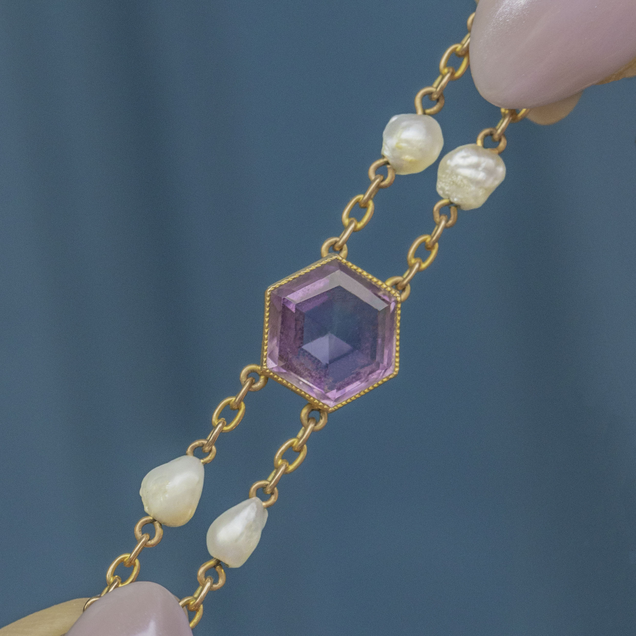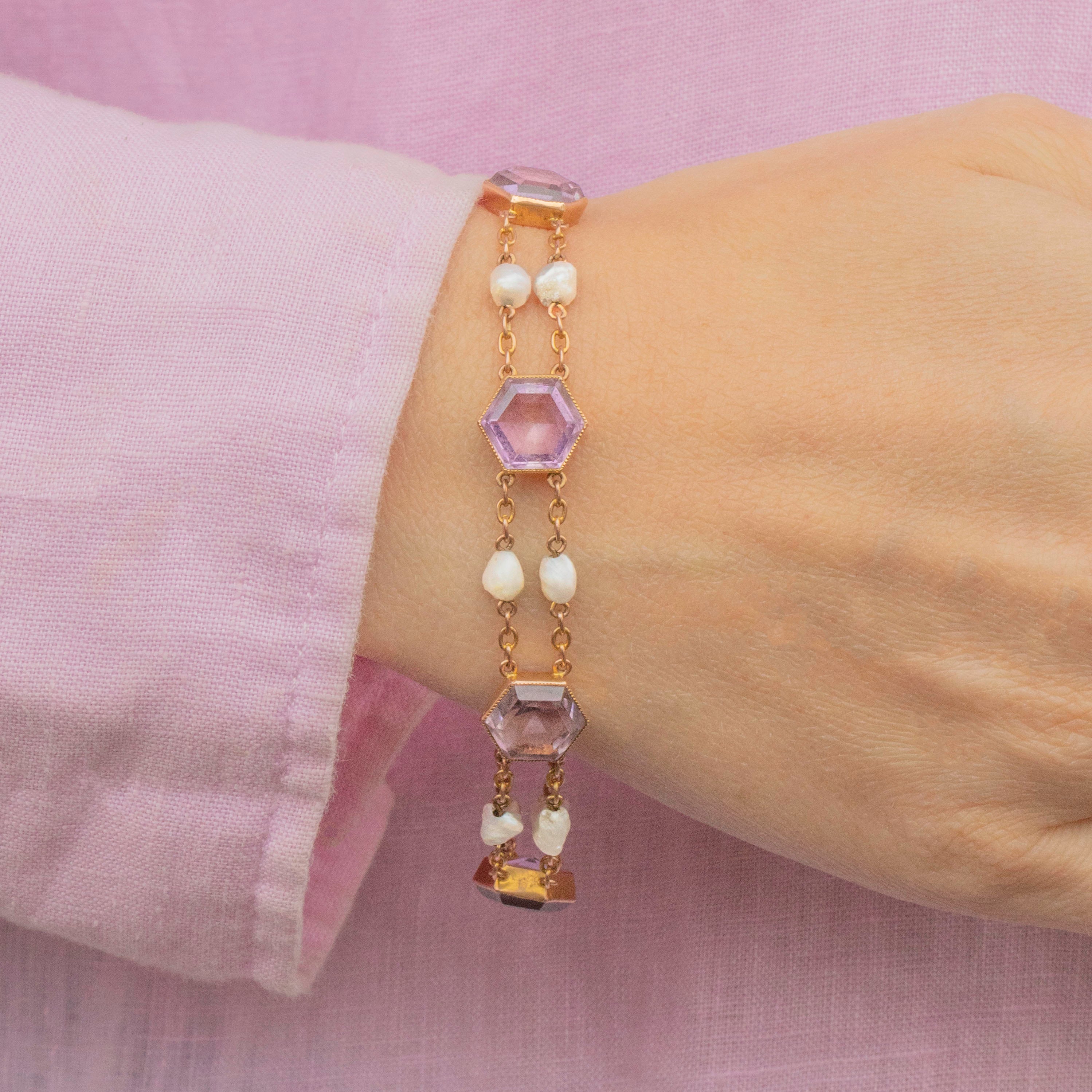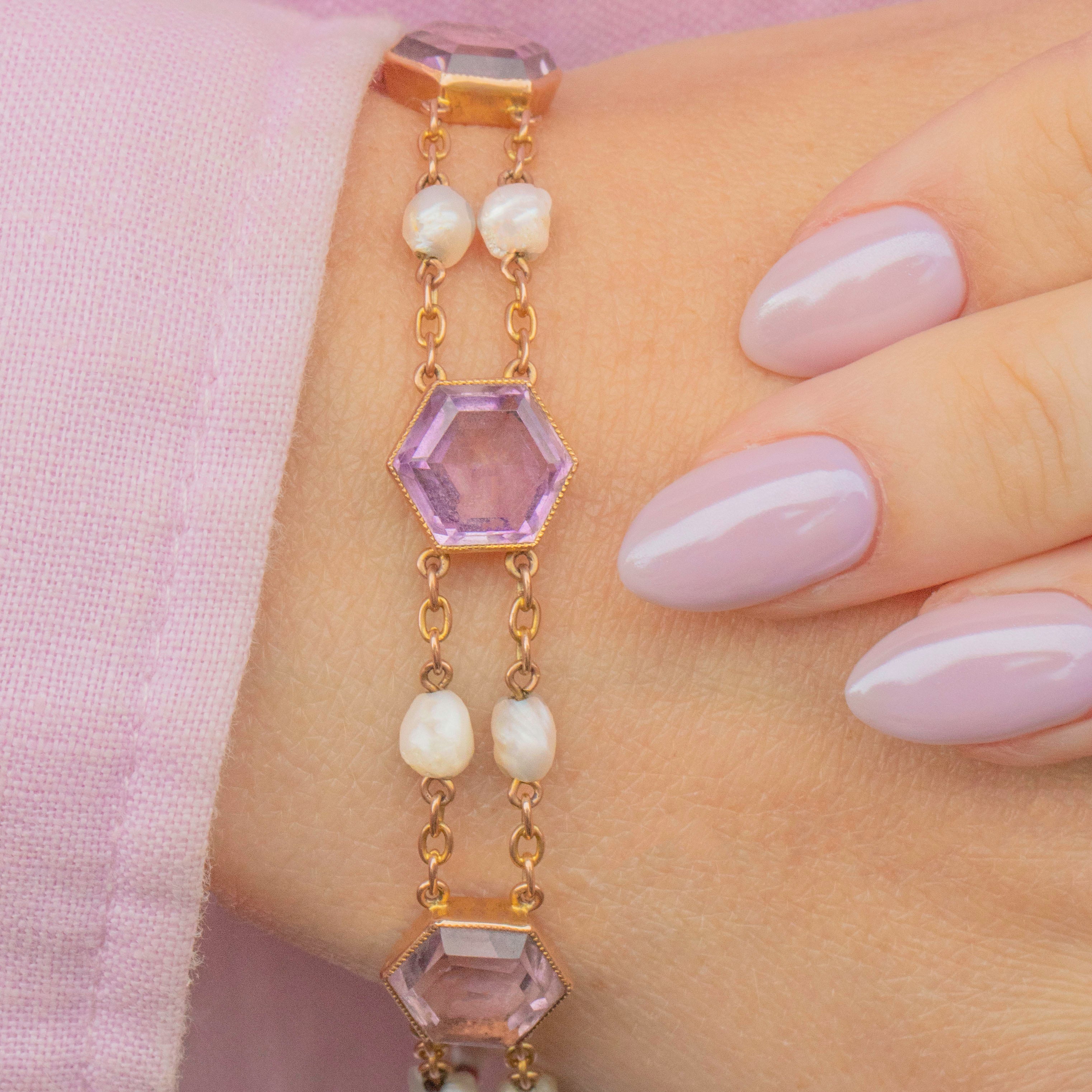Antique 15ct Gold Amethyst Baroque Pearl Bracelet, 11.50ct