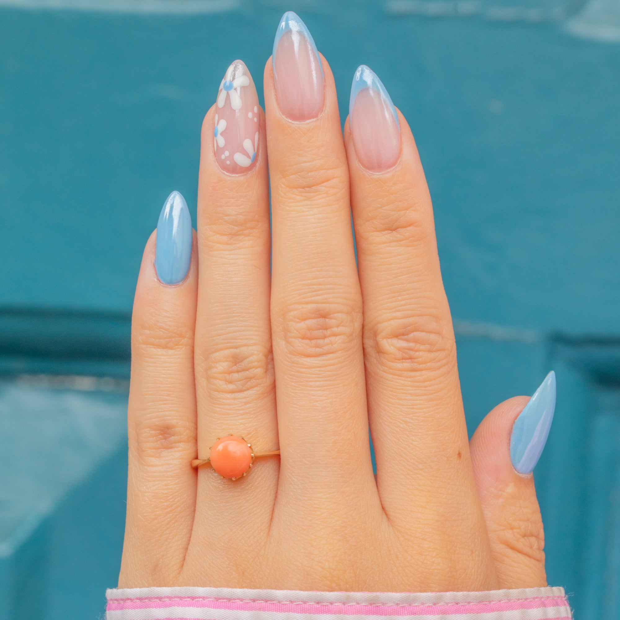 A great versatile piece for your collection, this vibrant peachy Victorian Coral ring will bring the perfect pop of colour to any outfit.