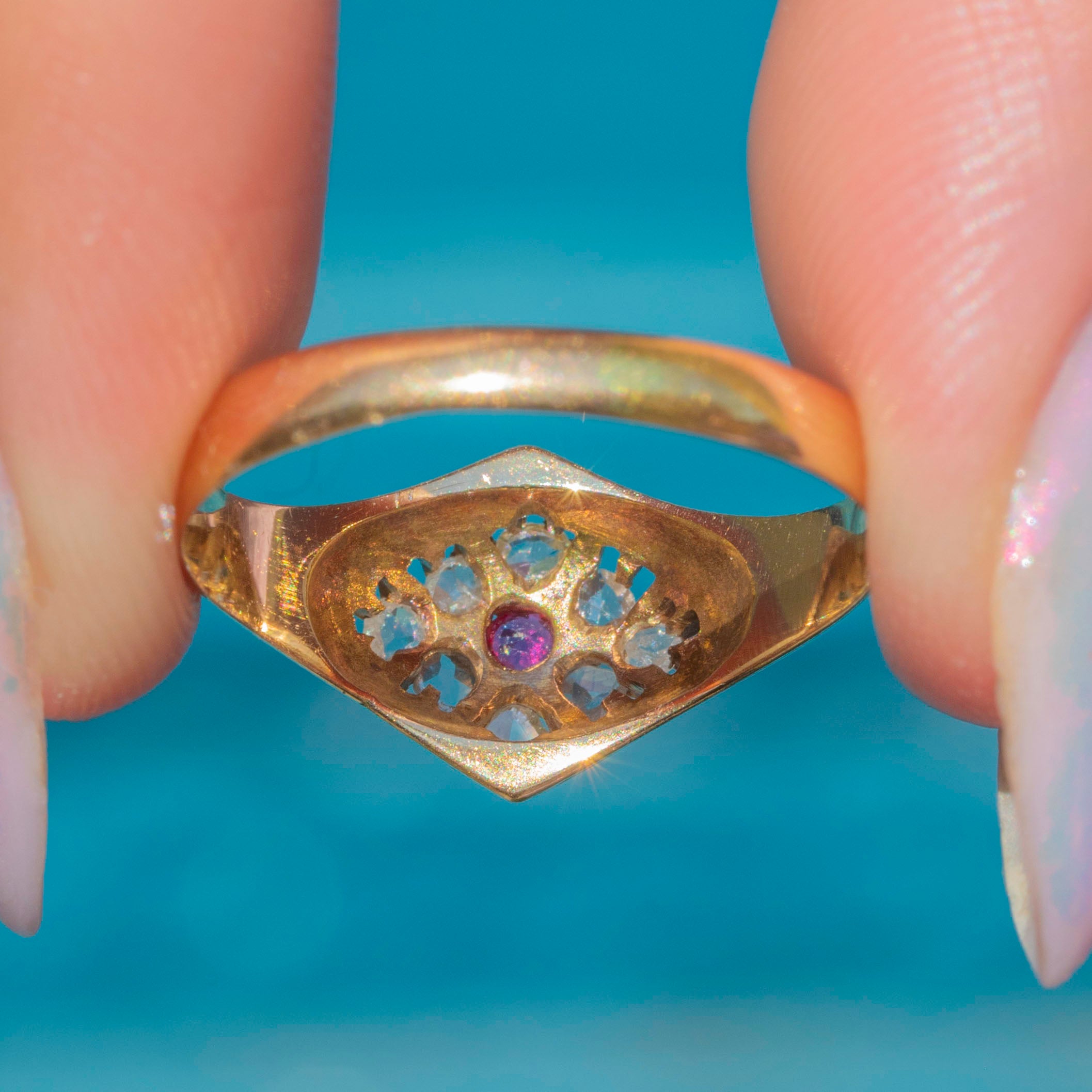 Antique 15ct Gold Diamond Ruby Cluster Ring, Star Motif