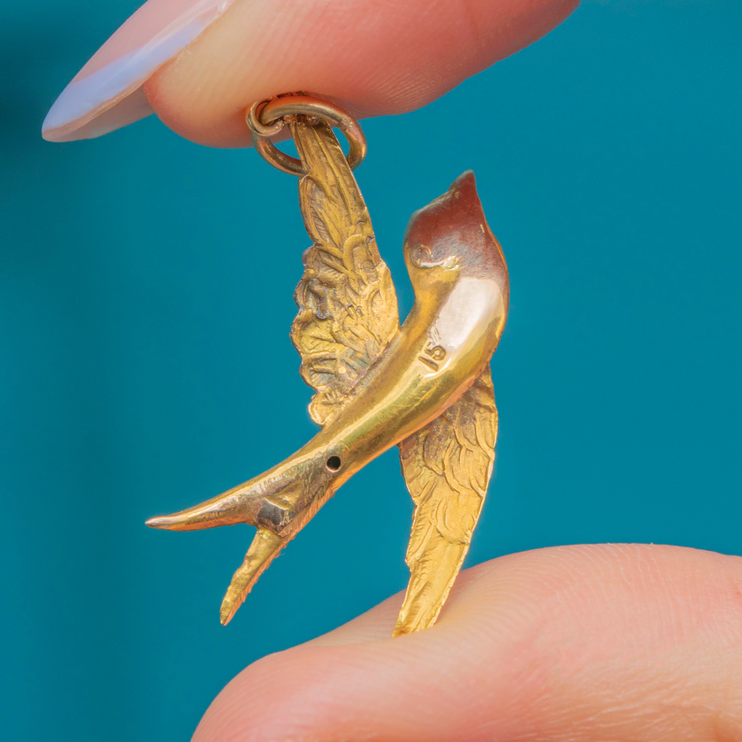 A quintessentially Victorian motif, this 15ct Gold swallow pendant radiates antique charm and is a must-have for your collection!