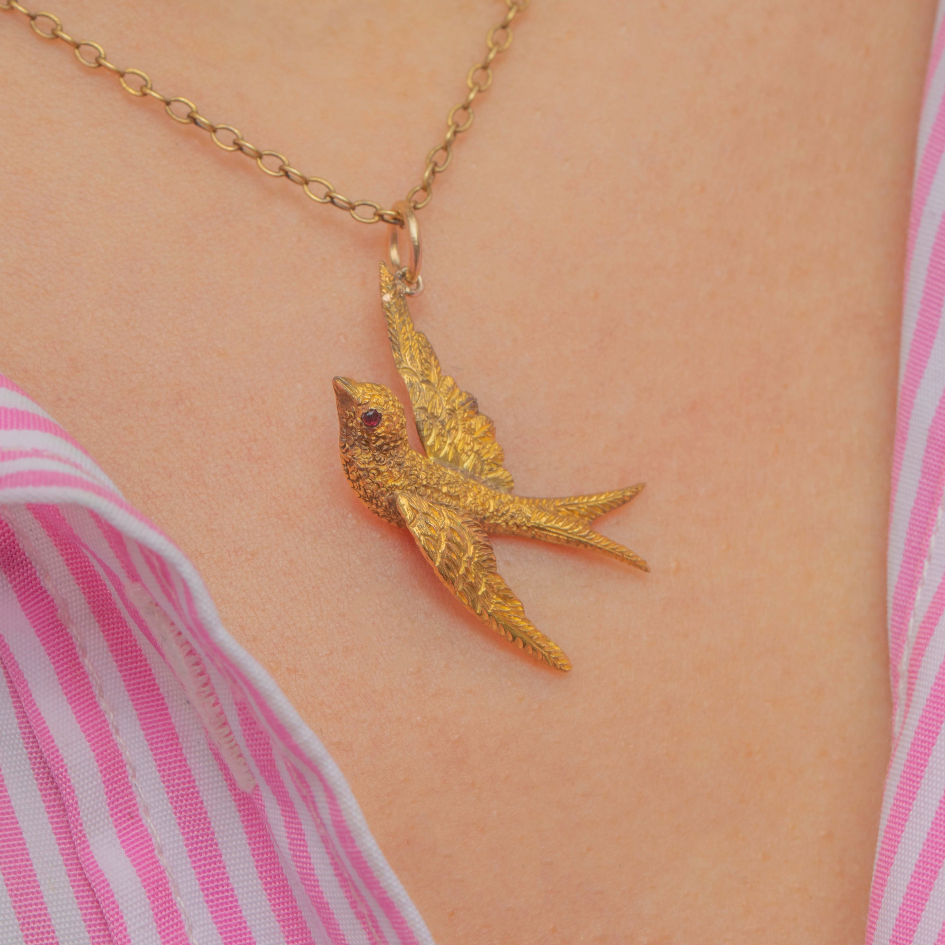 Add a touch of Victorian charm to your attire with this antique 15ct Gold swallow pendant!