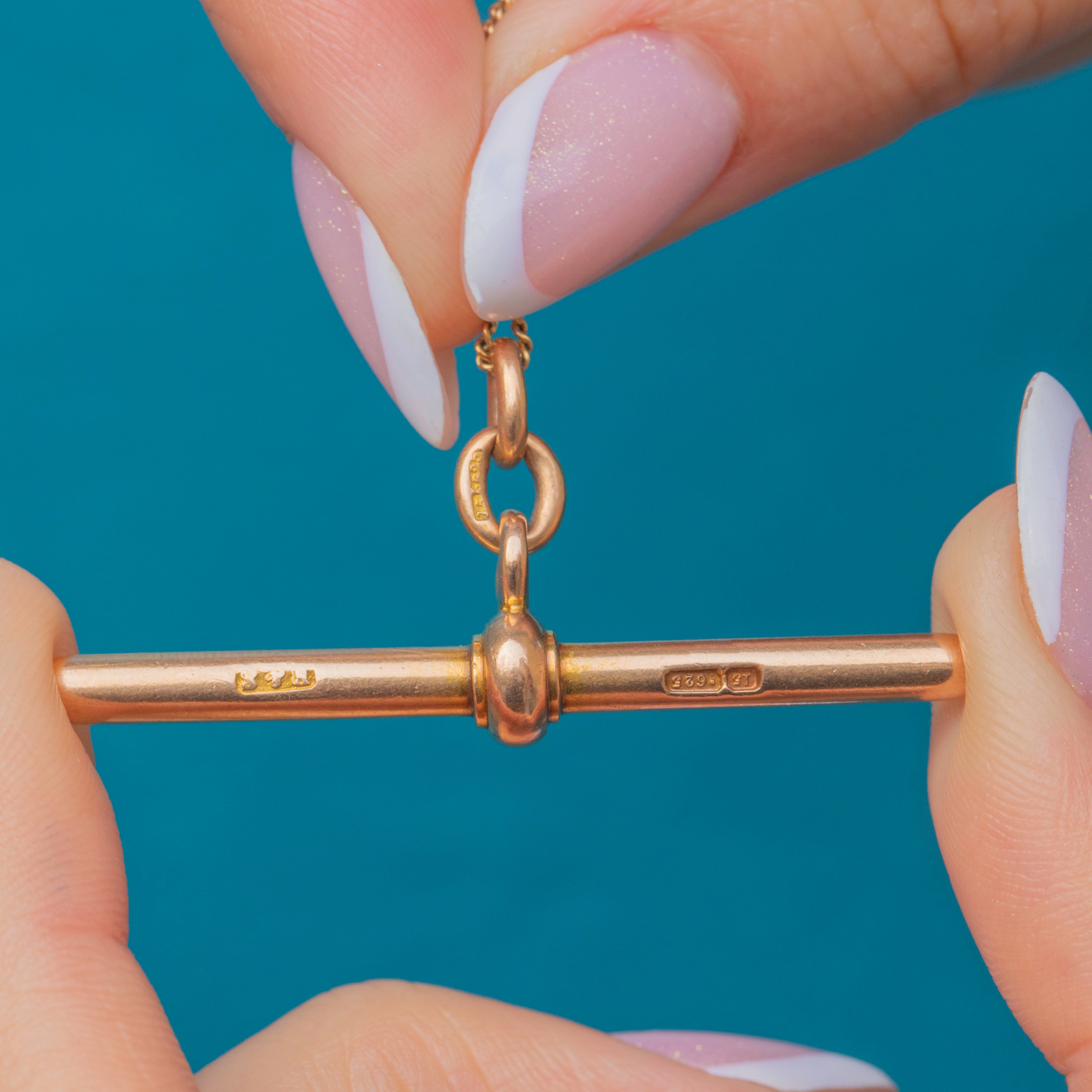 This antique 15ct Gold t-bar pendant is a fabulous timeless piece. As fashionable today as when she was crafted over a century ago, this Victorian t-bar is crafted from 7 grams of solid Gold and will make a luxurious addition to a skinny Gold chain!