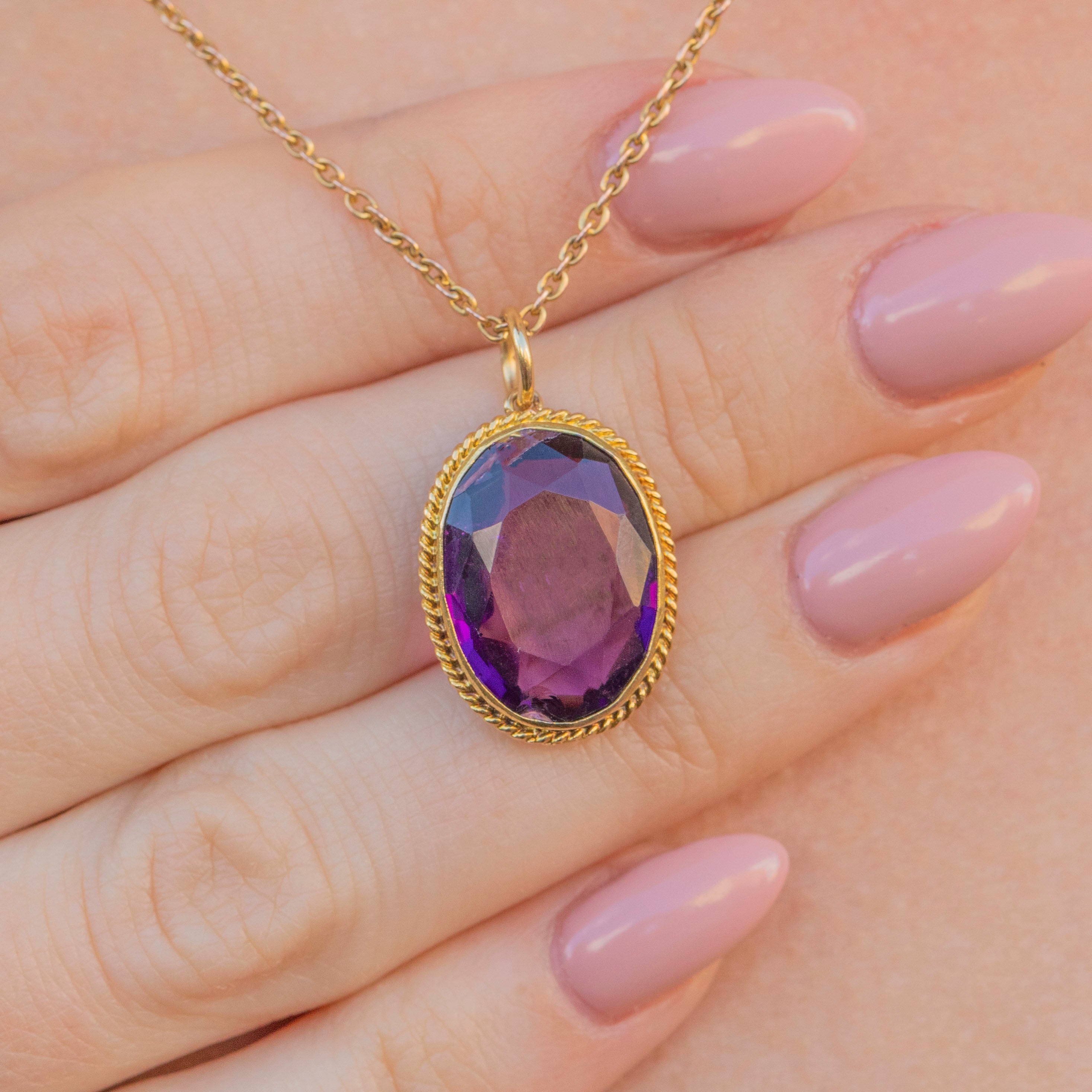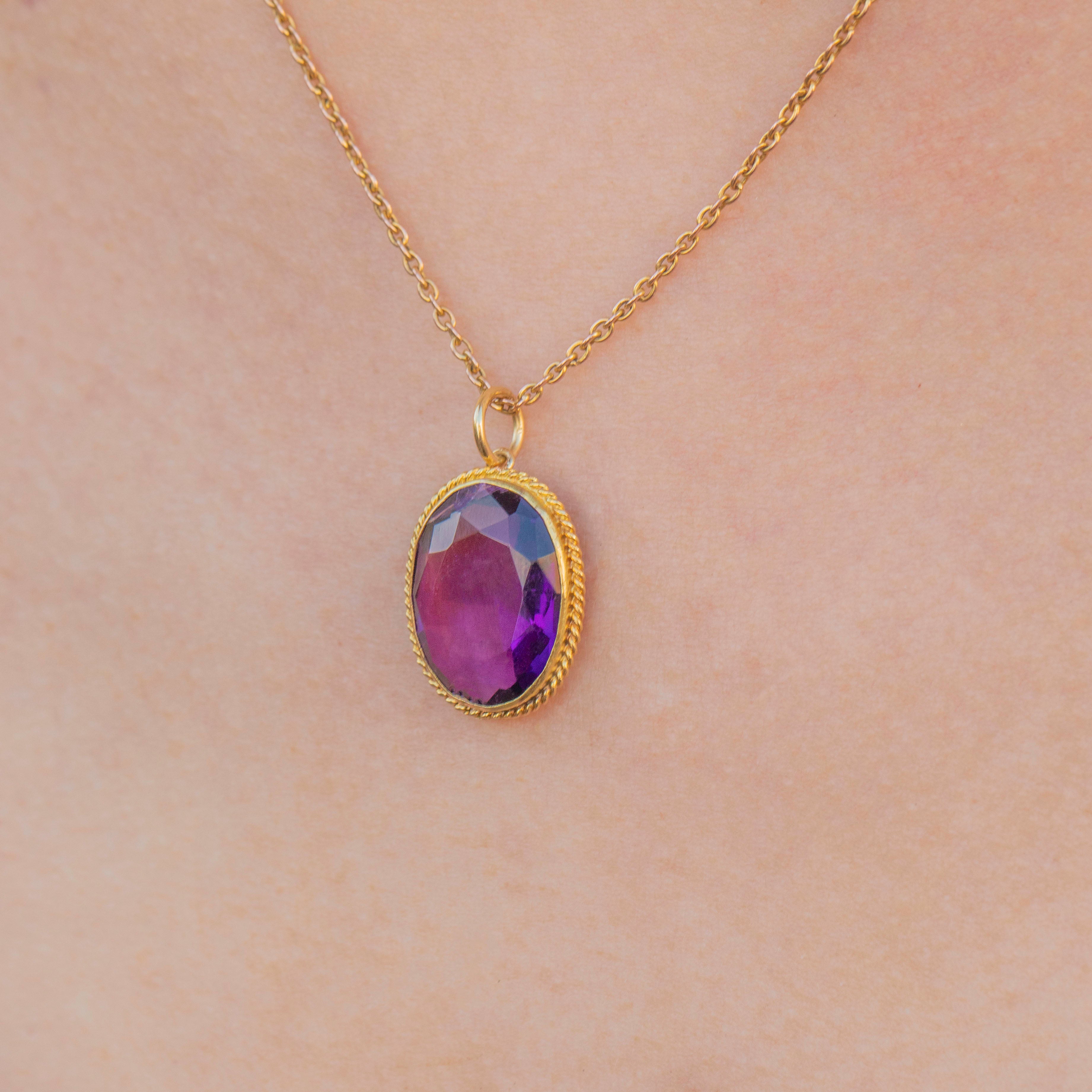 Antique 18ct Gold Amethyst Oval Pendant, 4.57ct