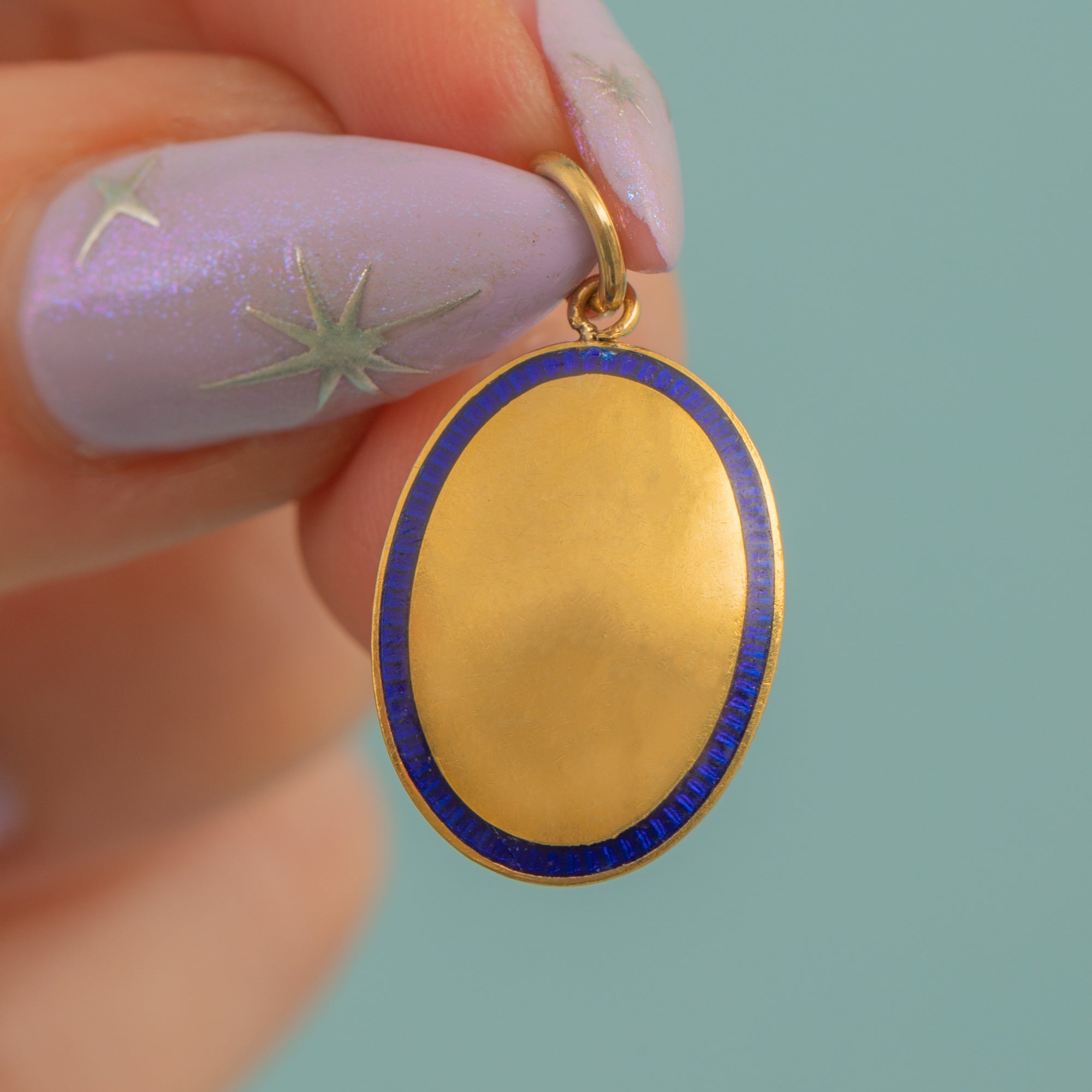 Antique 18ct Gold Blue Enamel Oval Pendant