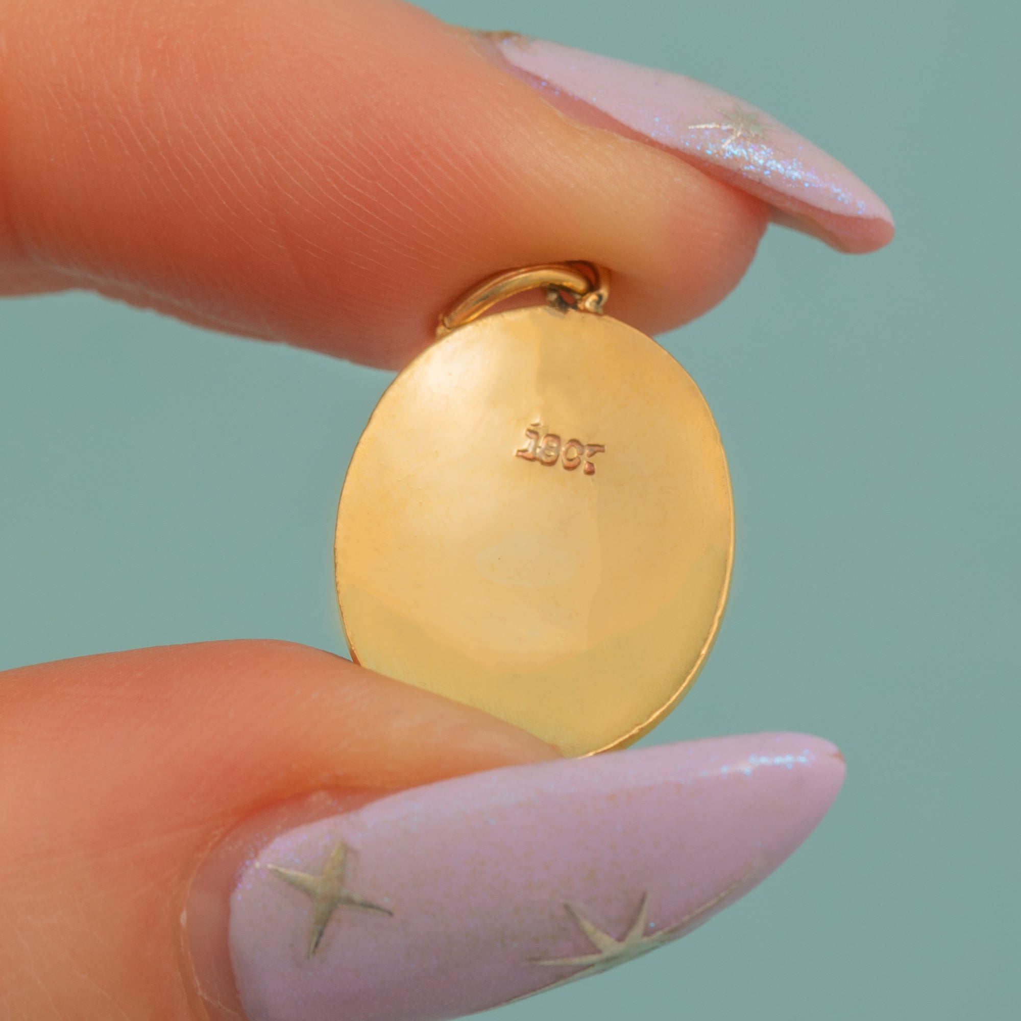 STAMPS: '18CT' on back of pendant