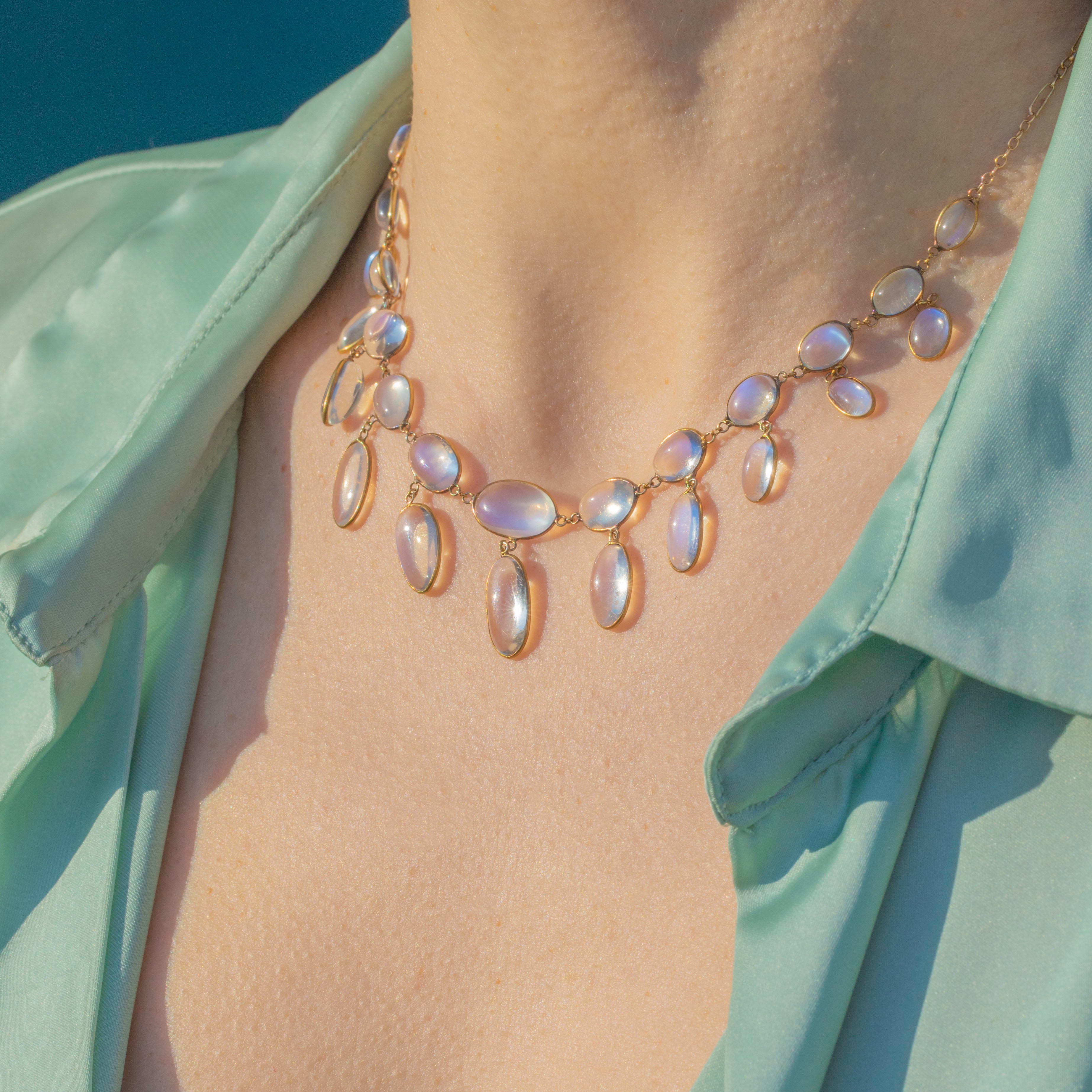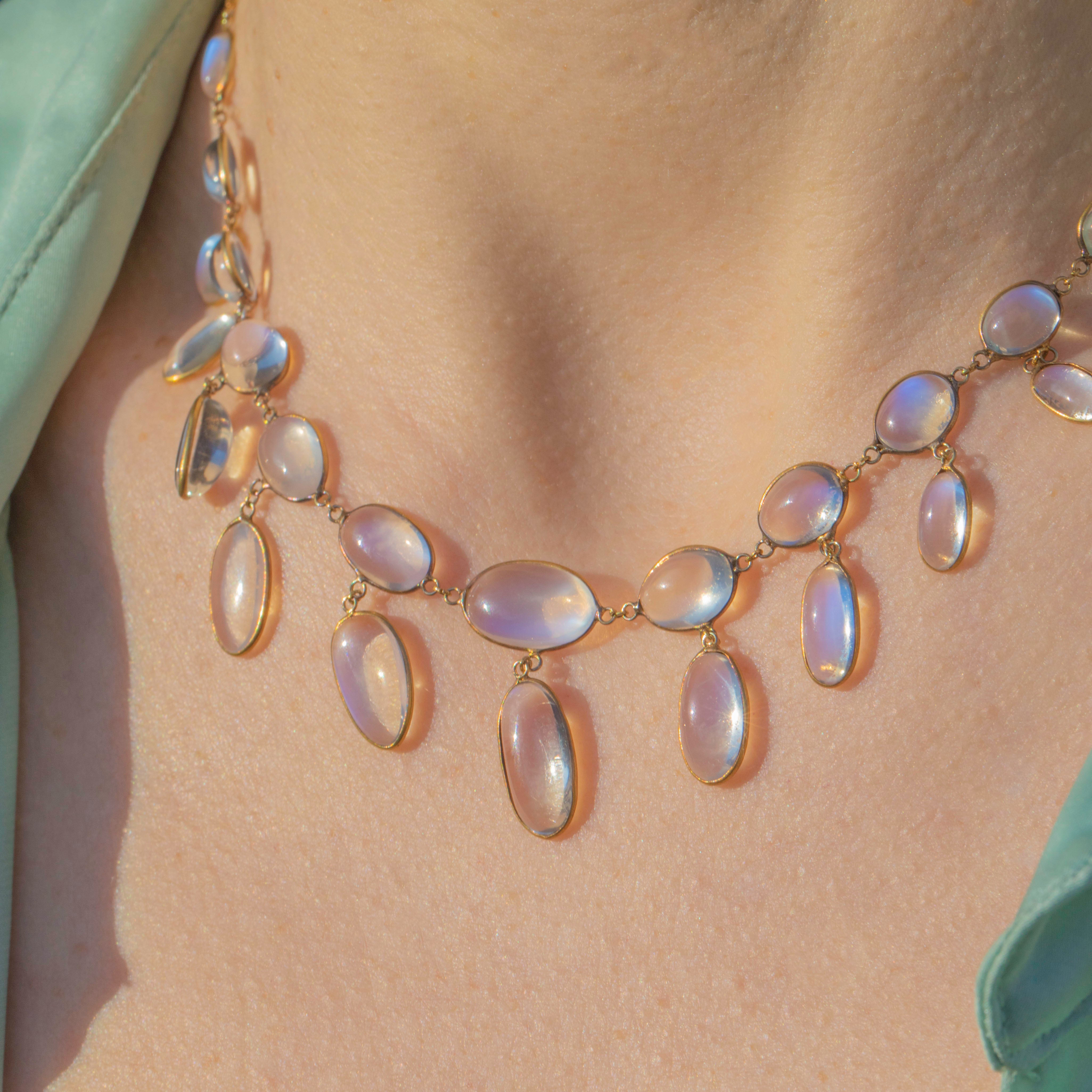Antique 18ct Gold Ceylon Moonstone Fringe Necklace, 20.80ct