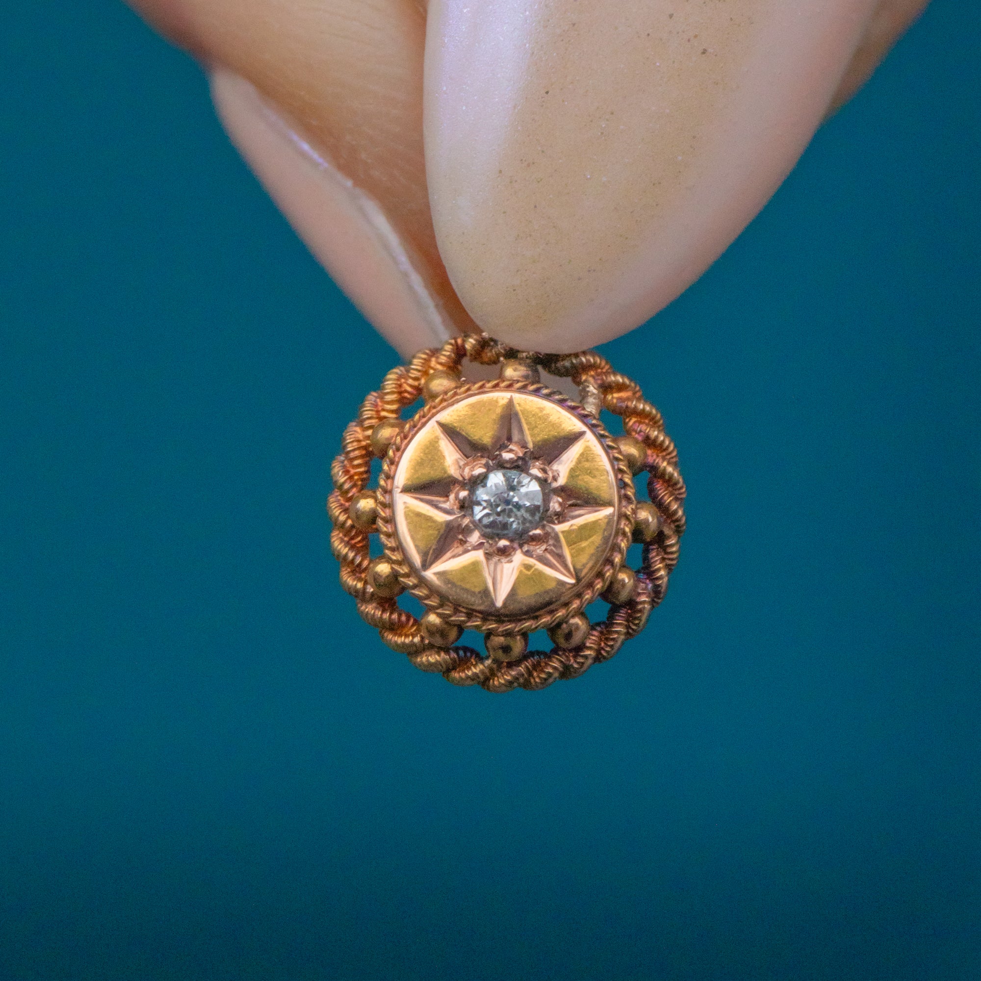 Add a touch of celestial allure to your outfit with this antique 18ct Gold Etruscan Diamond charm!