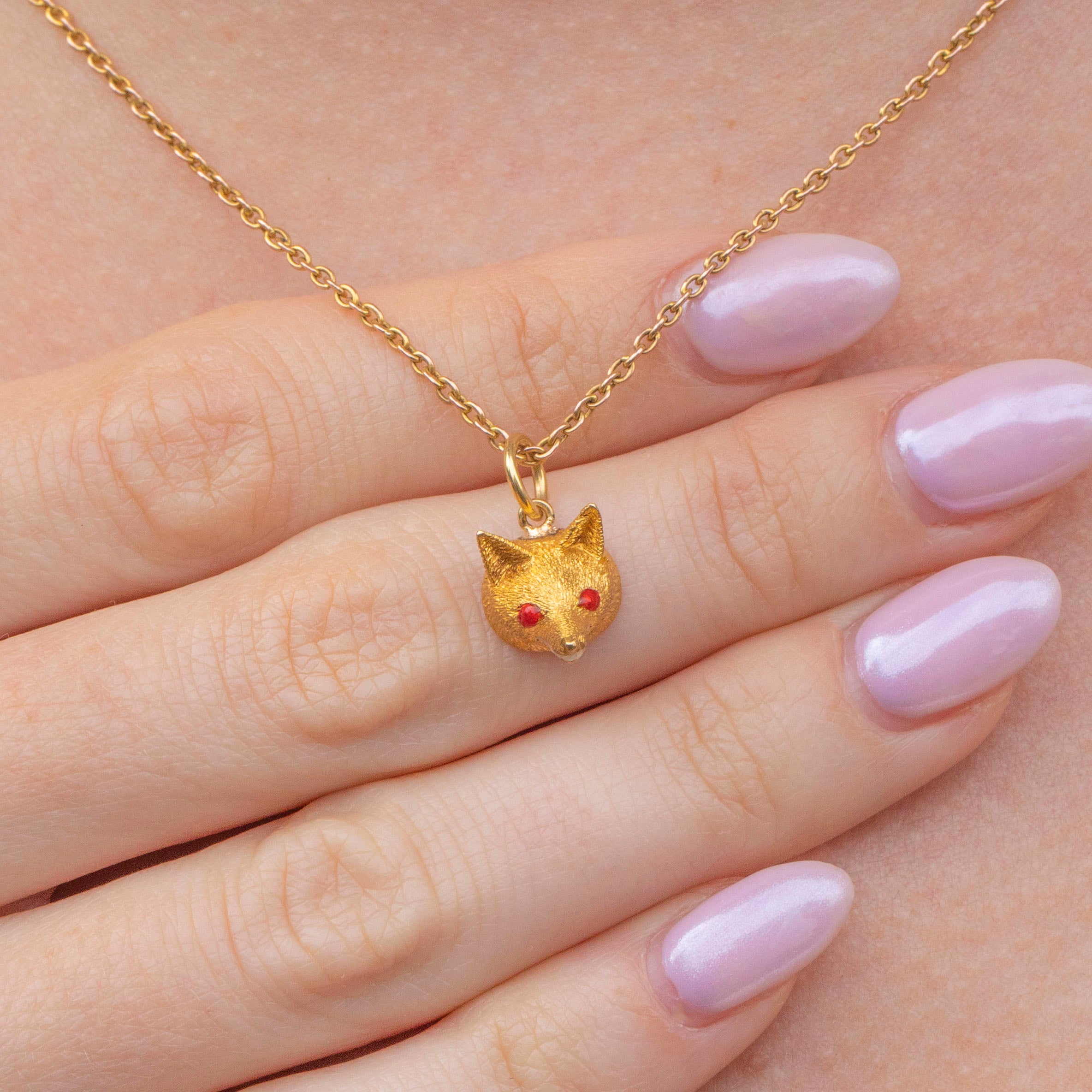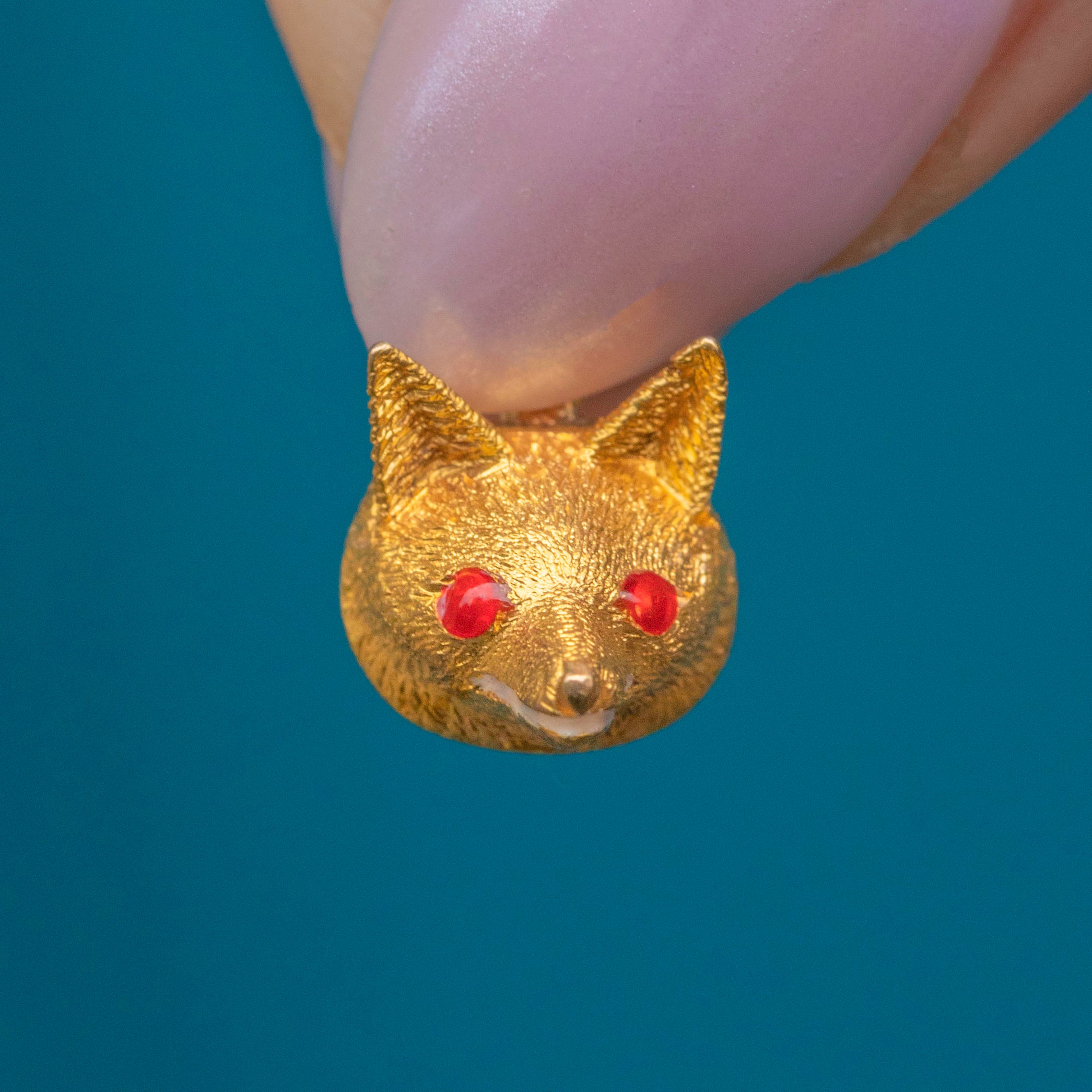 Antique 18ct Gold Fox Charm, Red Enamel Eyes