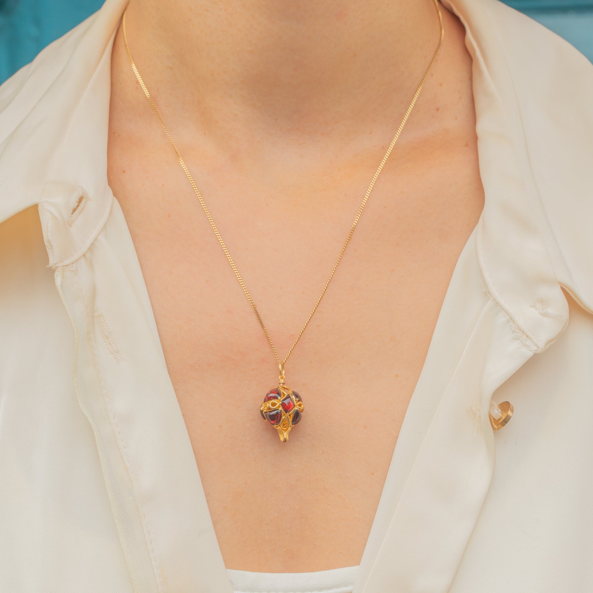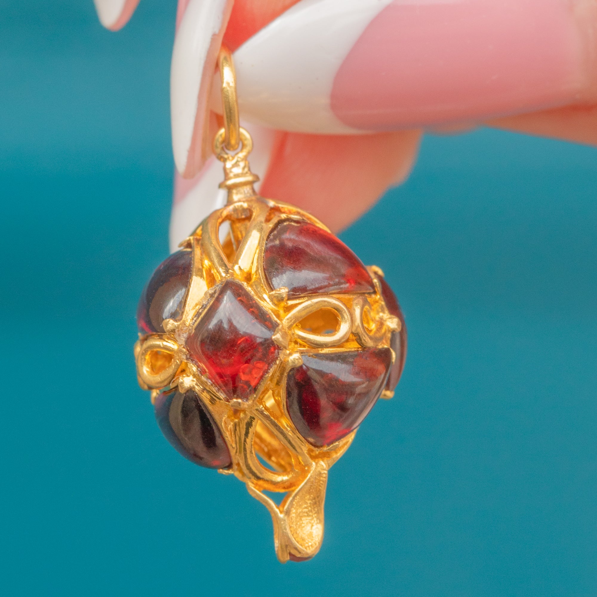 An antique 18ct Gold charm inspired by the pomegranate motif, set with vibrant Garnets arranged to evoke the fruit’s natural form.