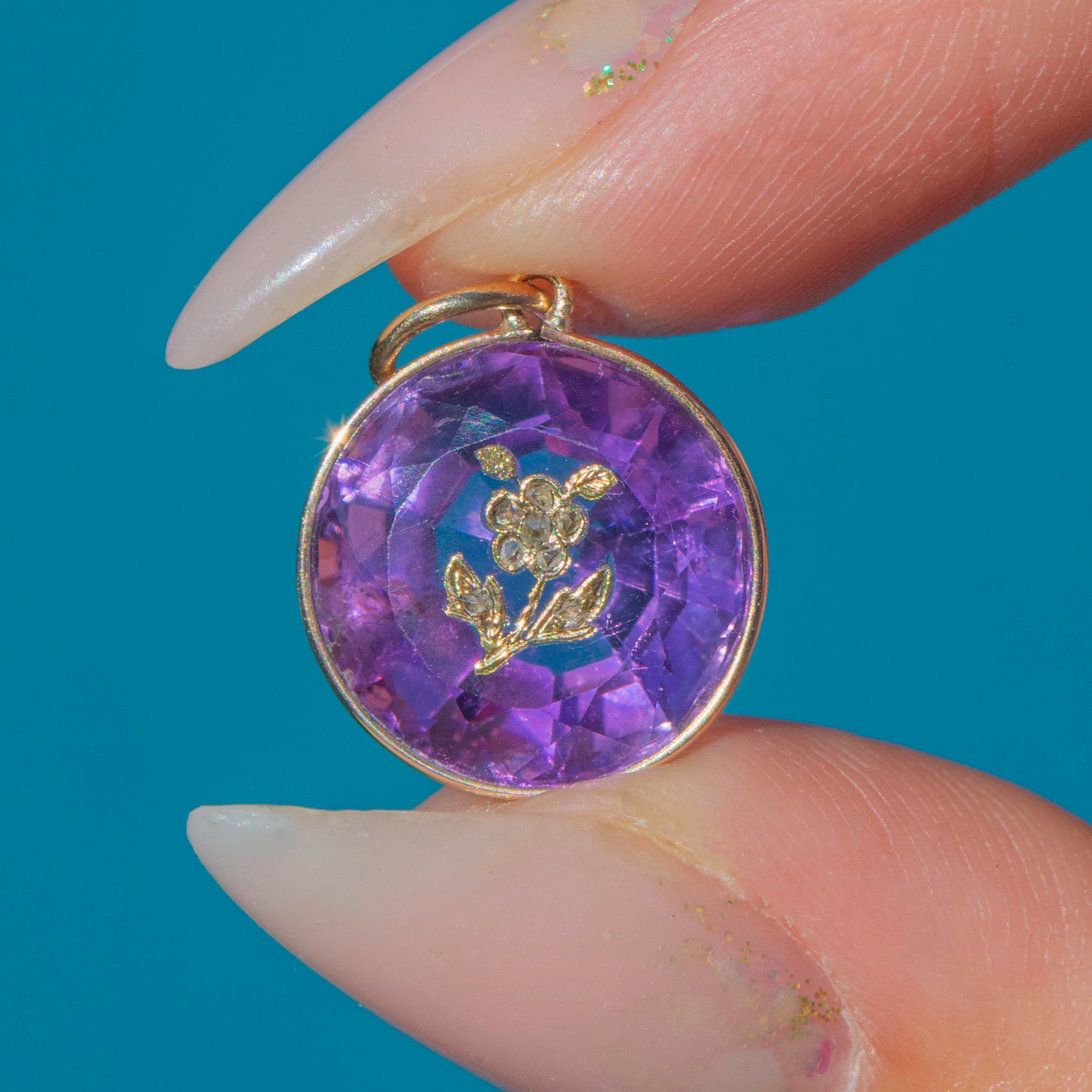 Antique 18ct Gold "Rose of Sharon" Diamond Amethyst Charm