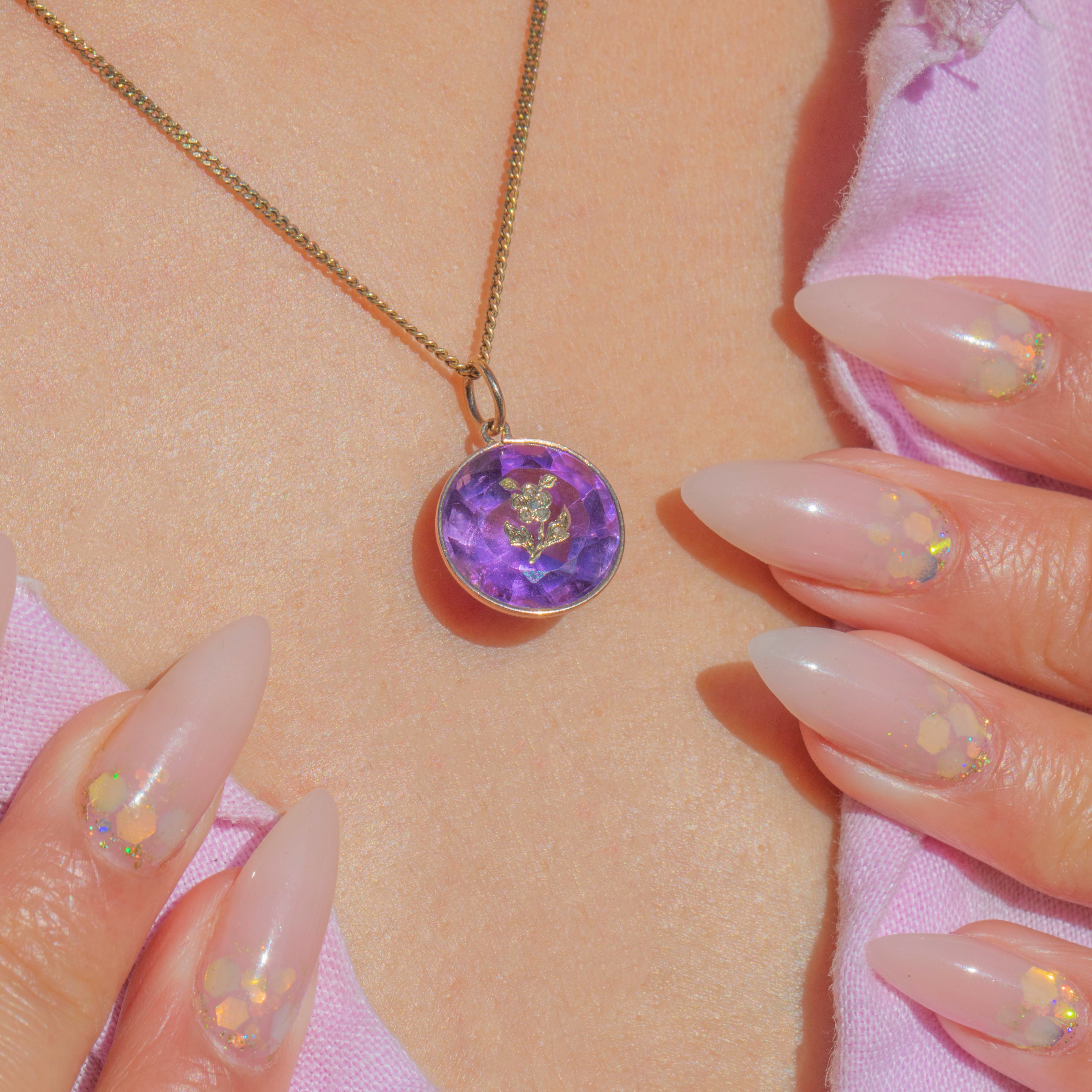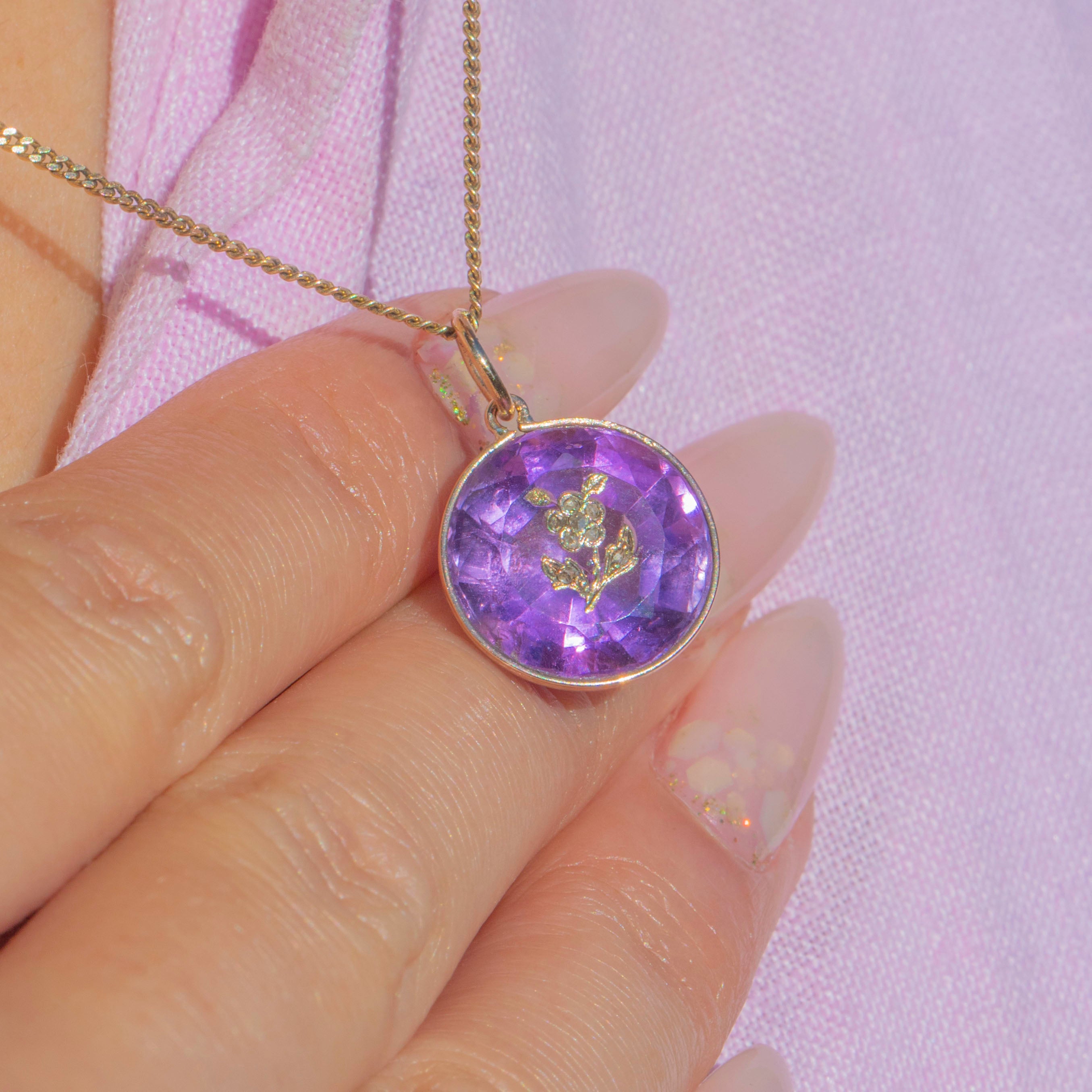 A fine example of Victorian symbolism and craftsmanship, this pendant carries a sense of romance and meaning while remaining beautifully wearable today. The Diamonds bring subtle glitter, while the Amethyst takes centre stage with its regal hue.