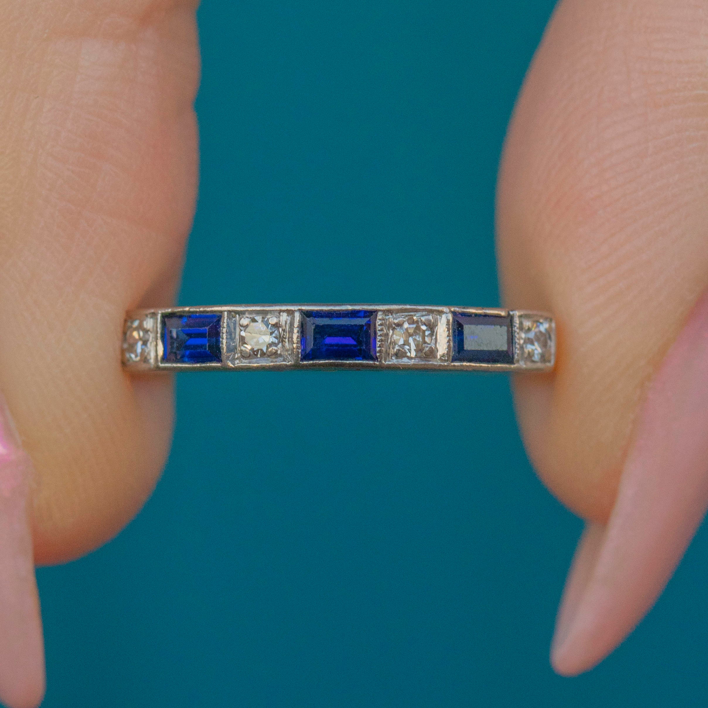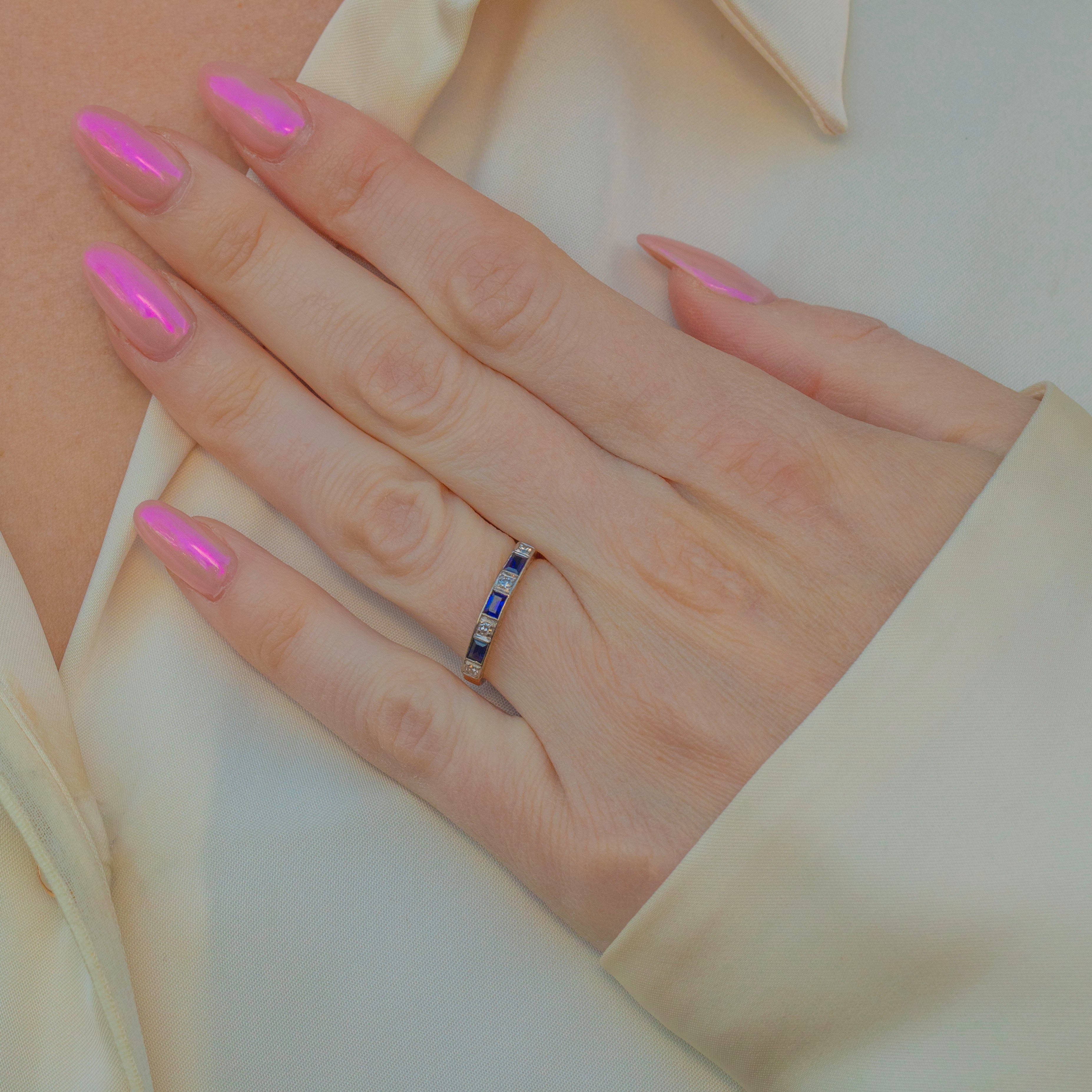 The combination of alternating Sapphires and the Diamonds truly reflect the luxury and glamour of the era. The deep ocean blue Sapphires add depth and mystery, while the Diamonds create that never-ending sparkle that's just to die for!