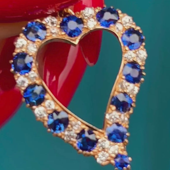Antique 18ct Gold Sapphire Diamond Witches Heart Pendant