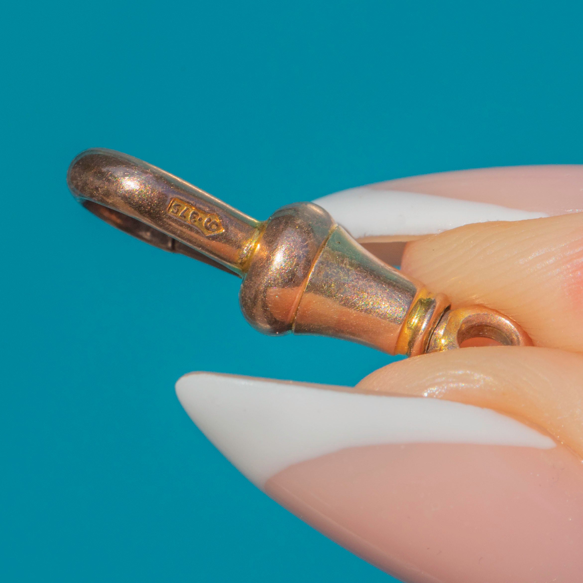 This Antique Victorian dog clip is crafted in rich 9ct Gold, a versatile and highly collectible piece of jewellery history. Whether worn on its own or used to attach charms, fobs, or chains, it adds both function and antique charm to any collection. Its warm Gold tone and timeless design make it a practical yet stylish choice for everyday wear or layering with other antique jewels.