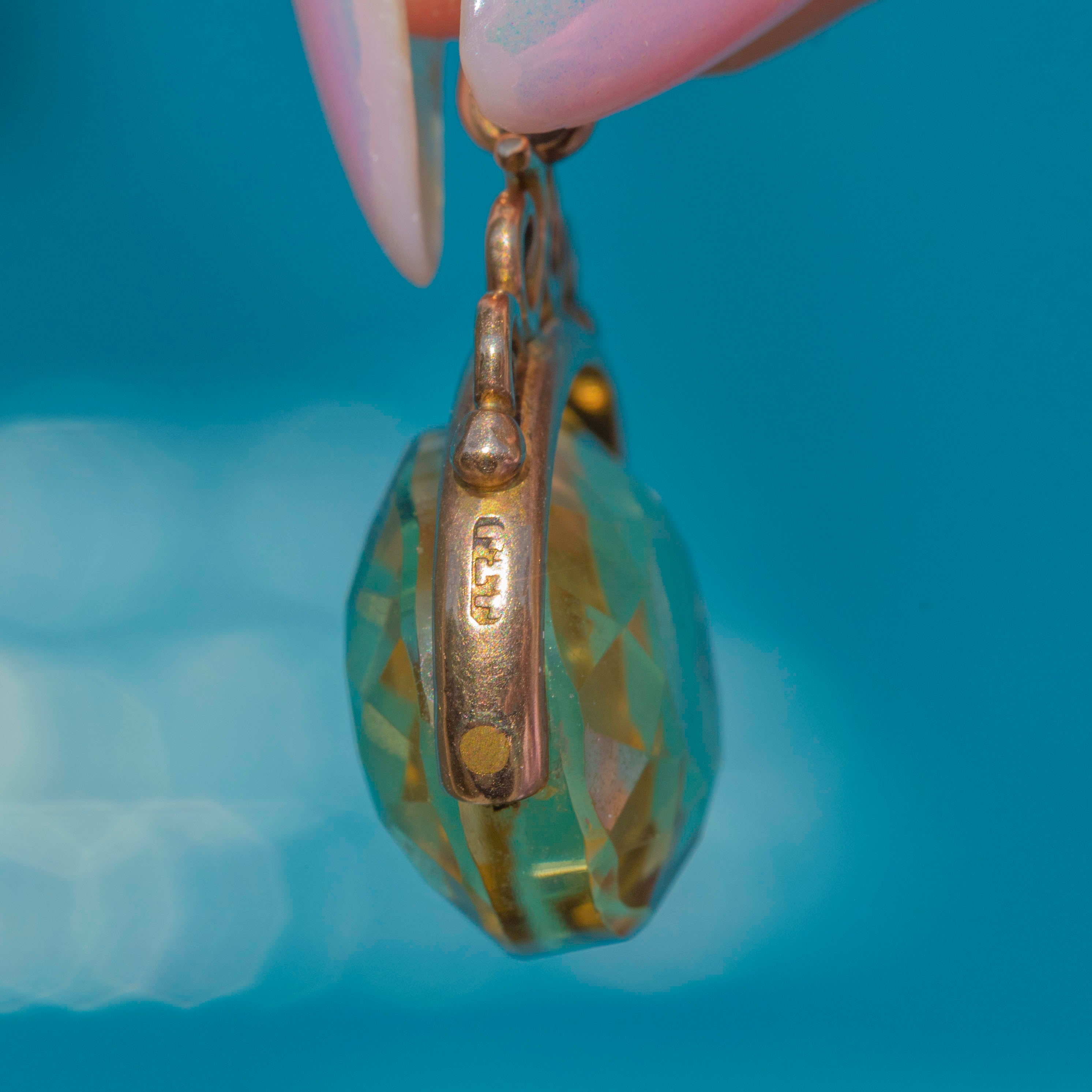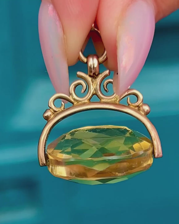 Antique 9ct Gold Citrine Spinner Fob Pendant