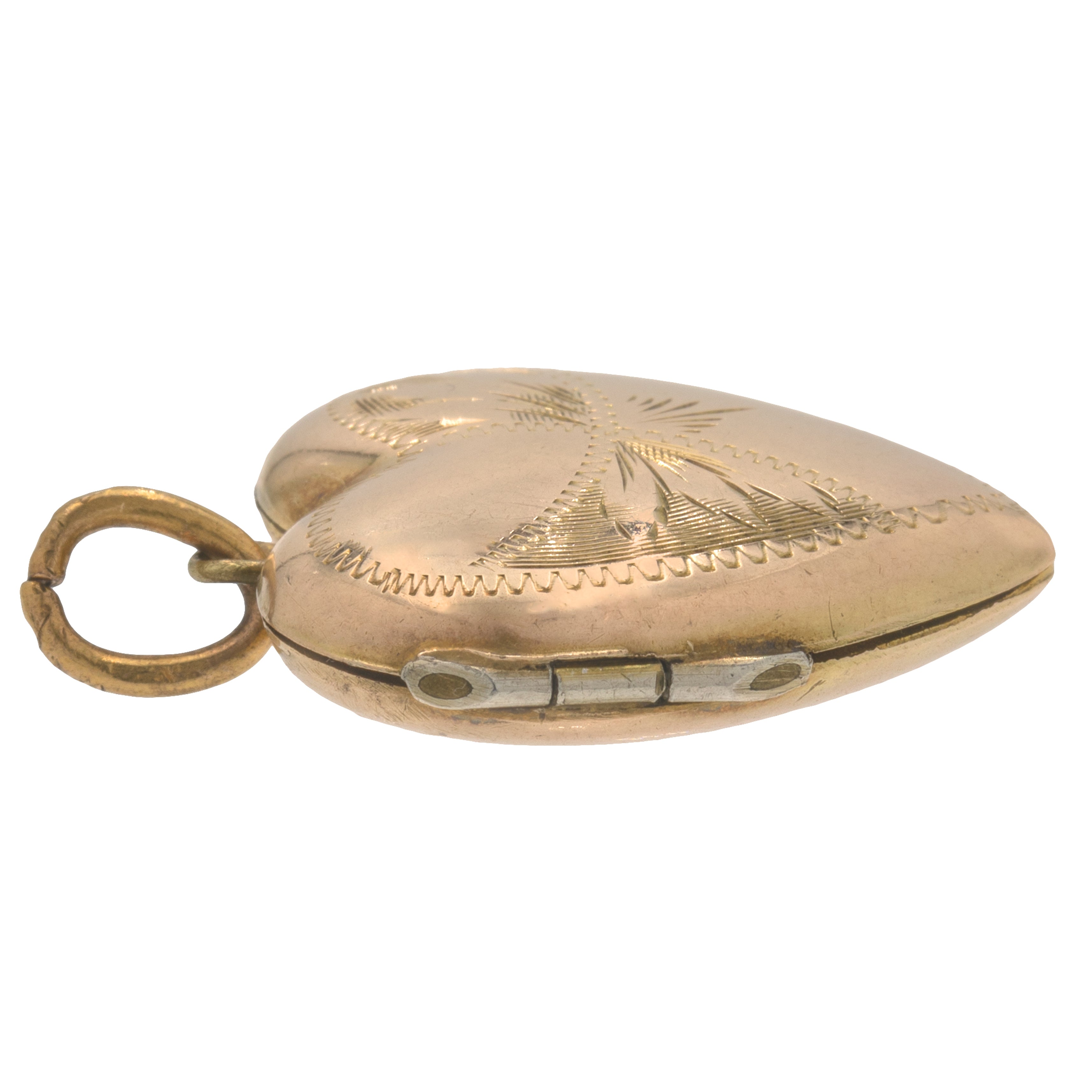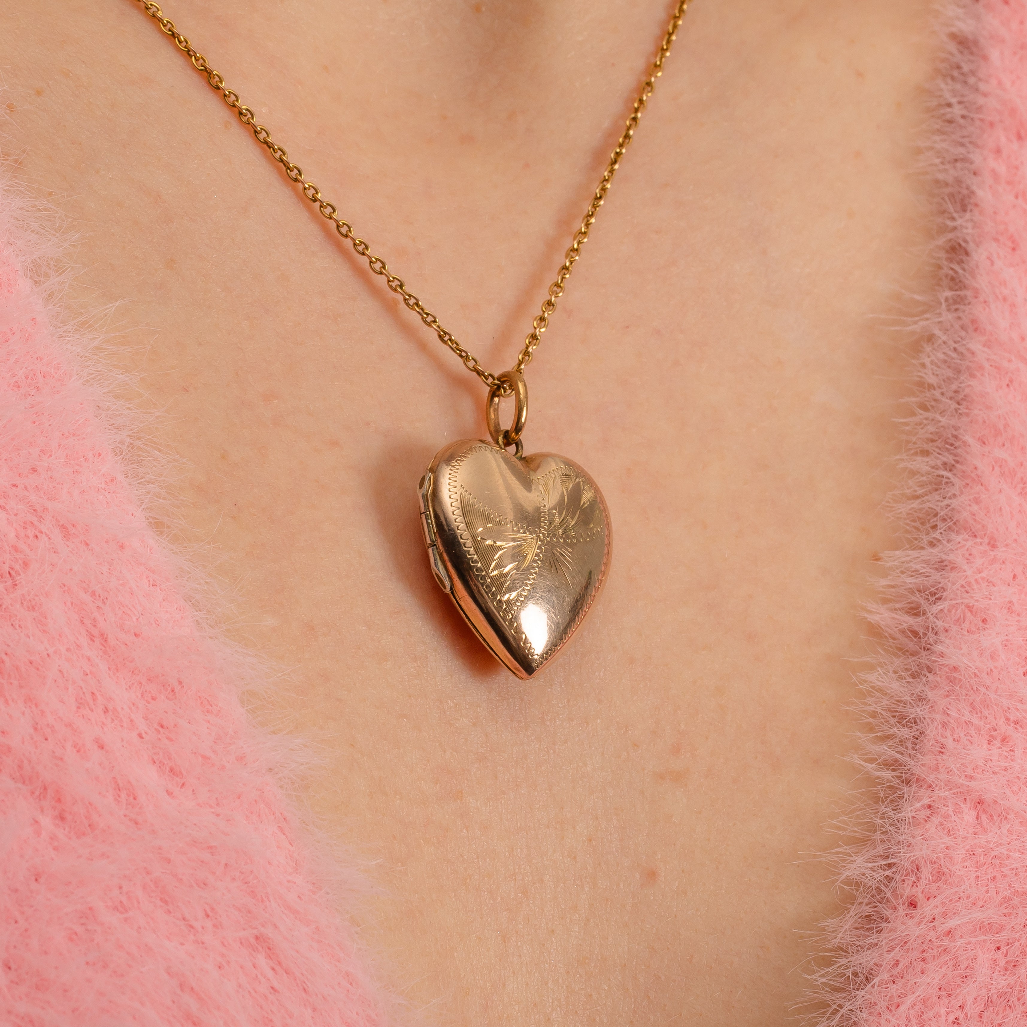 This antique 9ct Gold engraved heart locket will make a welcome addition to your collection! With finely hand-engraved details spanning the front of the curved surface, this decorative Victorian heart locket is bound to become the new abode for two of your most cherished photographs.