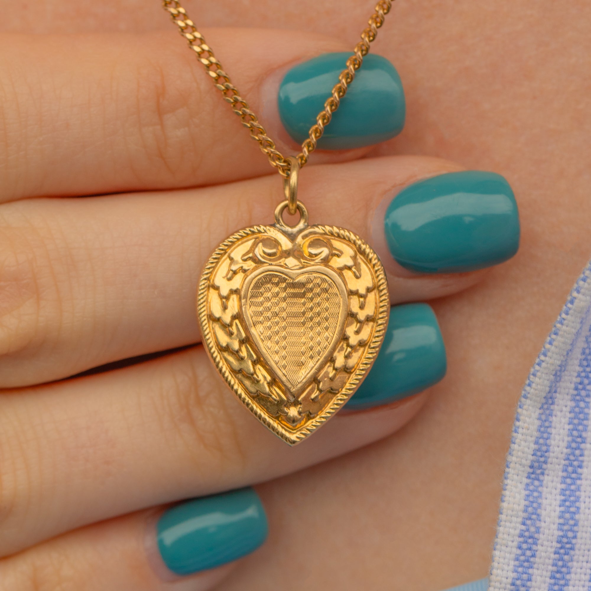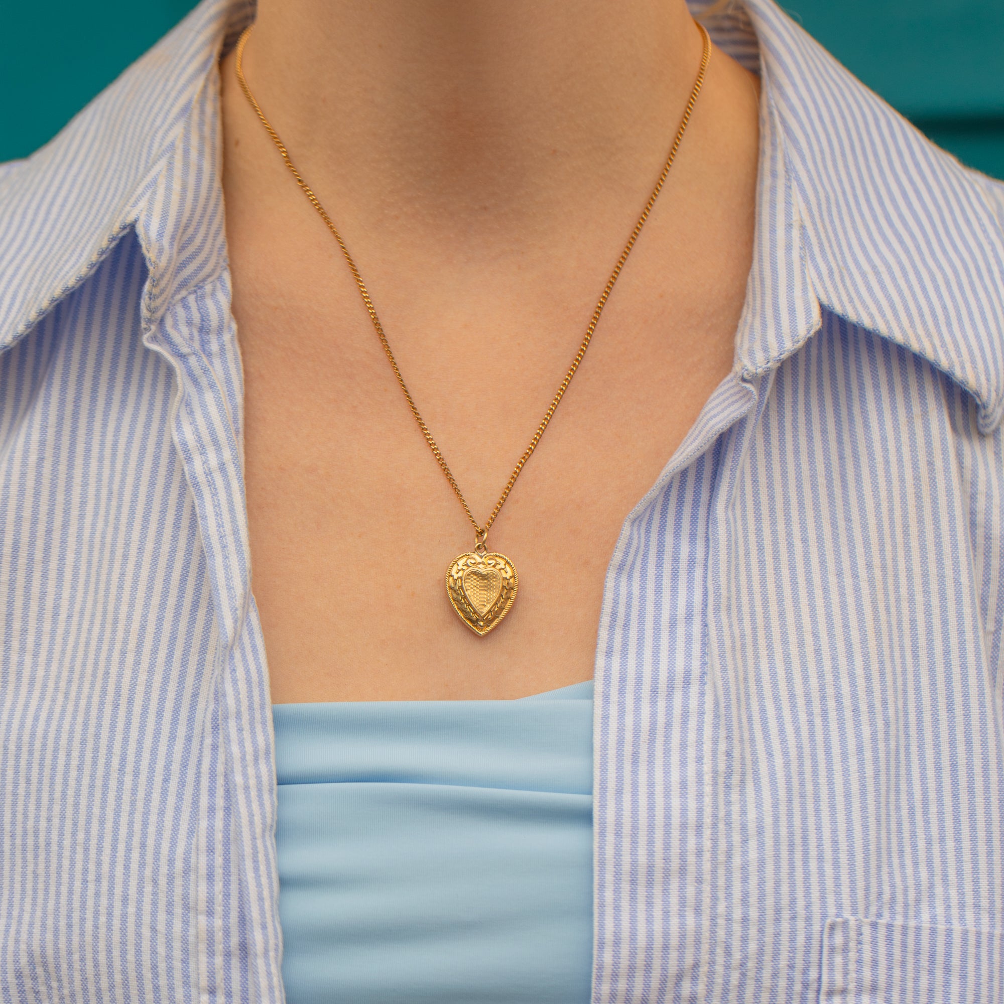 Antique 9ct Gold Engraved Heart Locket, with 18.5" Chain