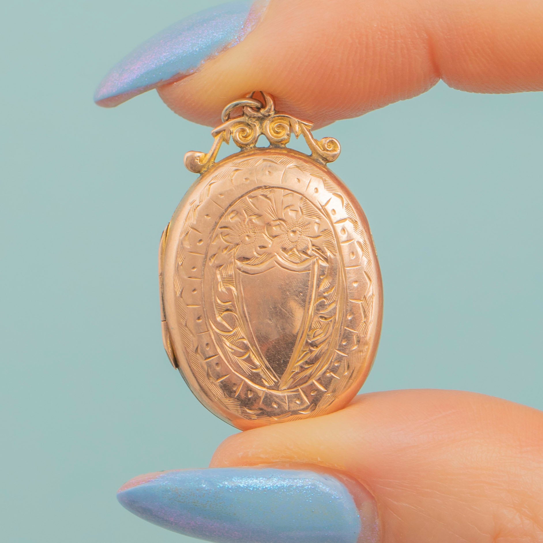 This antique 9ct Gold engraved oval locket is a wonderful keepsake to wear close to your heart!