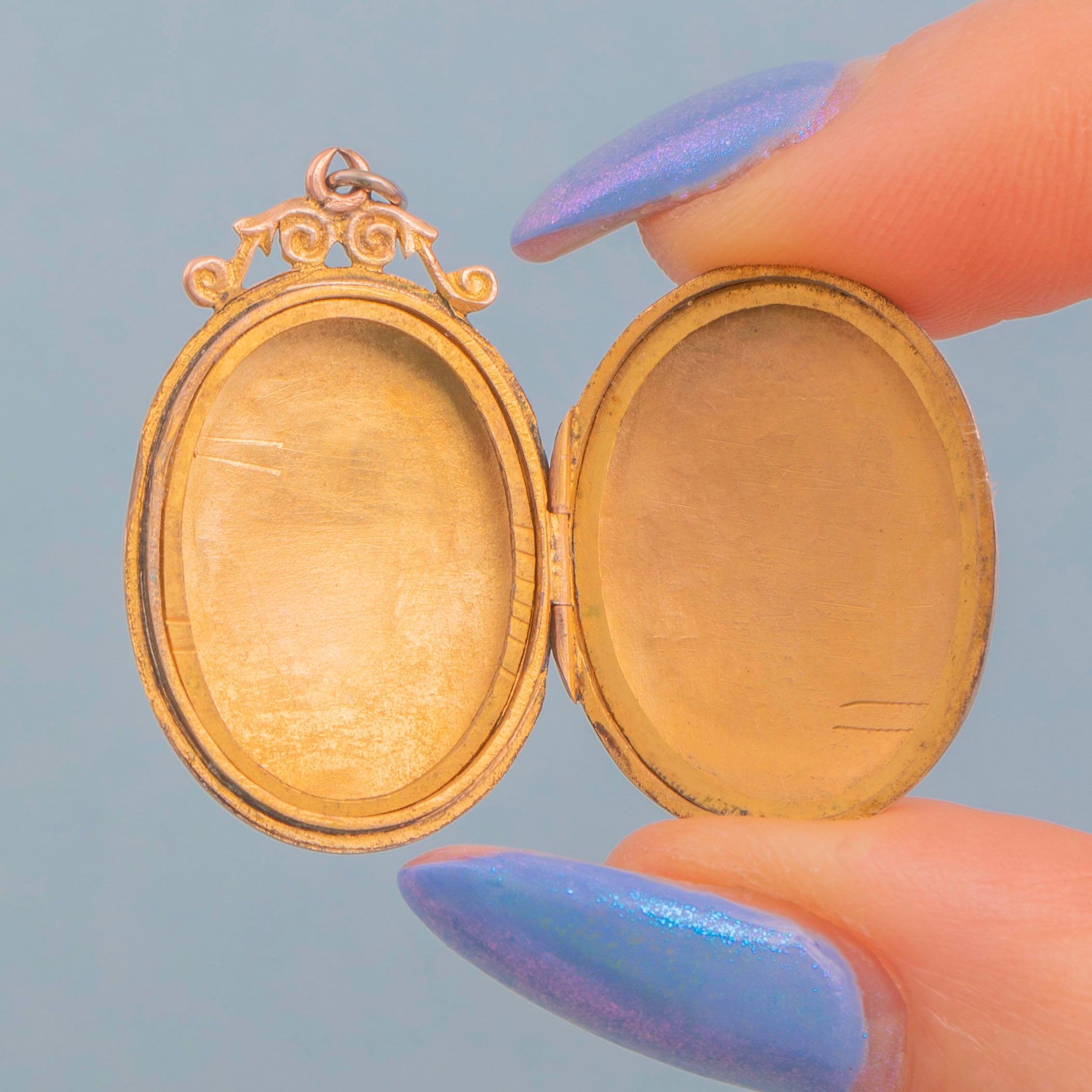 VERY GOOD-EXCELLENT. This antique 9ct Gold engraved oval locket is in lovely condition. The Gold has retained a bright hue and her engravings remain crisp. There is a minor ding on one side, but this is only noticeable under close inspection. With a securely soldered jump ring, you can wear her with confidence.