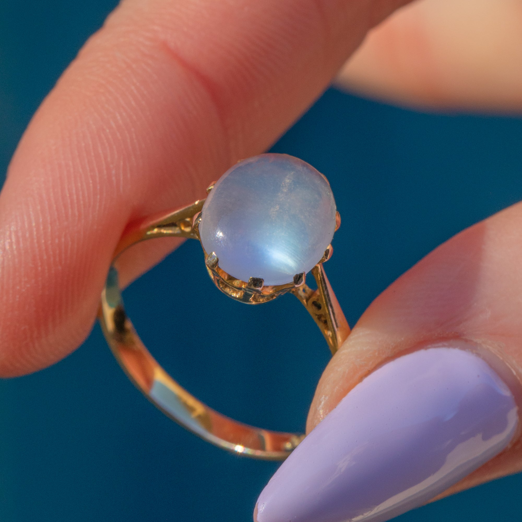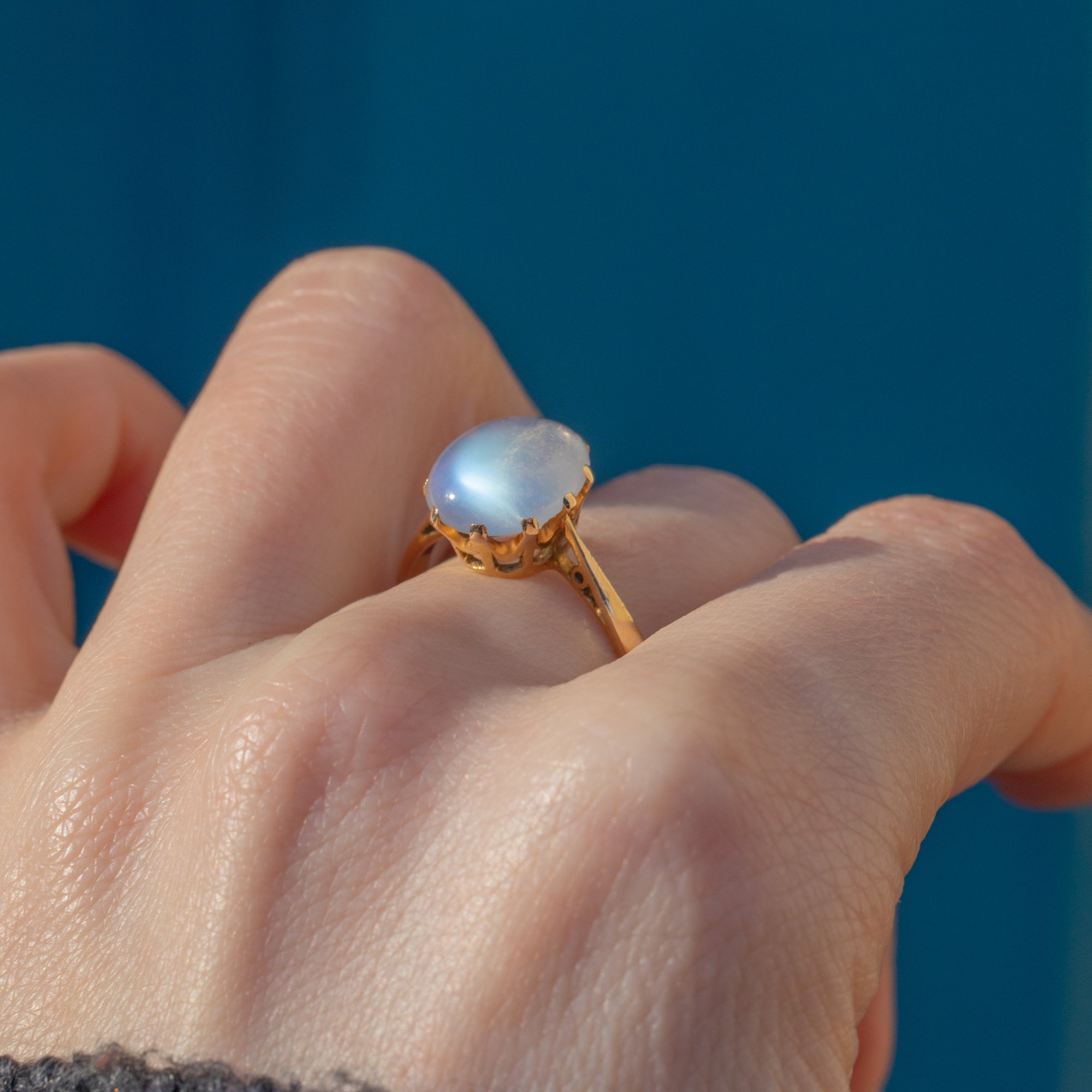 Antique 9ct Gold Moonstone Cabochon Ring, 2.75ct