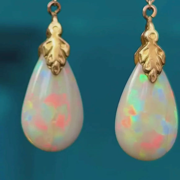 Antique 9ct Gold Opal Pear Drop Earrings, 9.20ct